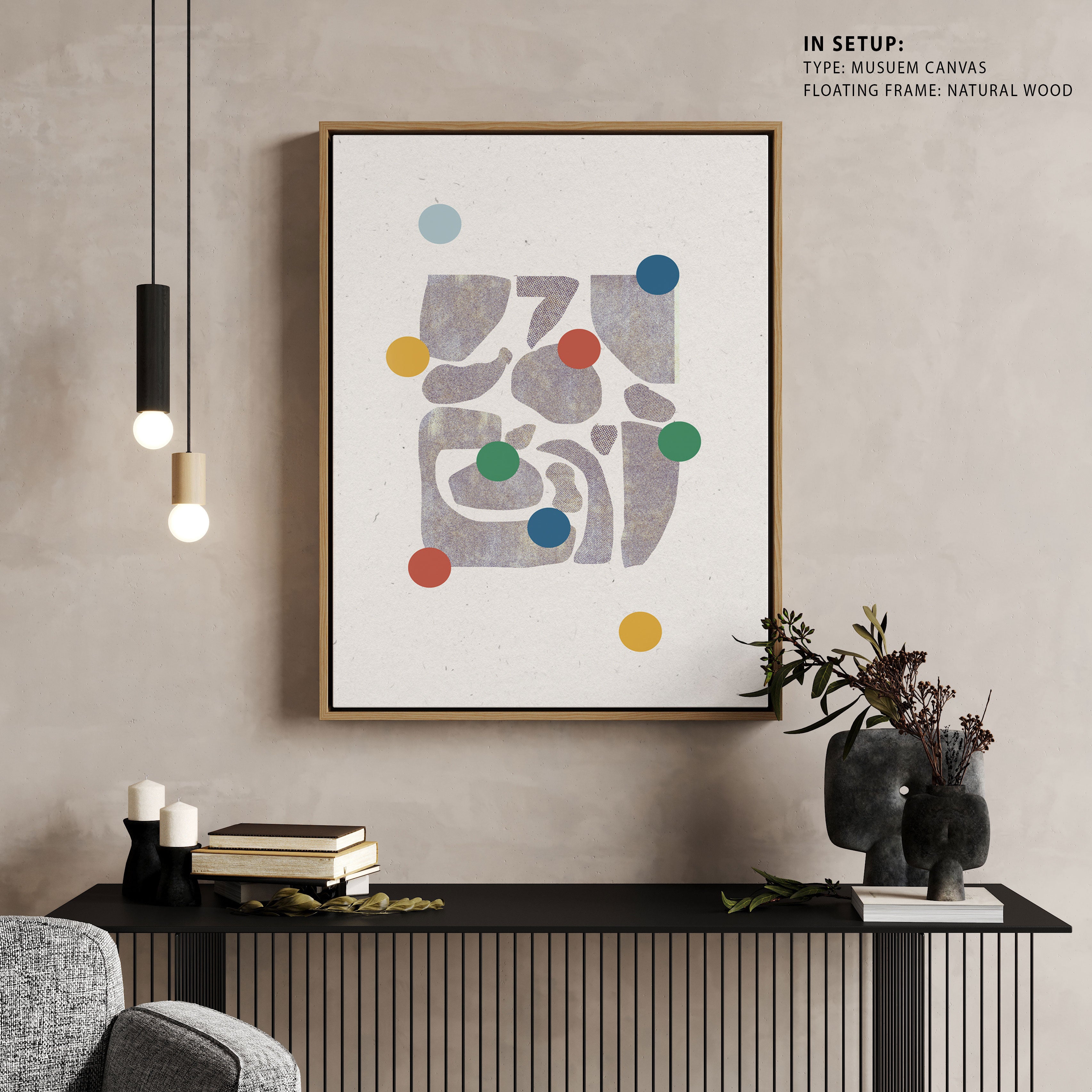 Retro Dots and Paper, Abstract Painting from the Abstract Paintings Print Collection is produced on Premium Museum Grade Canvas and Hahnemuhle Fine Art Media. This product is made with matte finish and premium quality with vibrant colors. These Abstract Art Paintings are produced with the most extreme shading precision and using the most advanced giclee printing technique in the world. We use the same standard that the various museums and art galleries use across the globe to recreate the Abstract Canvas Paintings. These Abstract Paintings are perfect for you if you're an Art Lover or if you want to add a Modern, Stylish or Positive Look to your space. The vibrancy of colors and the unique detailing of every Abstract Paintings Print makes them the best in so many ways. These Abstract Paintings will add charm to any room in your home. This Beautiful Abstract Canvas Painting Artwork can be the perfect gift to your friends, colleagues or family as they sync in very well in your Bedroom, living room, lobby, Balcony etc.