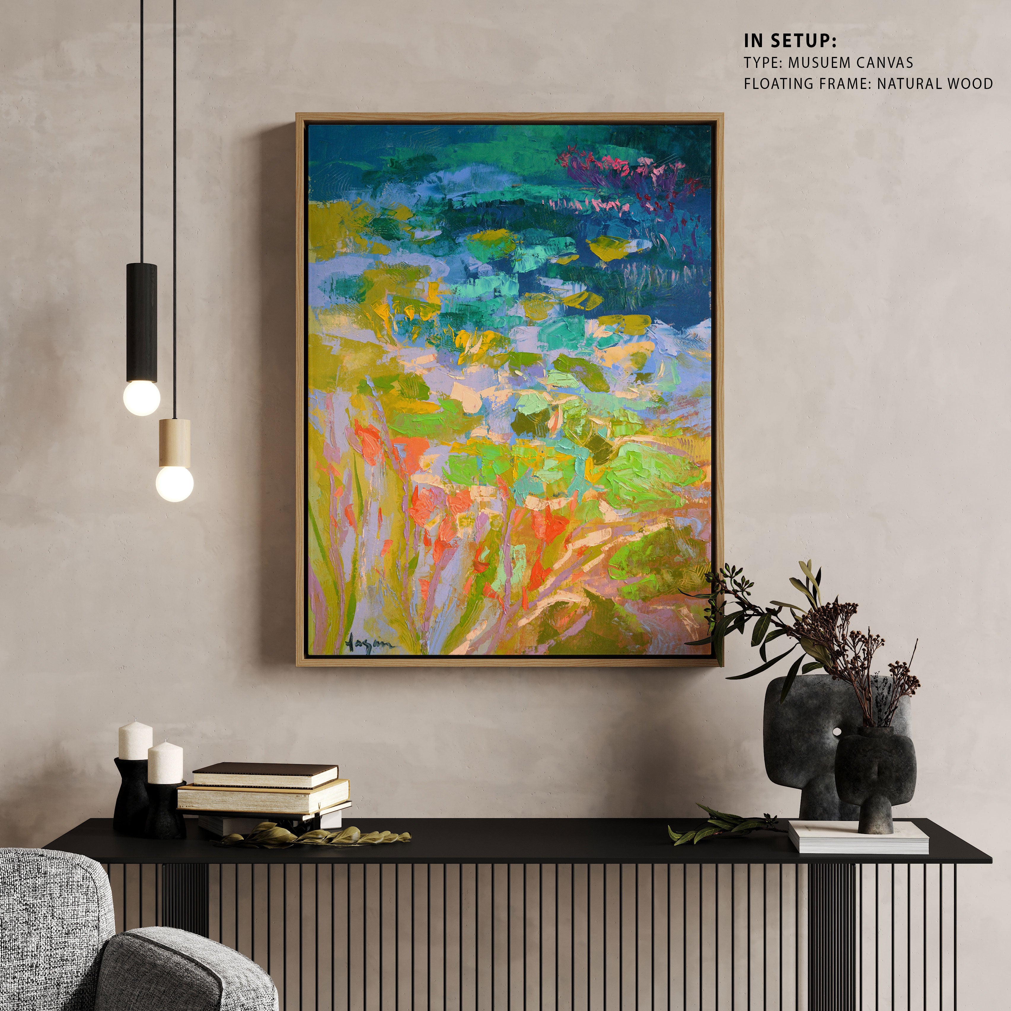 Vibrant Water Lilies, Abstract Painting from the Abstract Paintings Print Collection is produced on Premium Museum Grade Canvas and Hahnemuhle Fine Art Media. This product is made with matte finish and premium quality with vibrant colors. These Abstract Art Paintings are produced with the most extreme shading precision and using the most advanced giclee printing technique in the world. We use the same standard that the various museums and art galleries use across the globe to recreate the Abstract Canvas Paintings. These Abstract Paintings are perfect for you if you're an Art Lover or if you want to add a Modern, Stylish or Positive Look to your space. The vibrancy of colors and the unique detailing of every Abstract Paintings Print makes them the best in so many ways. These Abstract Paintings will add charm to any room in your home. This Beautiful Abstract Canvas Painting Artwork can be the perfect gift to your friends, colleagues or family as they sync in very well in your Bedroom, living room, lobby, Balcony etc.