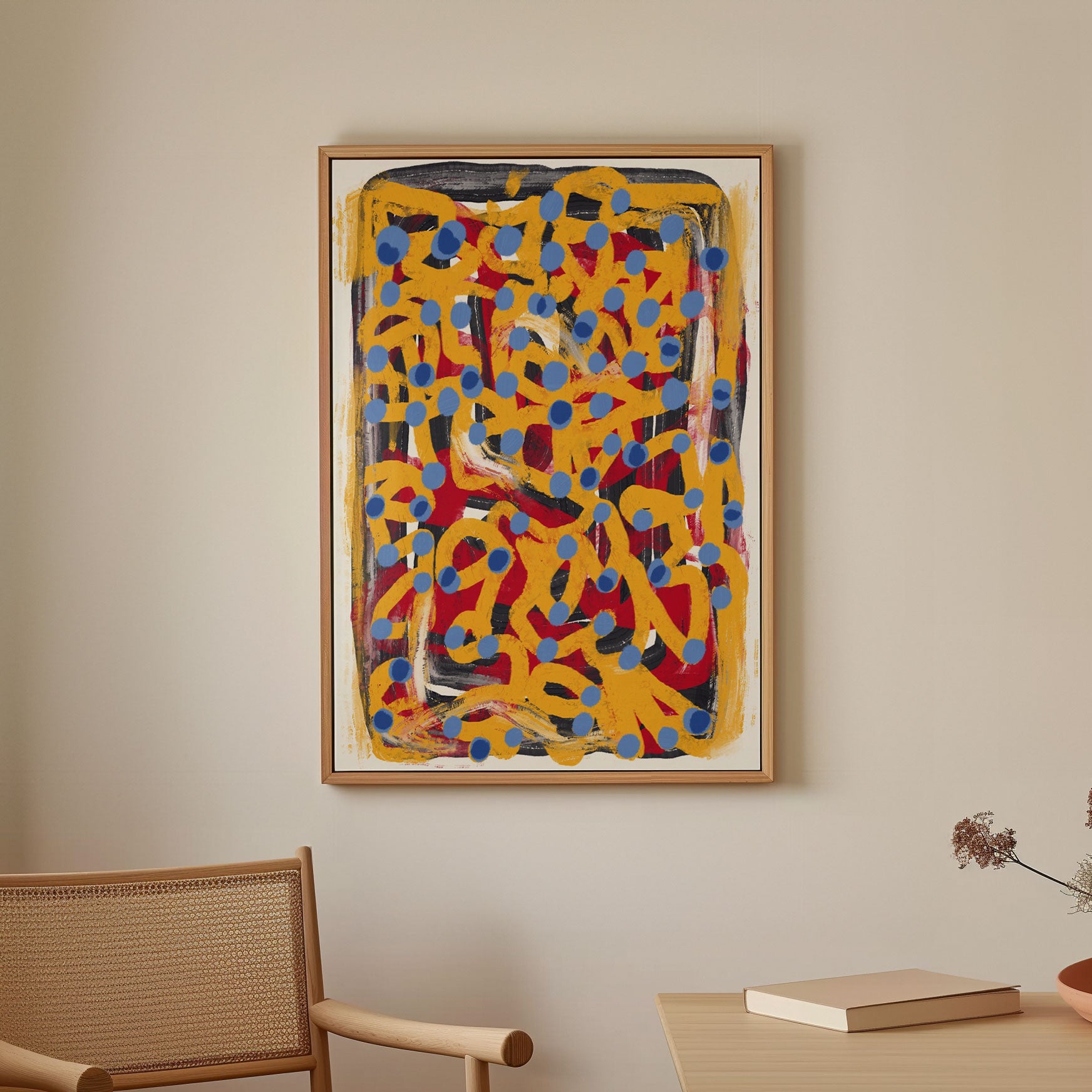 Yellow Dotted Line and blue Polka Dot, Abstract Painting