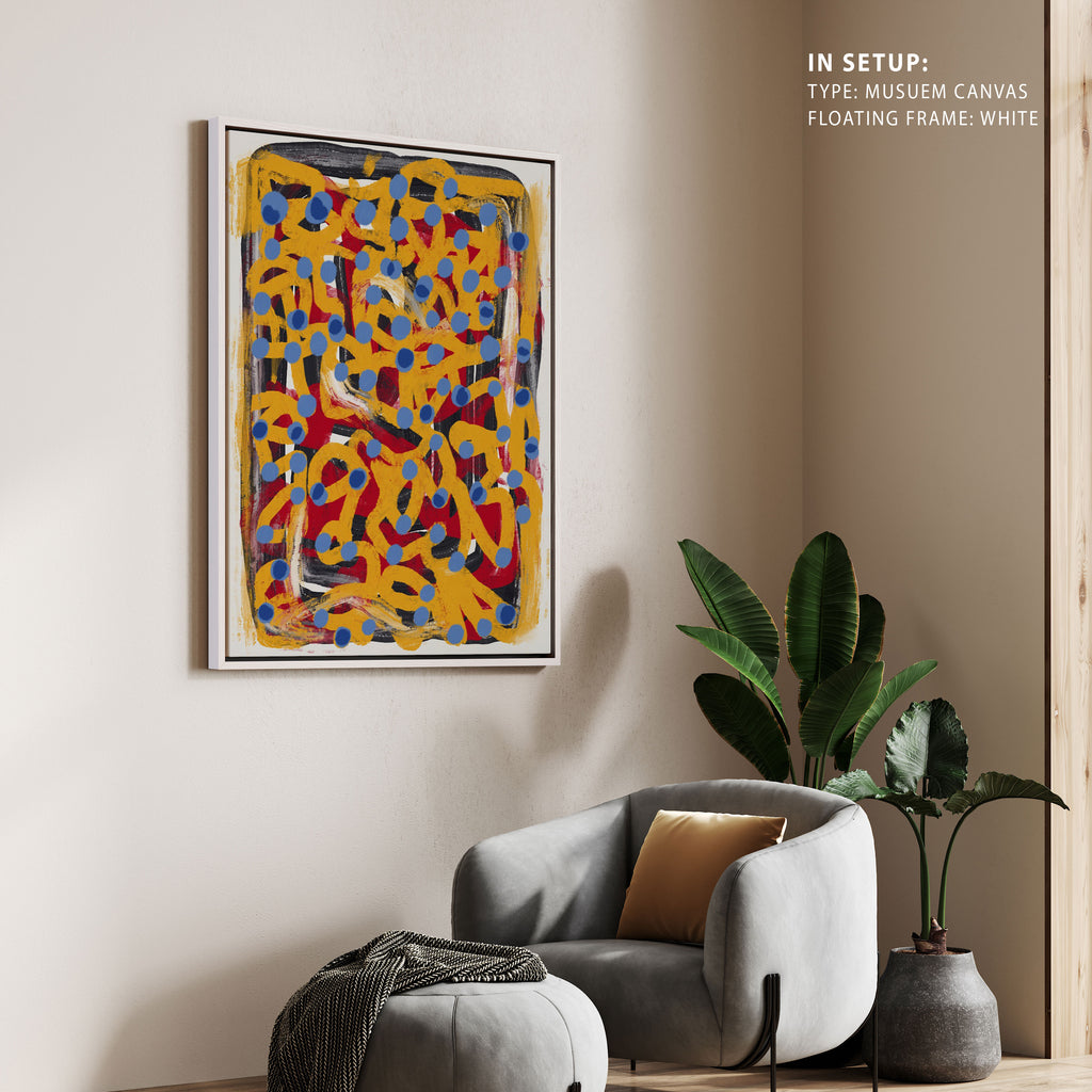 Yellow Dotted Line and blue Polka Dot, Abstract Painting from the Abstract Paintings Print Collection is produced on Premium Museum Grade Canvas and Hahnemuhle Fine Art Media. This product is made with matte finish and premium quality with vibrant colors. These Abstract Art Paintings are produced with the most extreme shading precision and using the most advanced giclee printing technique in the world. We use the same standard that the various museums and art galleries use across the globe to recreate the Abstract Canvas Paintings. These Abstract Paintings are perfect for you if you're an Art Lover or if you want to add a Modern, Stylish or Positive Look to your space. The vibrancy of colors and the unique detailing of every Abstract Paintings Print makes them the best in so many ways. These Abstract Paintings will add charm to any room in your home. This Beautiful Abstract Canvas Painting Artwork can be the perfect gift to your friends, colleagues or family as they sync in very well in your Bedroom, living room, lobby, Balcony etc.