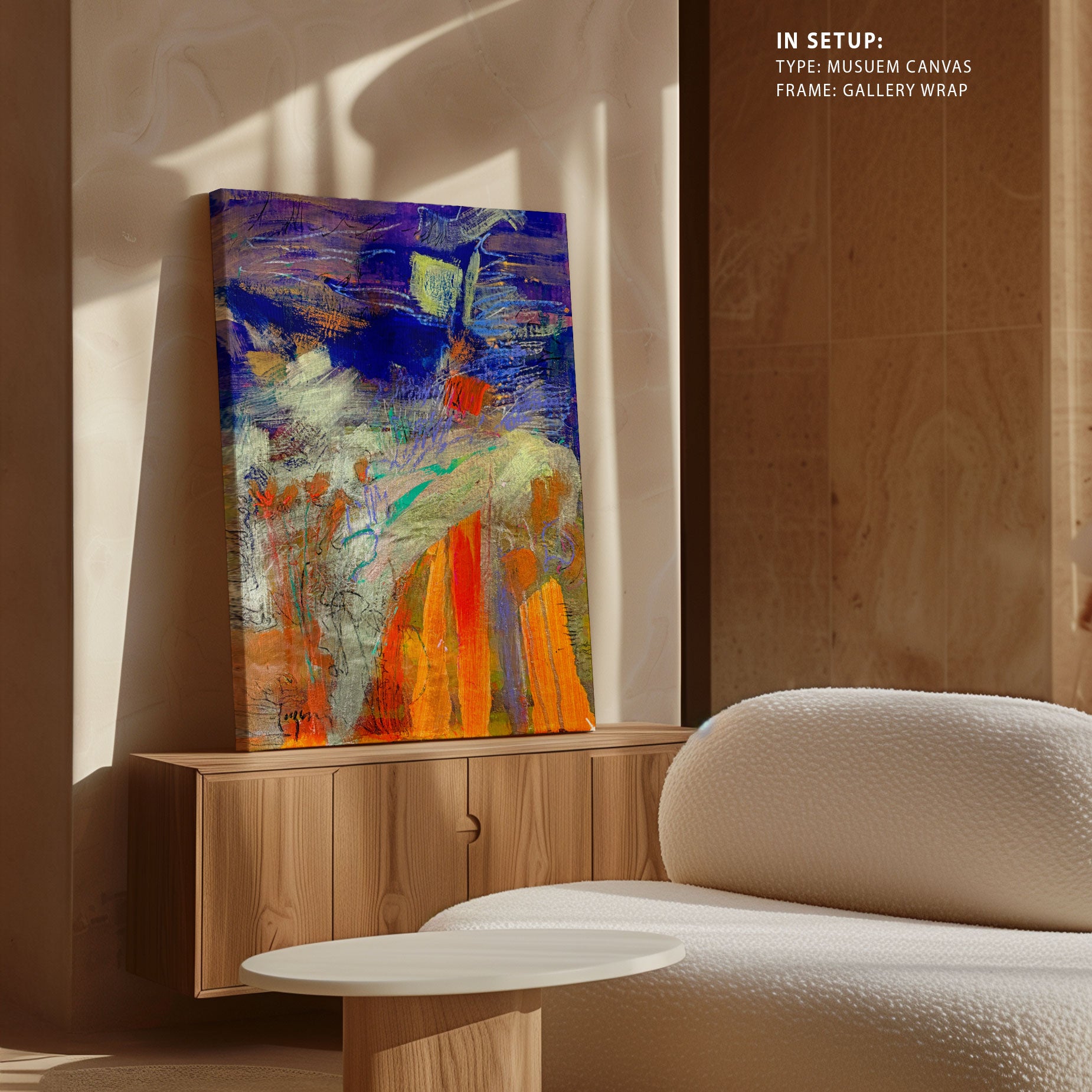 Museum Canvas Print is stretched on a wooden frame in such a way that it wraps around the sides of the stretcher. The sides of the canvas are prepared with white as natural white canvas for illustrations, pop-art and for Abstract, classical art canvas sides are stretched with the same painting as front of the canvas.