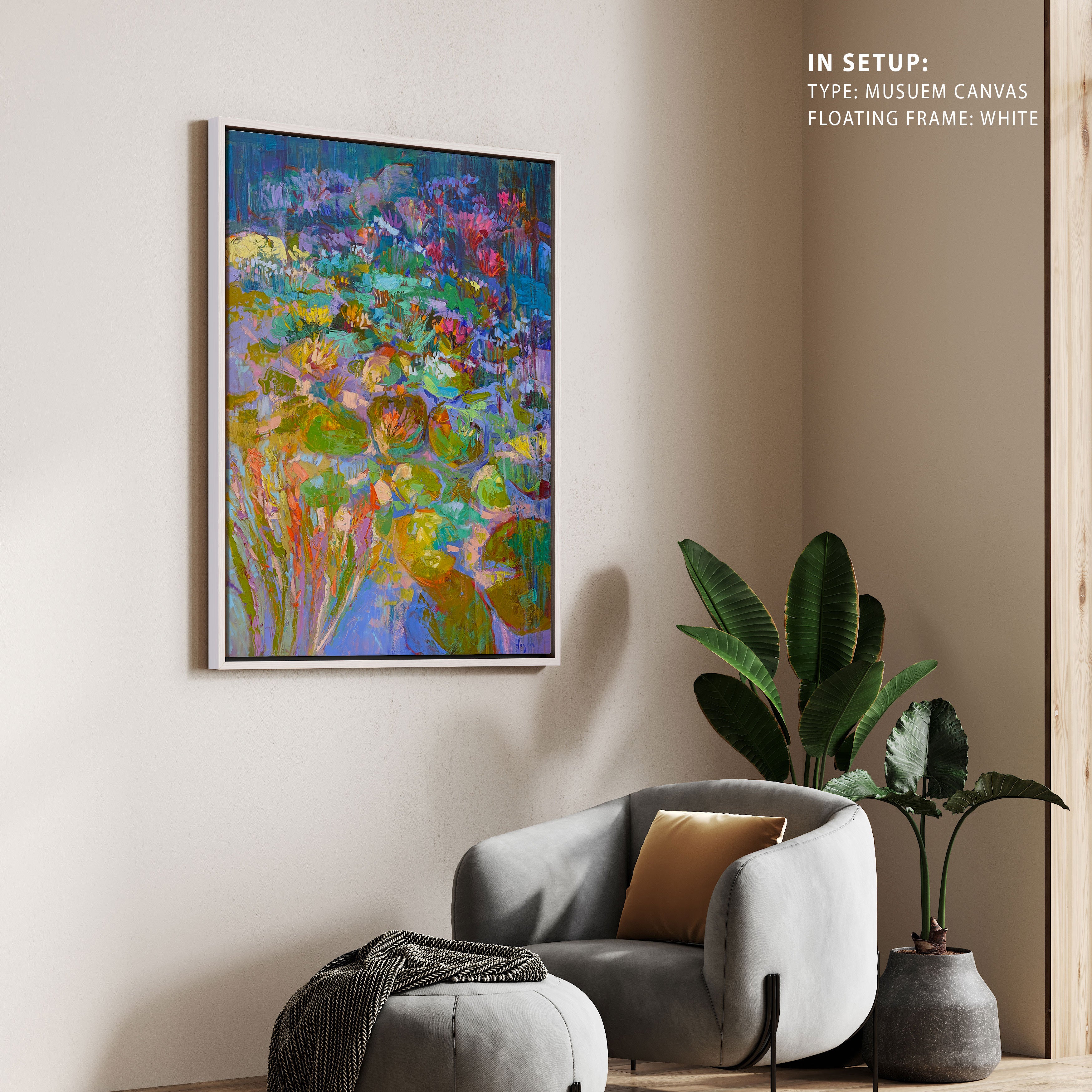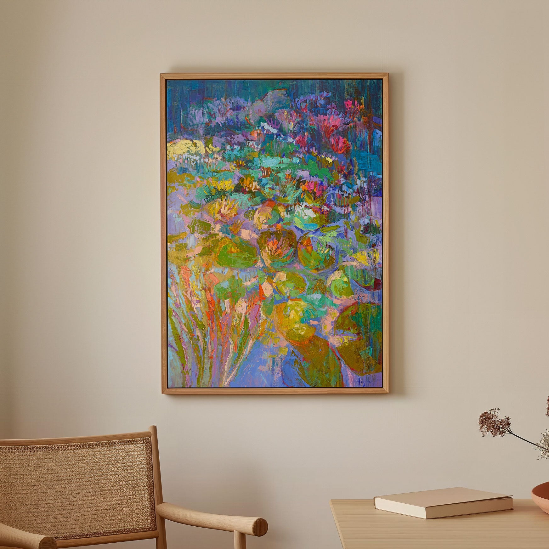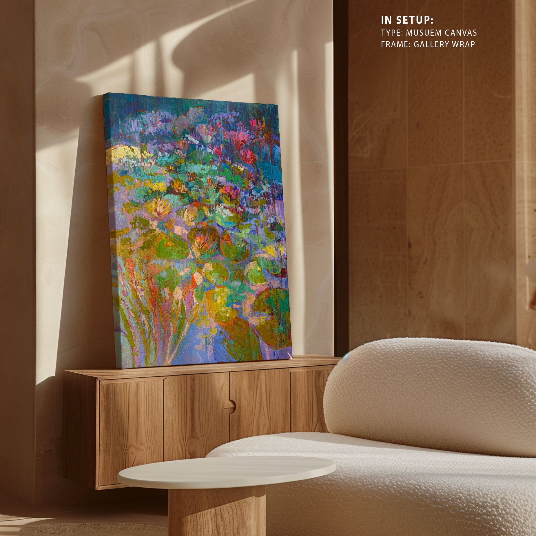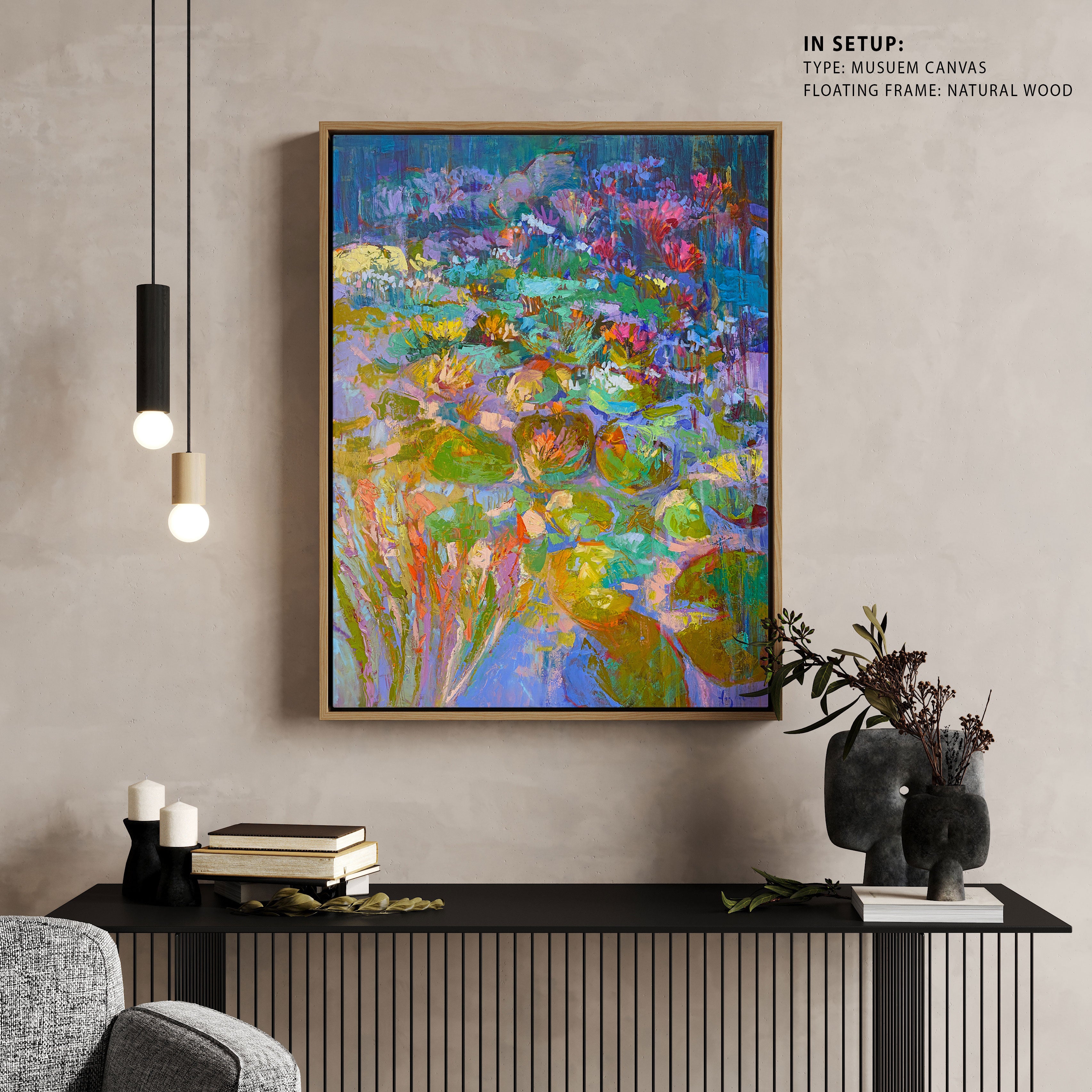 Lush Water Lilies, Abstract Painting from the Abstract Paintings Print Collection is produced on Premium Museum Grade Canvas and Hahnemuhle Fine Art Media. This product is made with matte finish and premium quality with vibrant colors. These Abstract Art Paintings are produced with the most extreme shading precision and using the most advanced giclee printing technique in the world. We use the same standard that the various museums and art galleries use across the globe to recreate the Abstract Canvas Paintings. These Abstract Paintings are perfect for you if you're an Art Lover or if you want to add a Modern, Stylish or Positive Look to your space. The vibrancy of colors and the unique detailing of every Abstract Paintings Print makes them the best in so many ways. These Abstract Paintings will add charm to any room in your home. This Beautiful Abstract Canvas Painting Artwork can be the perfect gift to your friends, colleagues or family as they sync in very well in your Bedroom, living room, lobby, Balcony etc.