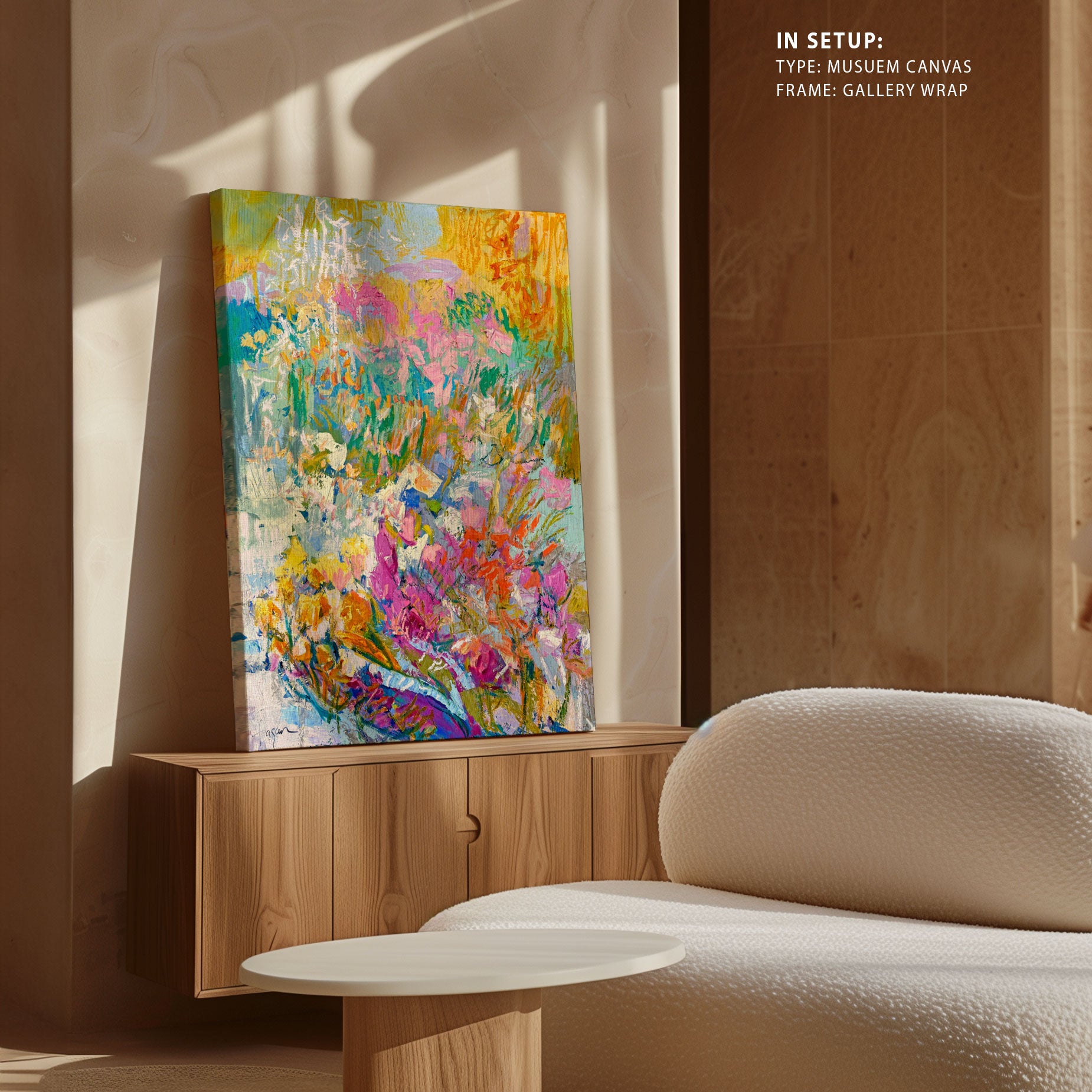 Vibrant Garden Dream, Abstract Painting from the Abstract Paintings Print Collection is produced on Premium Museum Grade Canvas and Hahnemuhle Fine Art Media. This product is made with matte finish and premium quality with vibrant colors. These Abstract Art Paintings are produced with the most extreme shading precision and using the most advanced giclee printing technique in the world. We use the same standard that the various museums and art galleries use across the globe to recreate the Abstract Canvas Paintings. These Abstract Paintings are perfect for you if you're an Art Lover or if you want to add a Modern, Stylish or Positive Look to your space. The vibrancy of colors and the unique detailing of every Abstract Paintings Print makes them the best in so many ways. These Abstract Paintings will add charm to any room in your home. This Beautiful Abstract Canvas Painting Artwork can be the perfect gift to your friends, colleagues or family as they sync in very well in your Bedroom, living room, lobby, Balcony etc.