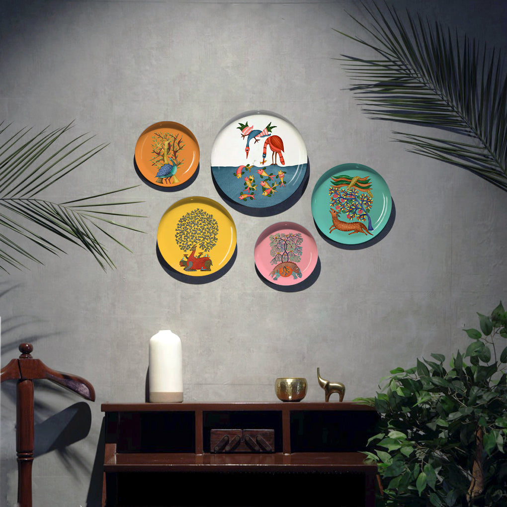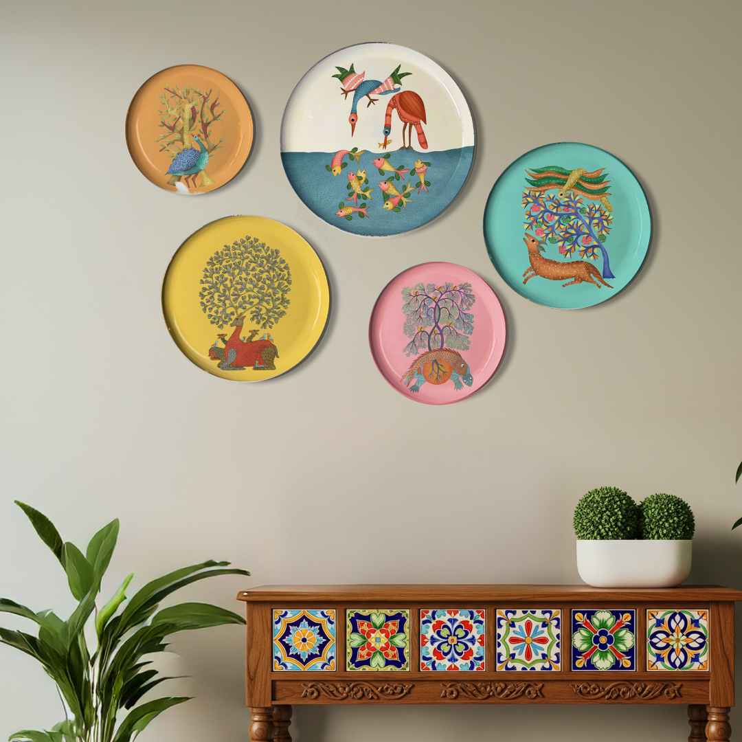 Gondh Mythica Wall Decor Plate, Set of 5, Art Plate Set