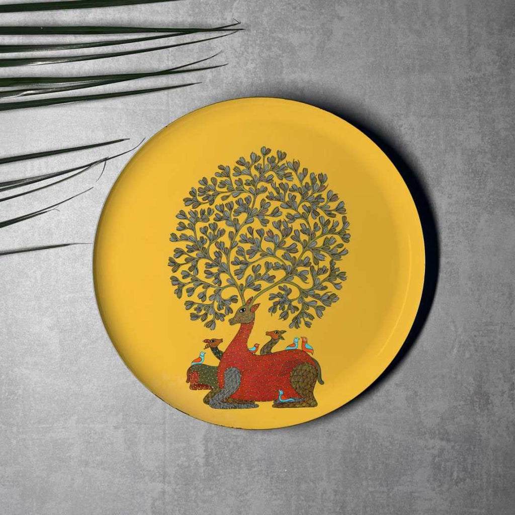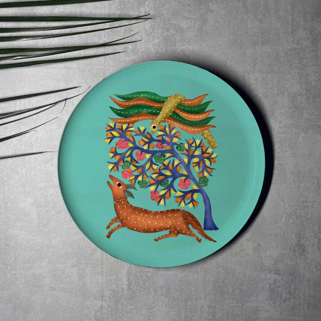 Gondh Mythica Wall Plate Set from the Decorative Plates Collection is produced on the Metal Plate with a Premium and Luxury Finish. This beautiful Decor Plate product has a gloss finish, premium quality, and vibrant color. These decorative fine metal plates are produced with extreme shading precision and advanced printing techniques. Each decor plate has a unique design created by leading artists. Every Decorative Plate purchased on Dessine Art pays an artist. These uniquely designed Decor Art Plates are perfect if you're an Art Lover or want to add an artistic look to your space. The vibrancy of colors and the unique detailing of every Decorative Plate make them the best in many ways. This Decor Art Plate will add charm to any wall in your house. This Art Plate can be the perfect gift to your friends, colleagues, or family as they sync very well in your living room, lobby, etc. These decorative art plates can also be used for corporate gifting.