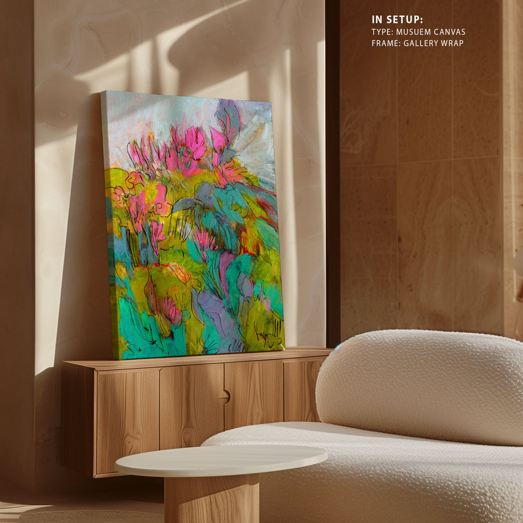 Whimsical Garden Dreams, Abstract Painting from the Abstract Paintings Print Collection is produced on Premium Museum Grade Canvas and Hahnemuhle Fine Art Media. This product is made with matte finish and premium quality with vibrant colors. These Abstract Art Paintings are produced with the most extreme shading precision and using the most advanced giclee printing technique in the world. We use the same standard that the various museums and art galleries use across the globe to recreate the Abstract Canvas Paintings. These Abstract Paintings are perfect for you if you're an Art Lover or if you want to add a Modern, Stylish or Positive Look to your space. The vibrancy of colors and the unique detailing of every Abstract Paintings Print makes them the best in so many ways. These Abstract Paintings will add charm to any room in your home. This Beautiful Abstract Canvas Painting Artwork can be the perfect gift to your friends, colleagues or family as they sync in very well in your Bedroom, living room, lobby, Balcony etc.
