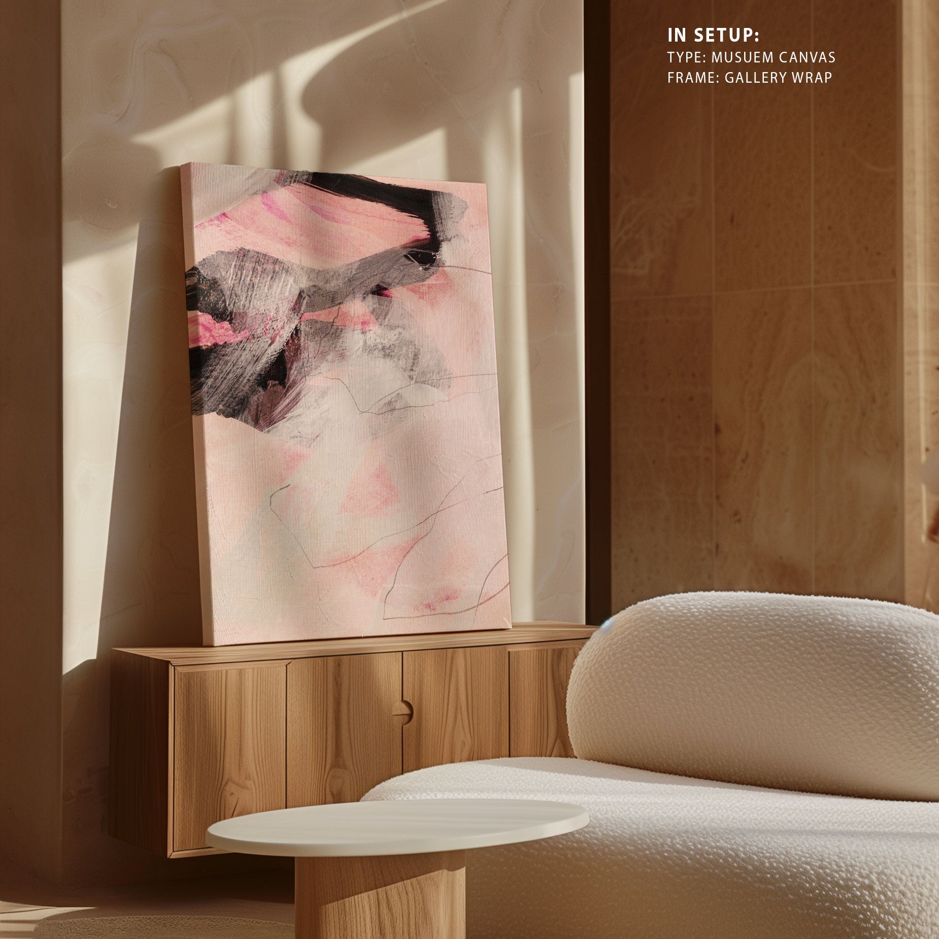 Whereas, there is no mat mount in canvas. And also in Minimalist Art, Set of 3 Collection. There is no Mat Mount.