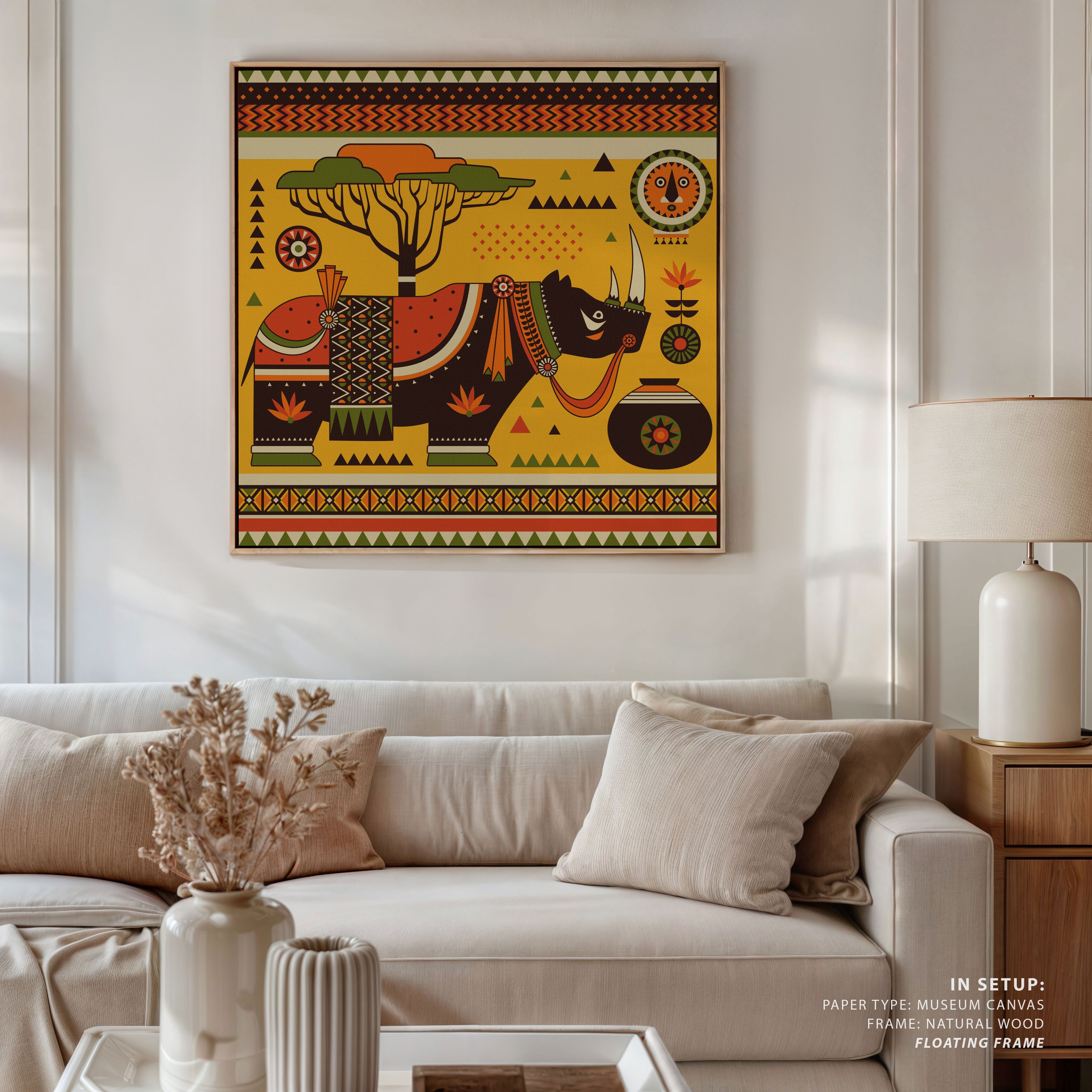 Africa - Rhino from the Fine Art Paintings Collection is produced on Premium Museum Grade Canvas and Hahnemuhle Fine Art Media. This beautiful Fine Art Painting product is made with matte finish and premium quality with vibrant colors. This Art Painting is created by leading contemporary artist, Rohan Dahotre and is reproduced with the most extreme shading precision using the world’s most advanced giclée printing technique. We use the same standard that the various museums and art galleries use across the globe to recreate the Paintings. These Wall Art Paintings are perfect for you if you're a Modern, Minimalist, and Contemporary Art Lover or if you want to add an artistic look to your space. The vibrancy of colors and the unique brushstroke detailing of every Painting makes them stand out in so many ways. This Wall Art Painting will add charm to any room in your home. This Beautiful Artwork can also be the perfect gift to your friends, colleagues or family as they sync in very well in your Bedroom, Living Room, Lobby, Balcony, Bathroom etc.
