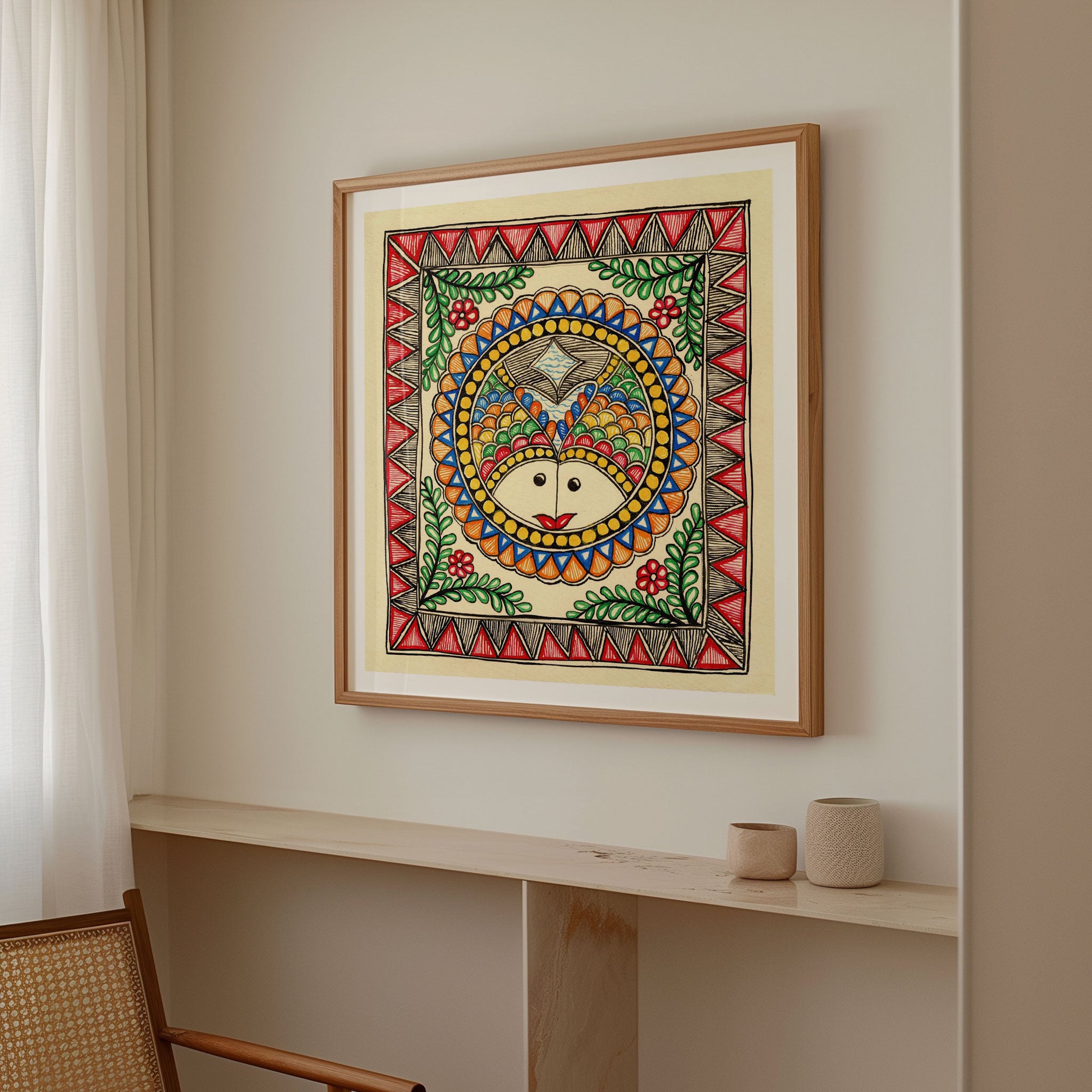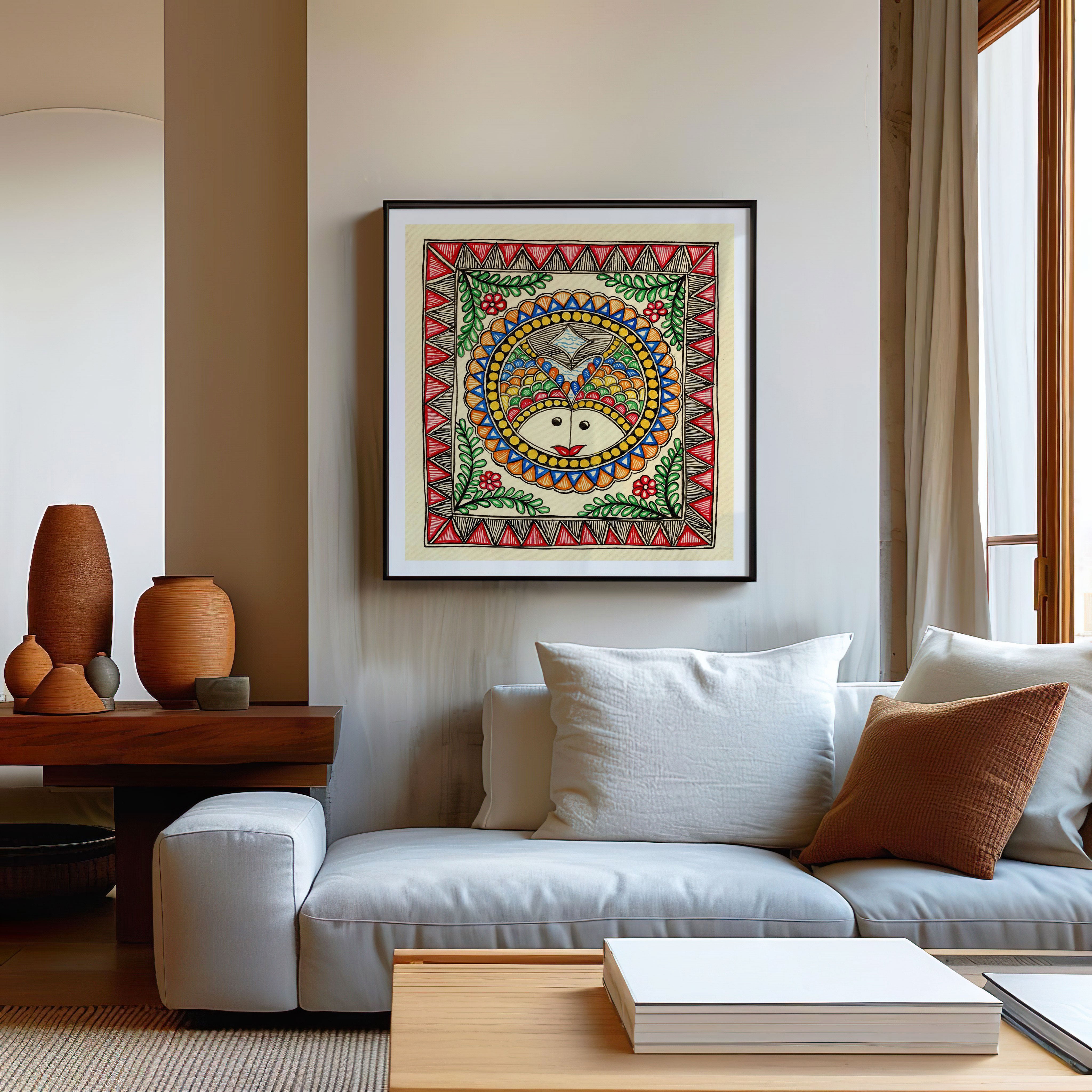 OUR USP: The Final Madhubani Art Painting Print looks exactly like the shown image courtesy of our exceptional printing technique. Additionally, Our Canvas Prints come with a protective spray and varnish to protect the canvas from dust, moisture, and fingerprints.