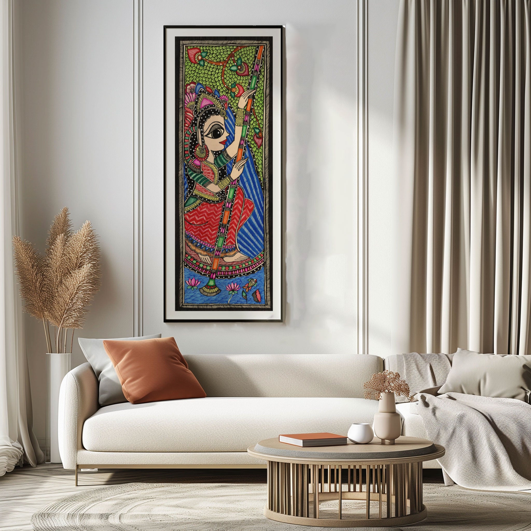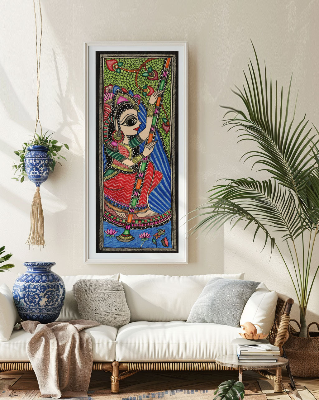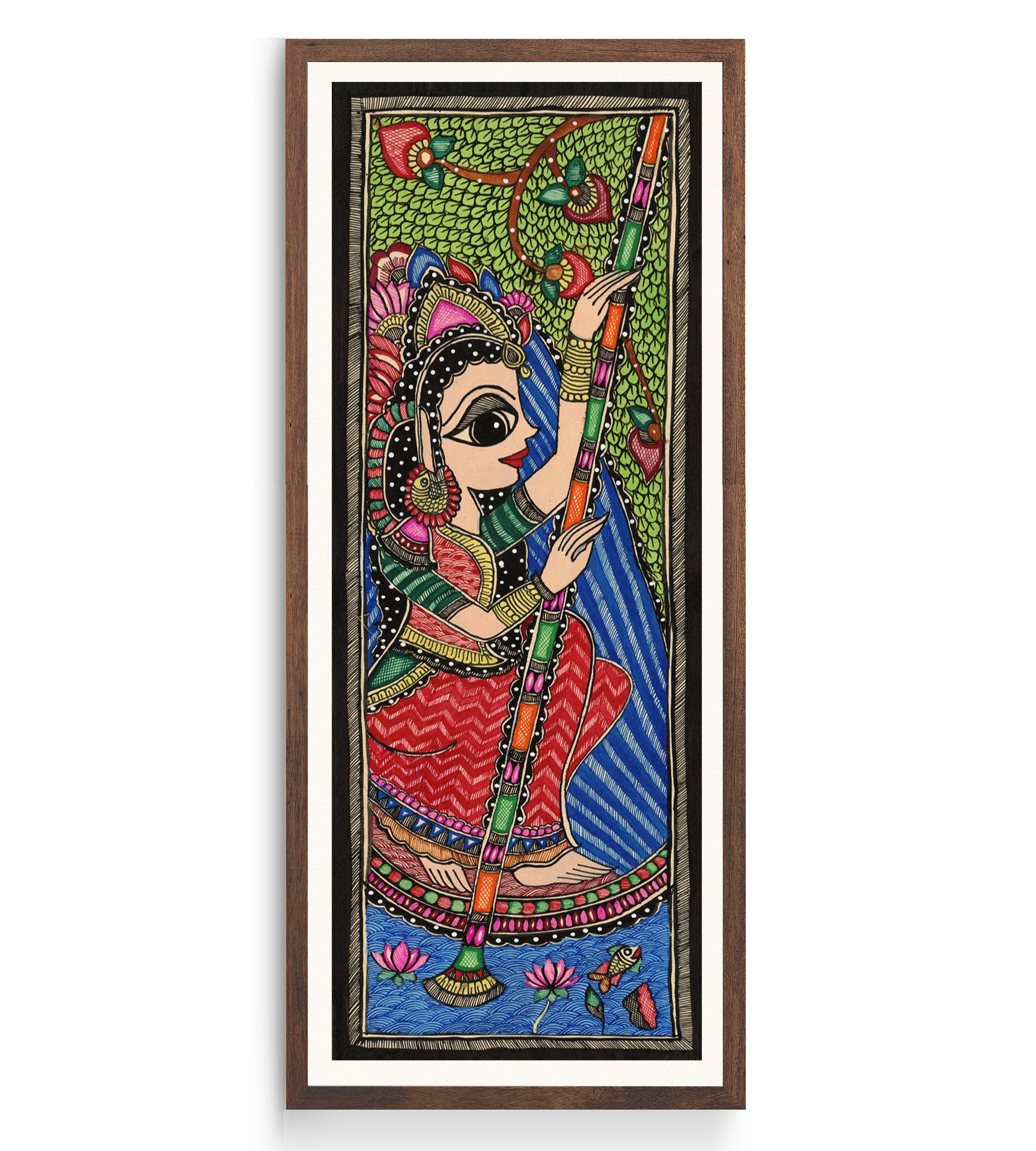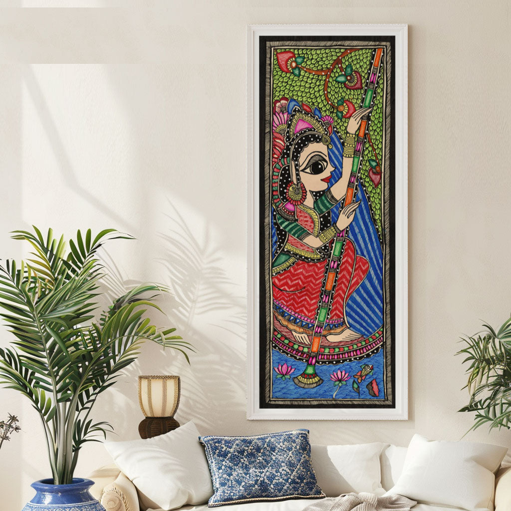 Radha Rani Madhubani Art from the Madhubani Paintings Collection is produced on Premium Museum Grade Canvas and Hahnemuhle Fine Art Media. This beautiful Madhubani Painting Art Print product is made with a matte finish and premium quality with vibrant colors. These Madhubani Miniature Paintings Art Prints are produced with the most extreme shading precision and using the most advanced giclee printing technique in the world. We use the same standard that the various museums and art galleries use across the globe to recreate the Madhubani Miniature Paintings Art Prints. These Madhubani Paintings are perfect for you if you're a Madhubani or Indian Culture Lover or if you want to add a Traditional Look to your space. The vibrancy of colors and the unique detailing of every Madhubani Painting Art Print makes them the best in so many ways. This Madhubani Art Print will add charm to any room in your home. These Madhubani Painting Art Prints can be the perfect gift to your friends, colleagues, or family as they sync in very well in your Bedroom, living room, lobby, Balcony, Bathroom, etc.