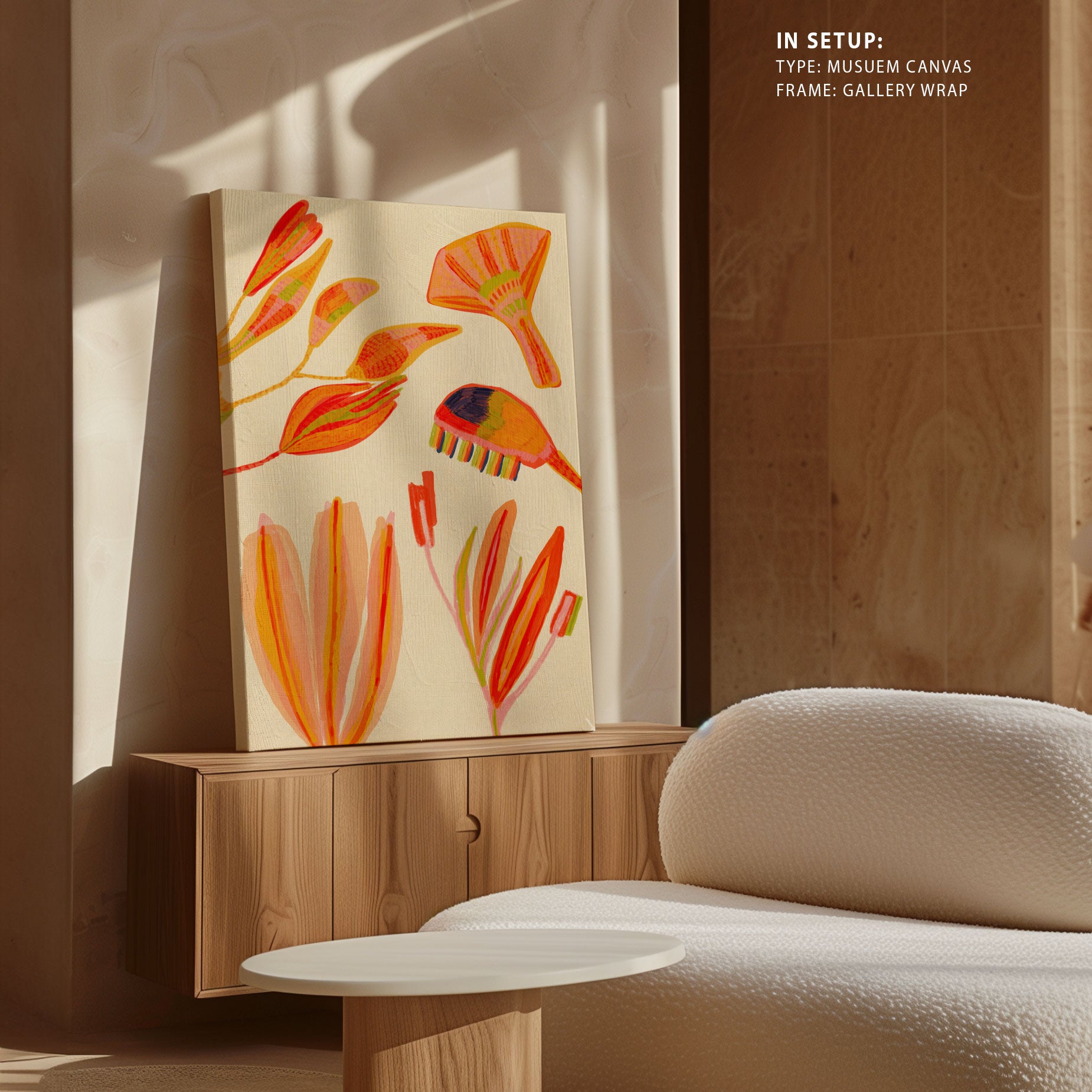 Museum Canvas Print is stretched on a wooden frame in such a way that it wraps around the sides of the stretcher. The sides of the canvas are prepared with white as natural white canvas for illustrations, pop-art and for Abstract, classical art canvas sides are stretched with the same painting as front of the canvas.