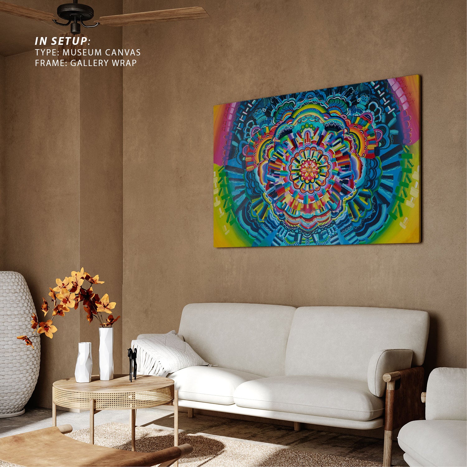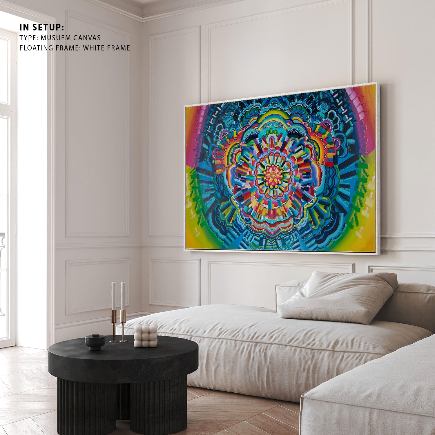 Museum Canvas Print is stretched on a wooden frame in such a way that it wraps around the sides of the stretcher. The sides of the canvas are prepared with white as natural white canvas for illustrations, pop-art and for Abstract Art, classical art canvas sides are stretched with the same painting as front of the canvas.