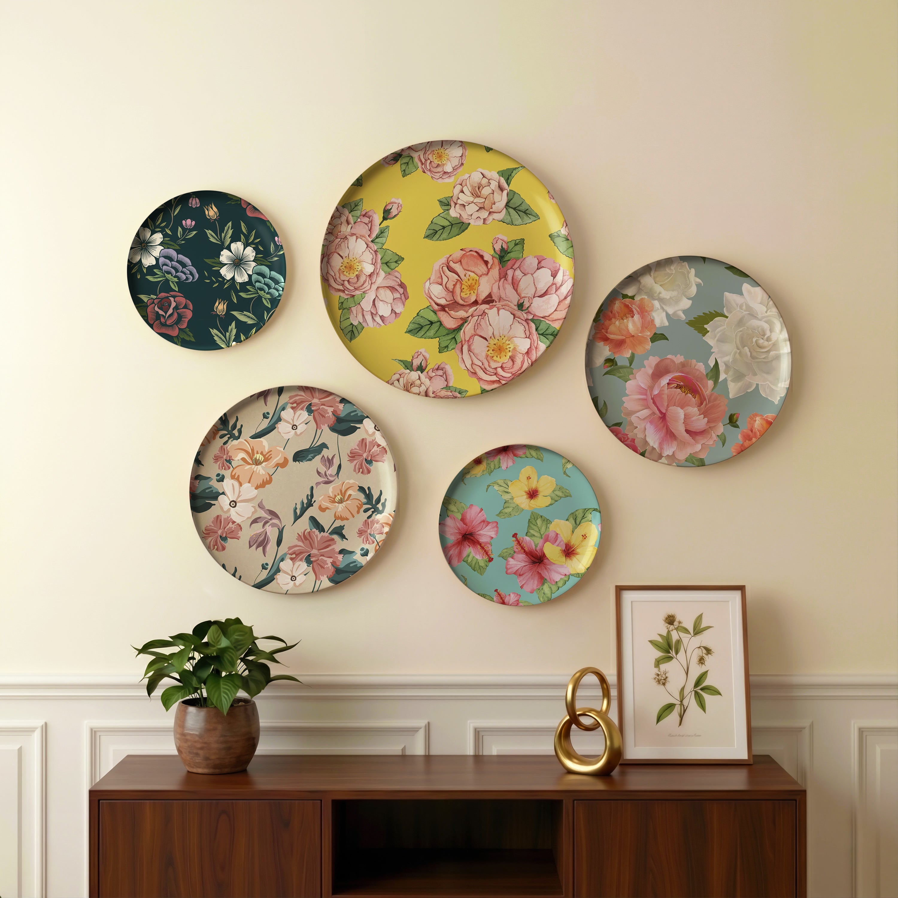 Botanical Symphony Wall Decor Plate, Set of 5, Art Plate Set