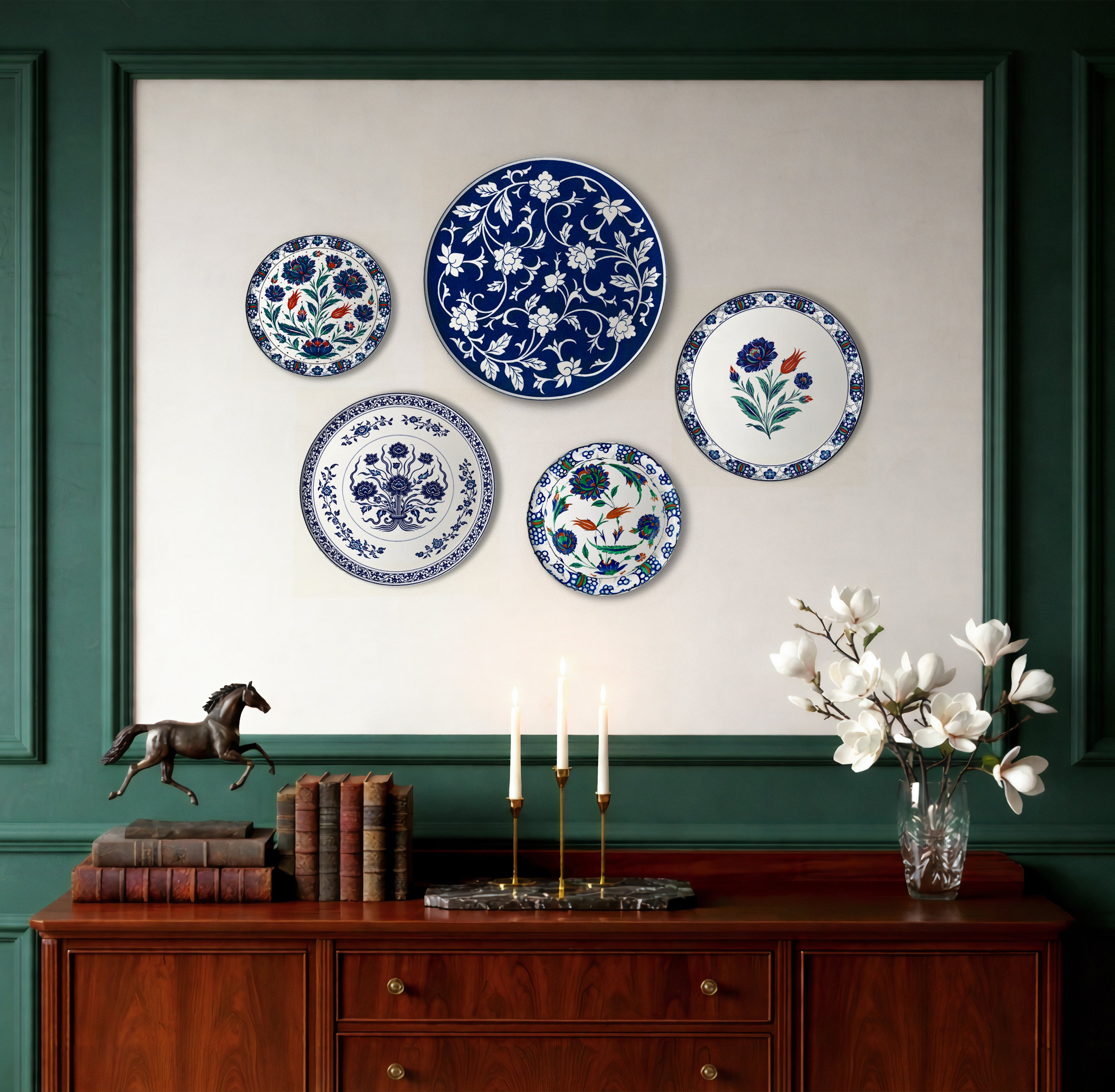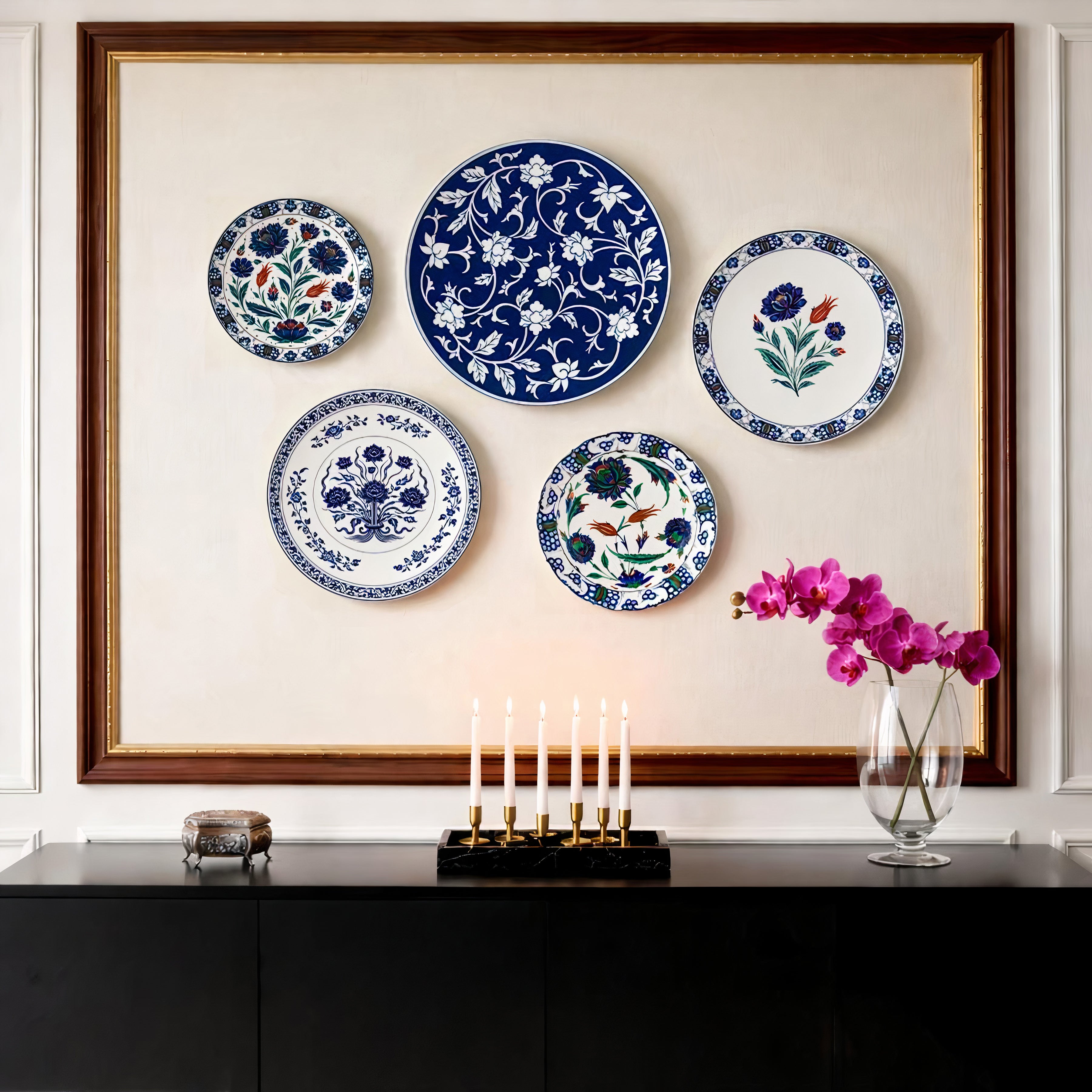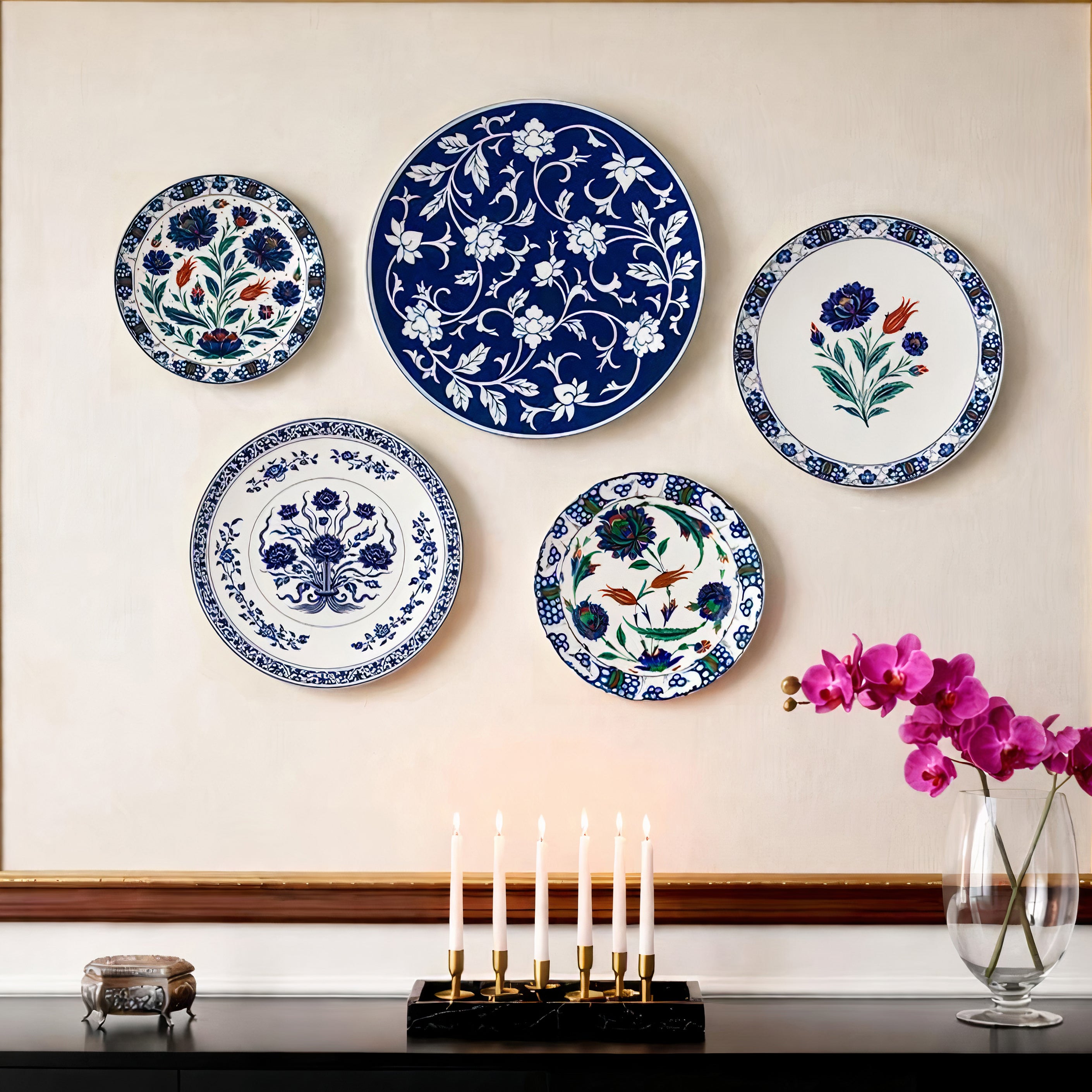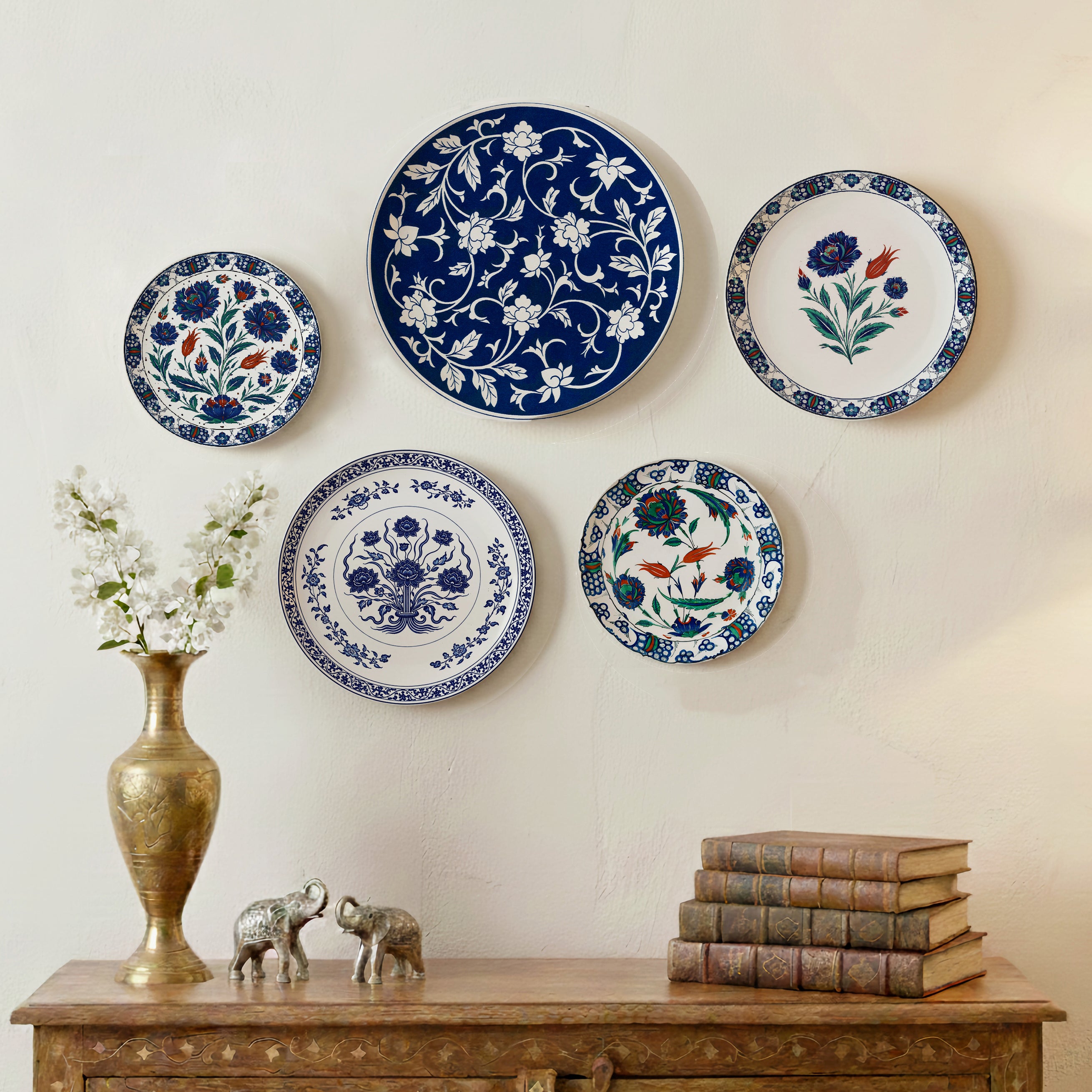Indigo Bloom Blue Pottery Wall Decor Plate, Set of 5, Art Plate Set