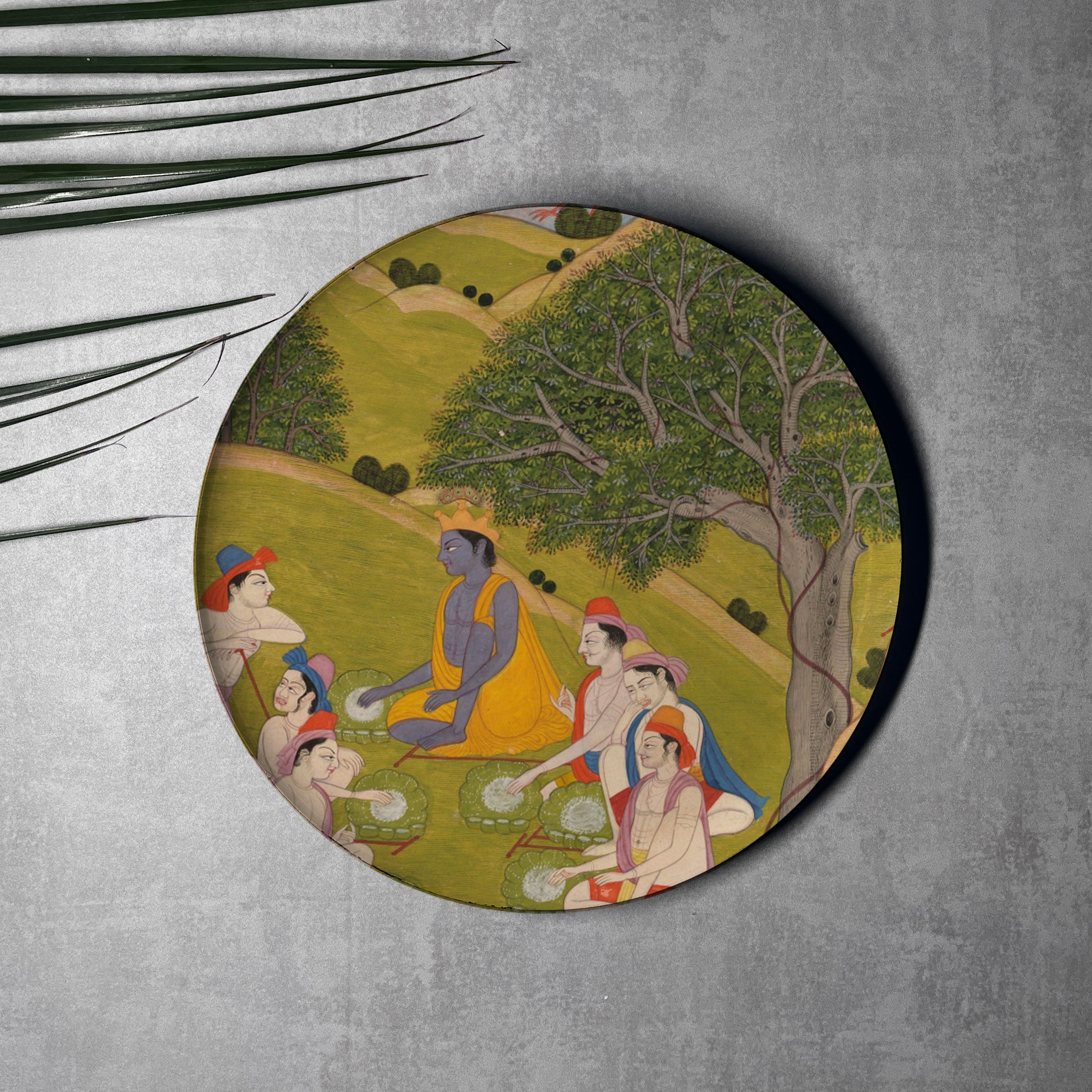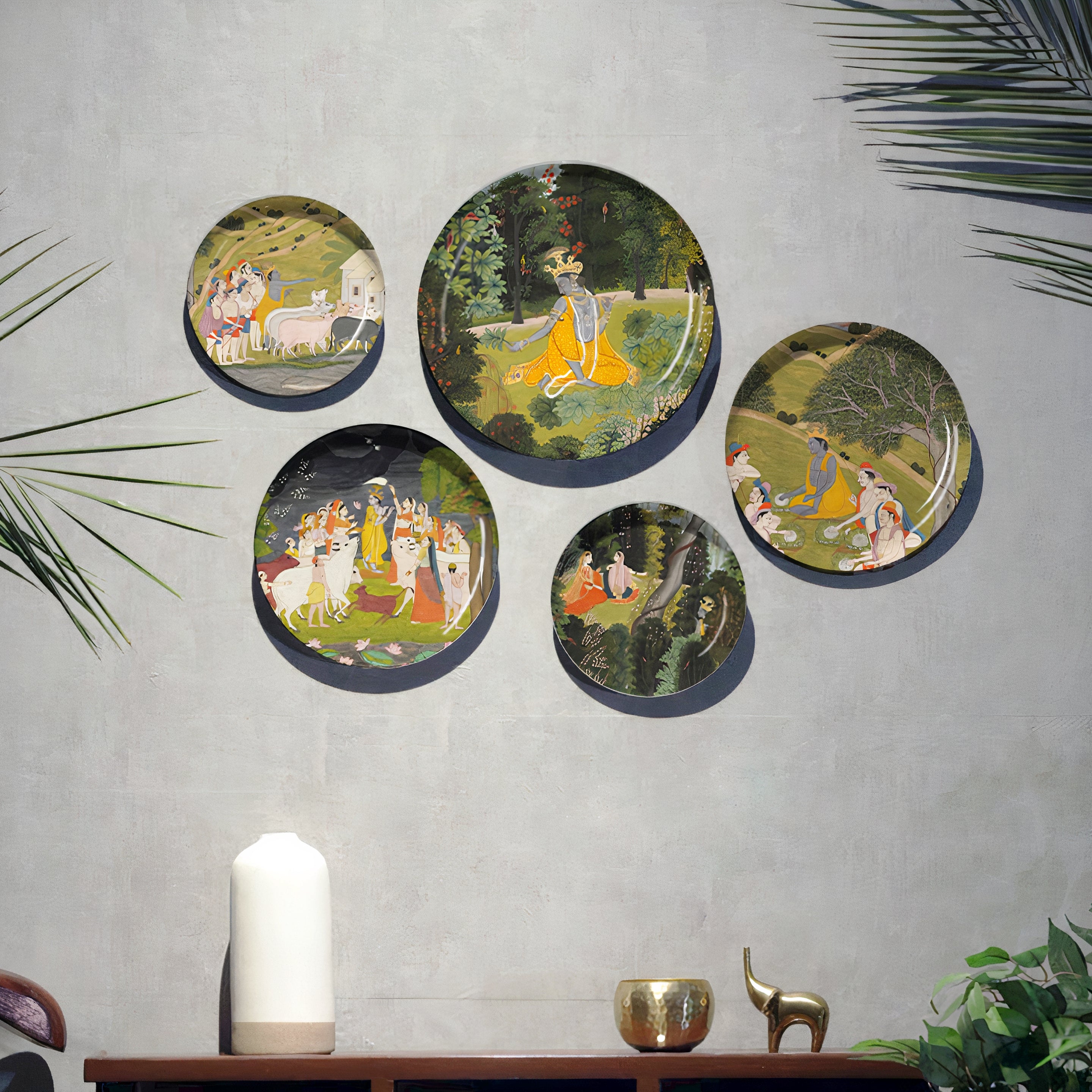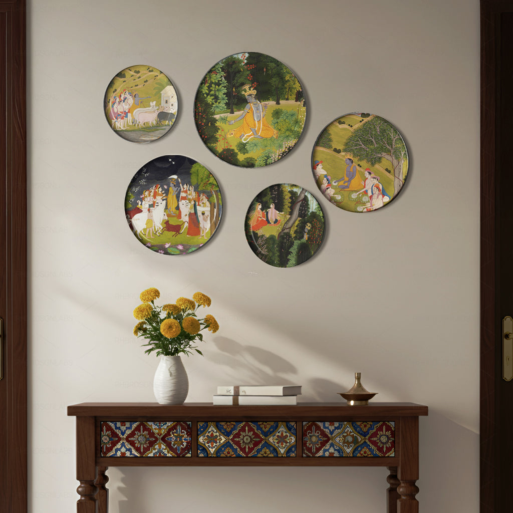 Life of Krishna Wall Decor Plate, Set of 5, Art Plate Set
