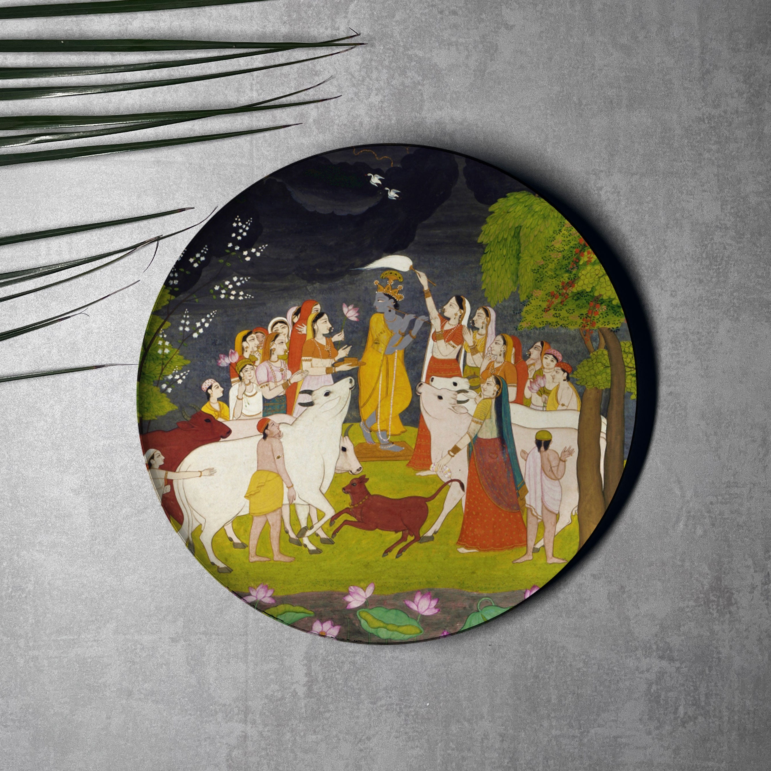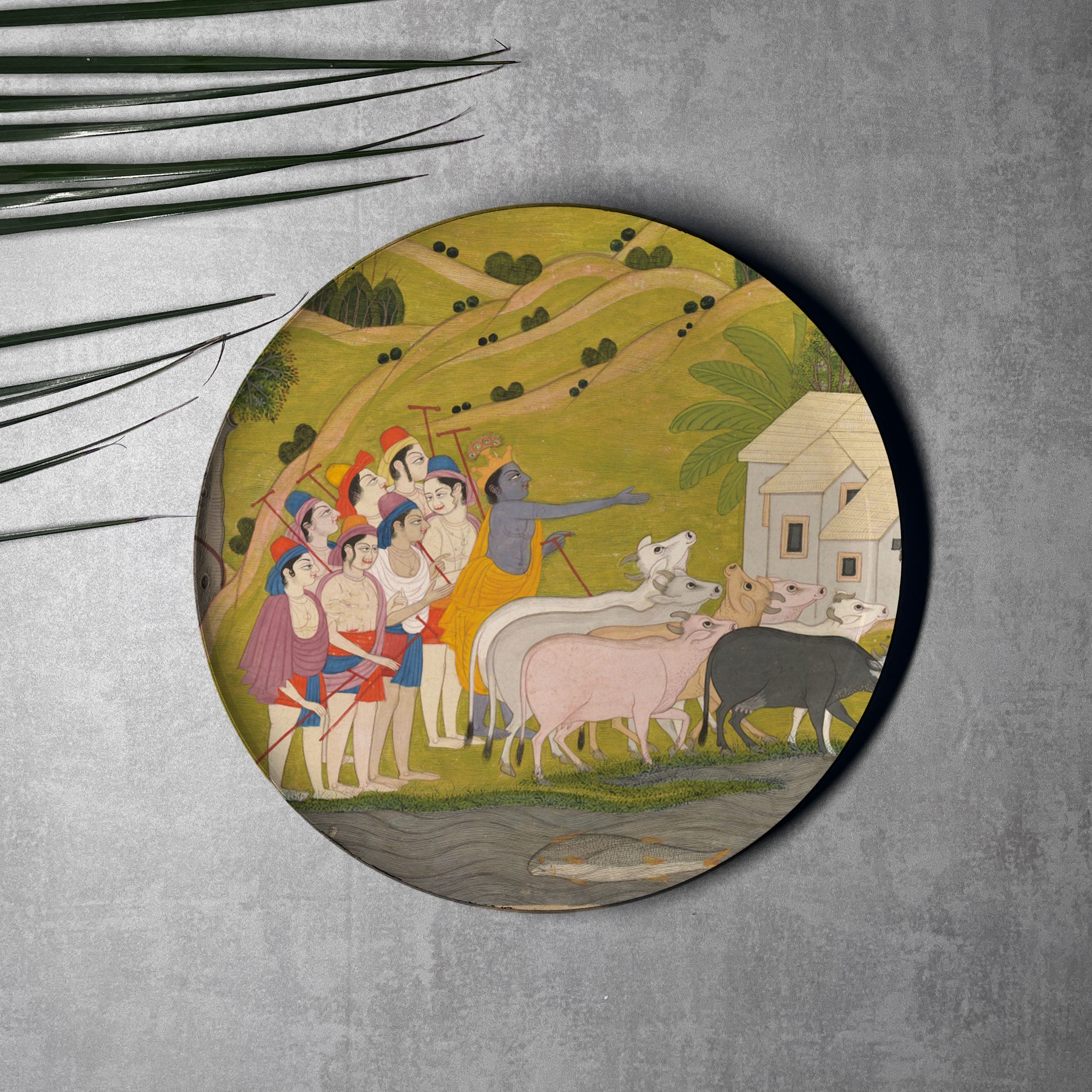 Life of Krishna Wall Plate Set from the Decorative Plates Collection is produced on a Metal Plate with a Premium and Luxury Finish. This beautiful Decor Plate product has a gloss finish, premium quality, and vibrant color. These decorative fine metal plates are produced with extreme shading precision and advanced printing techniques. Each decor plate has a unique design created by leading artists. Every Decorative Plate purchased on Dessine Art pays an artist. These uniquely designed Decor Art Plates are perfect if you're an Art Lover or want to add an artistic look to your space. The vibrancy of colors and the unique detailing of every Decorative Plate make them the best in many ways. This Decor Art Plate will add charm to any wall in your house. This Art Plate can be the perfect gift for your friends, colleagues, or family as it syncs very well in your living room, lobby, etc. These decorative art plates can also be used for corporate gifting.