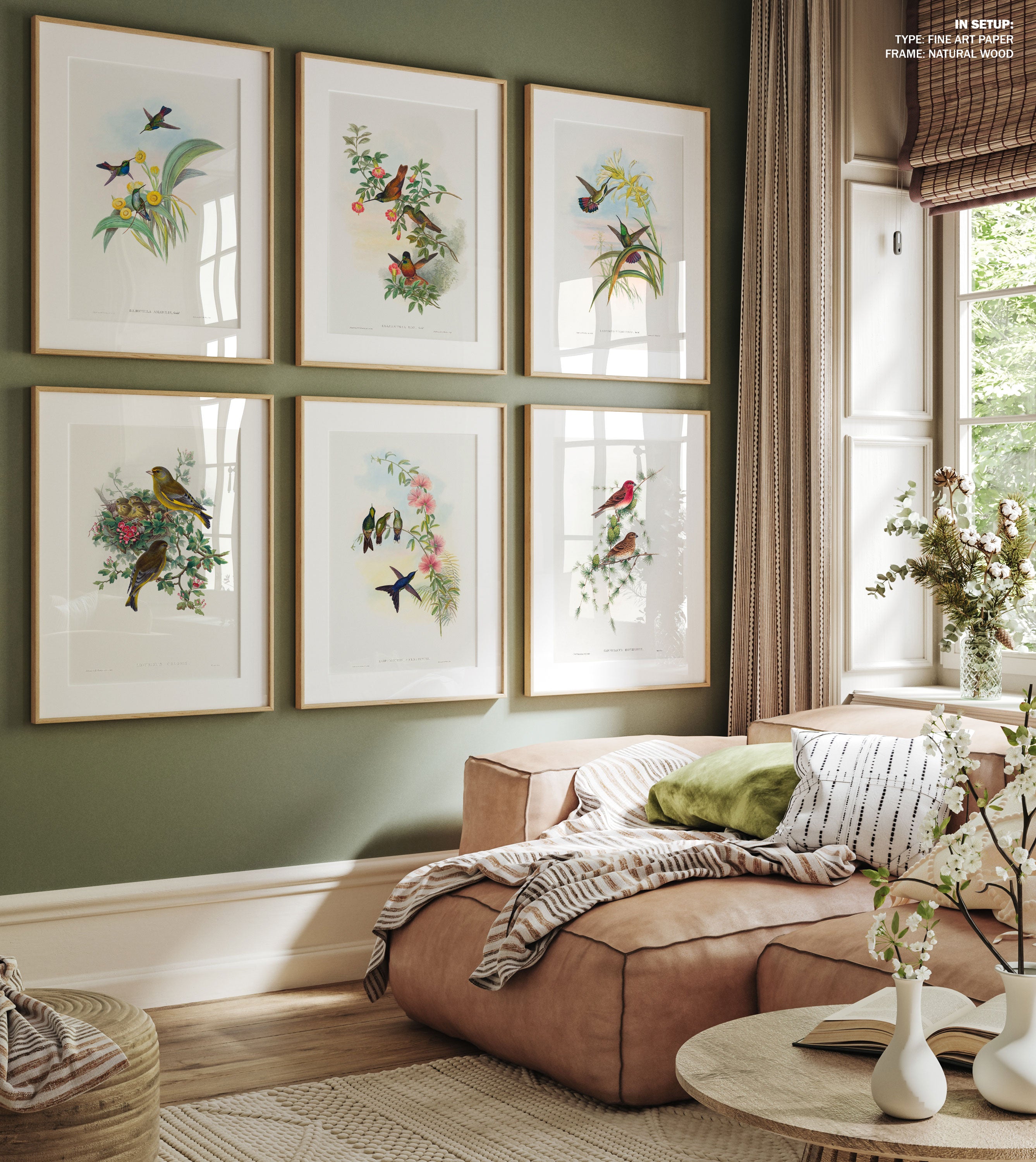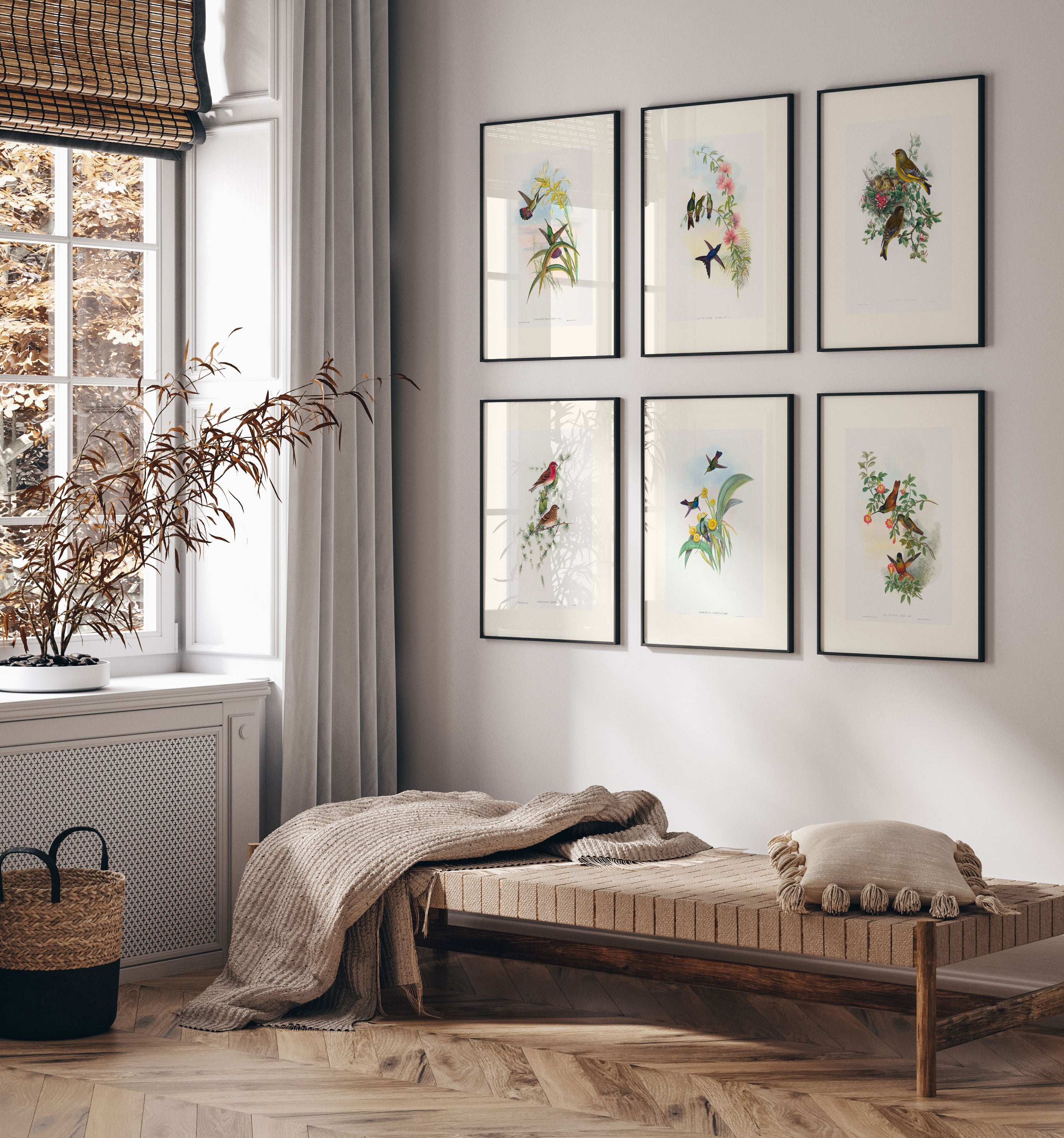 Birds Art Set of 6, Vintage & Exotic Birds Painting. from Gallery Wall & Art Sets Collection is produced on Premium Museum Grade Canvas and Hahnemuhle Fine Art Media. This beautiful Gallery Wall art is made with matte finish and premium quality with vibrant colors. These Gallery Wall Art Sets are produced with the most extreme shading precision and using the most advanced giclee printing technique in the world. We use the same standard that the various museums and art galleries use across the globe to recreate the art sets. These Modern Style Gallery Wall Art Sets are perfect for you if you're an Art Lover or if you want to add a Modern Look to your home. The vibrancy of colors and the unique detailing of every artwork makes them the best in so many ways. This Gallery Wall Painting set will add charm to any room in your home. This art set can be the perfect gift to your friends, colleagues or family as they sync in very well in your Bedroom, living room, lobby, Balcony, Bathroom etc.