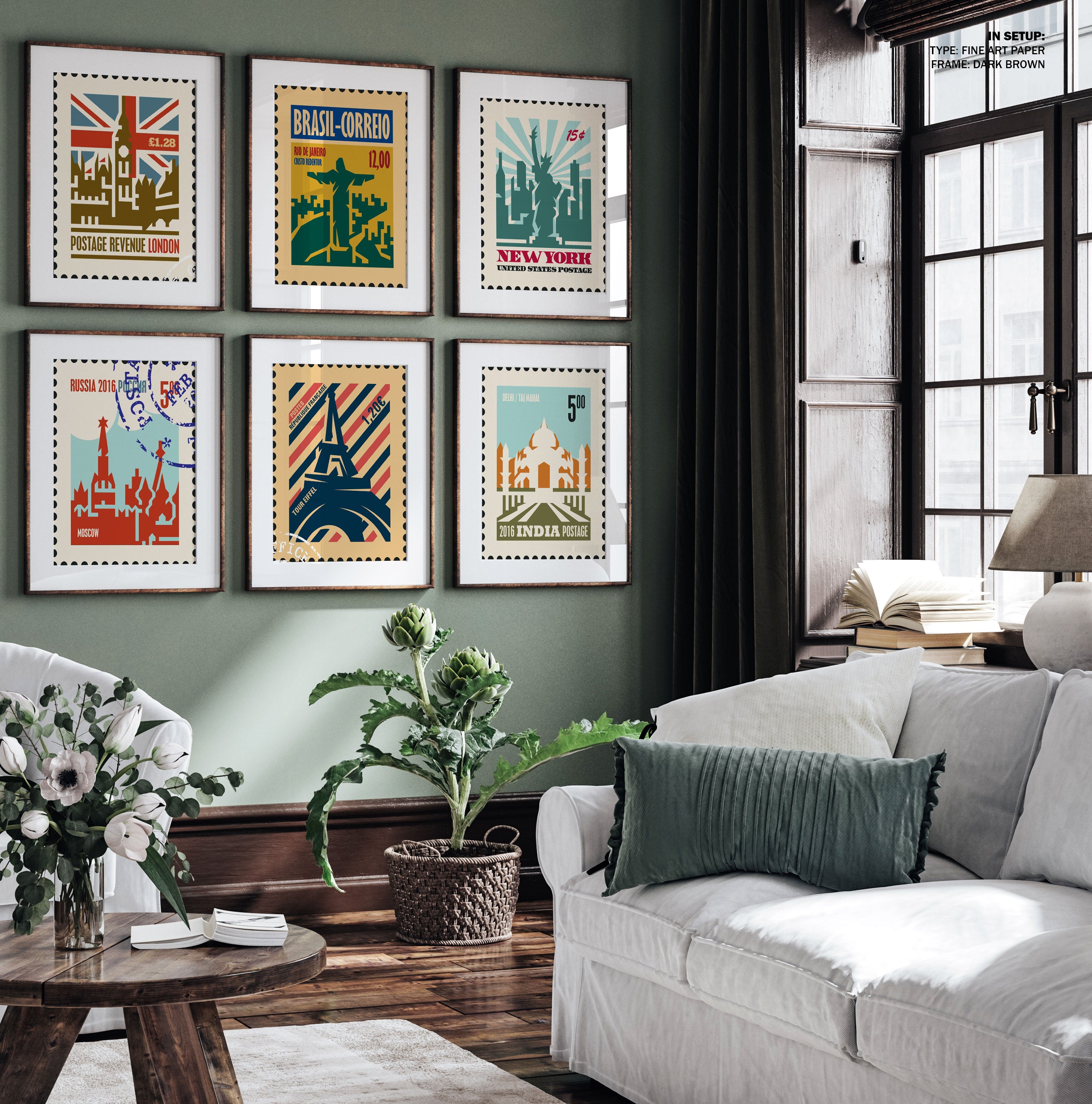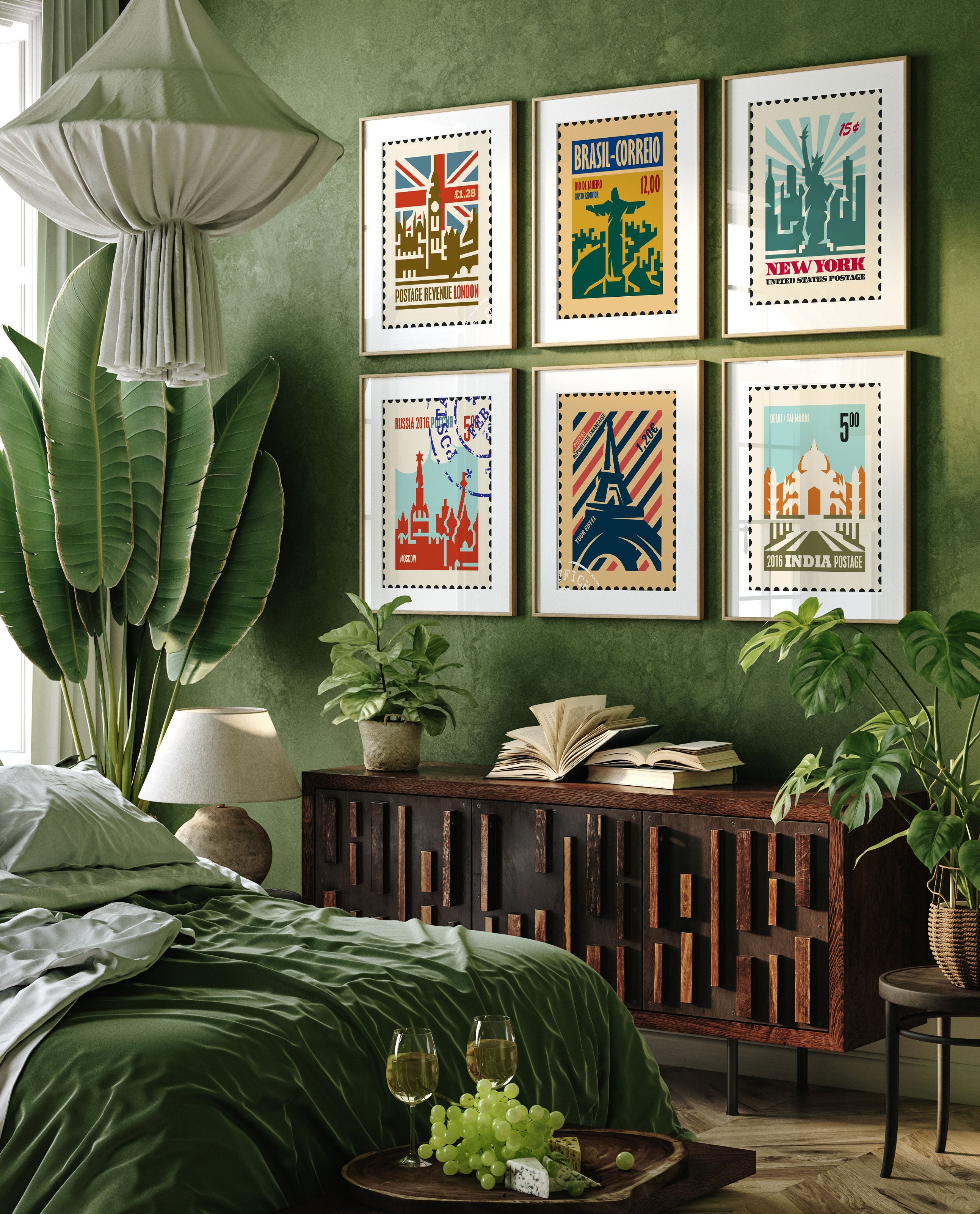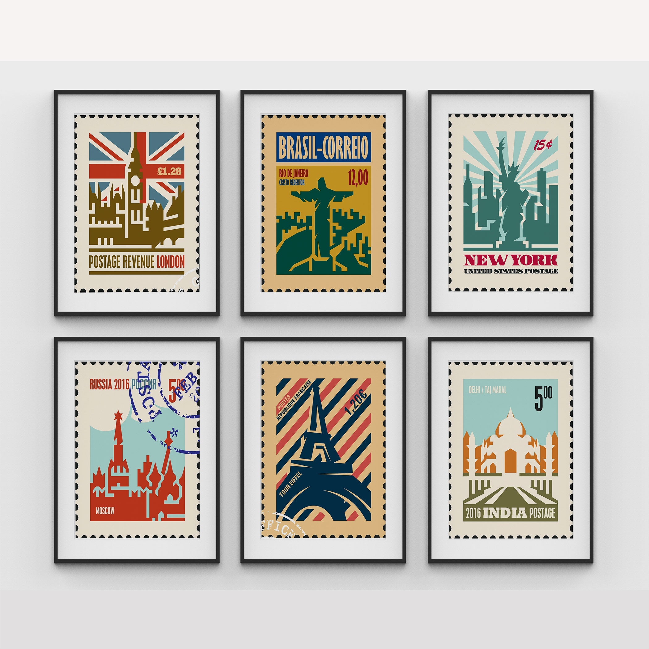 Travel Stamp Art Set of 6, Stamp Travel Posters II Painting.