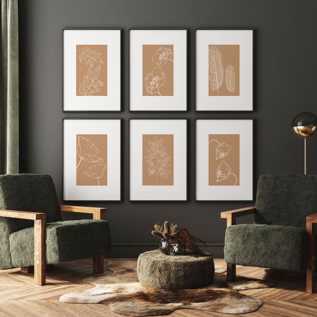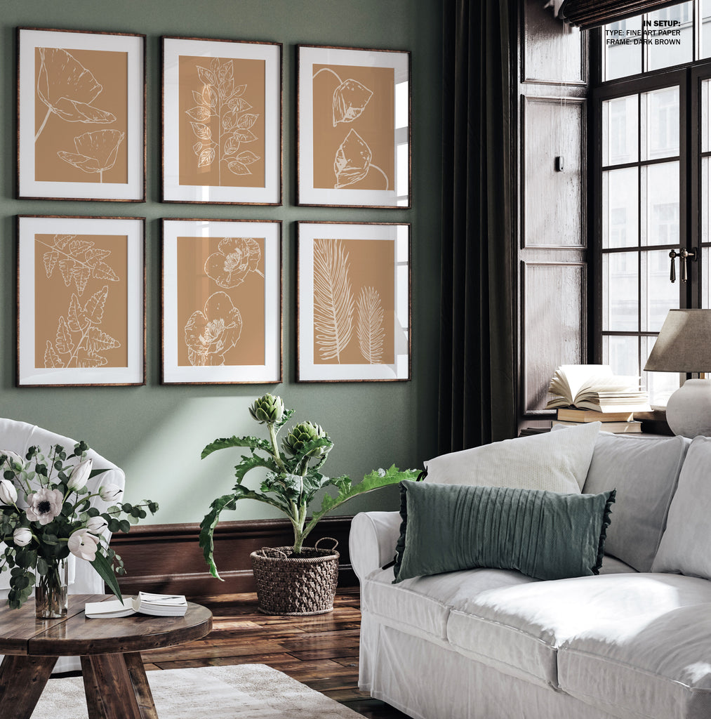 Botanical Art Set of 6, Botanical Leaves Paintings from Gallery Wall & Art Sets Collection is produced on Premium Museum Grade Canvas and Hahnemuhle Fine Art Media. This beautiful Gallery Wall art is made with matte finish and premium quality with vibrant colors. These Gallery Wall Art Sets are produced with the most extreme shading precision and using the most advanced giclee printing technique in the world. We use the same standard that the various museums and art galleries use across the globe to recreate the art sets. These Modern Style Gallery Wall Art Sets are perfect for you if you're an Art Lover or if you want to add a Modern Look to your home. The vibrancy of colors and the unique detailing of every artwork makes them the best in so many ways. This Gallery Wall Painting set will add charm to any room in your home. This art set can be the perfect gift to your friends, colleagues or family as they sync in very well in your Bedroom, living room, lobby, Balcony, Bathroom etc.