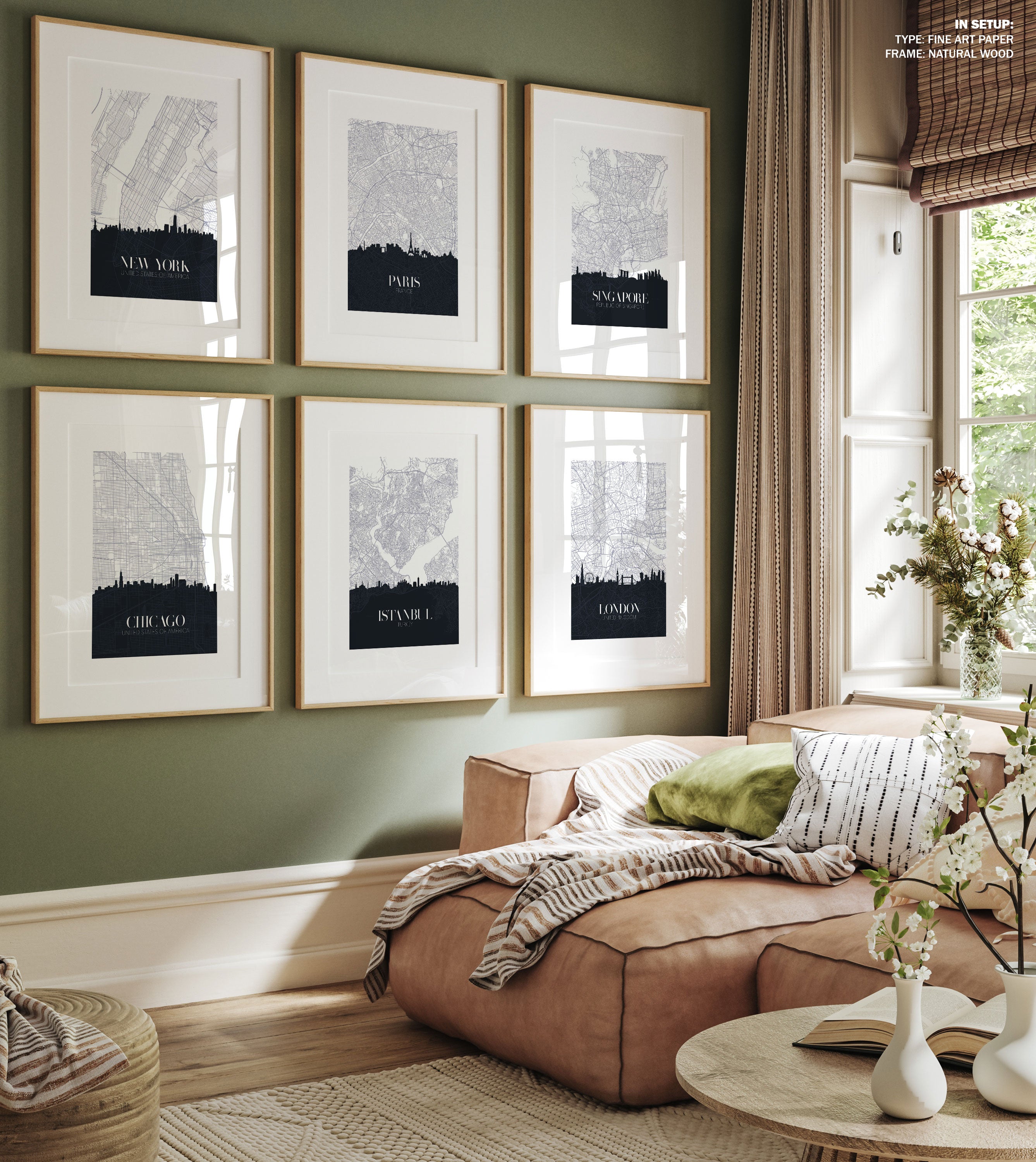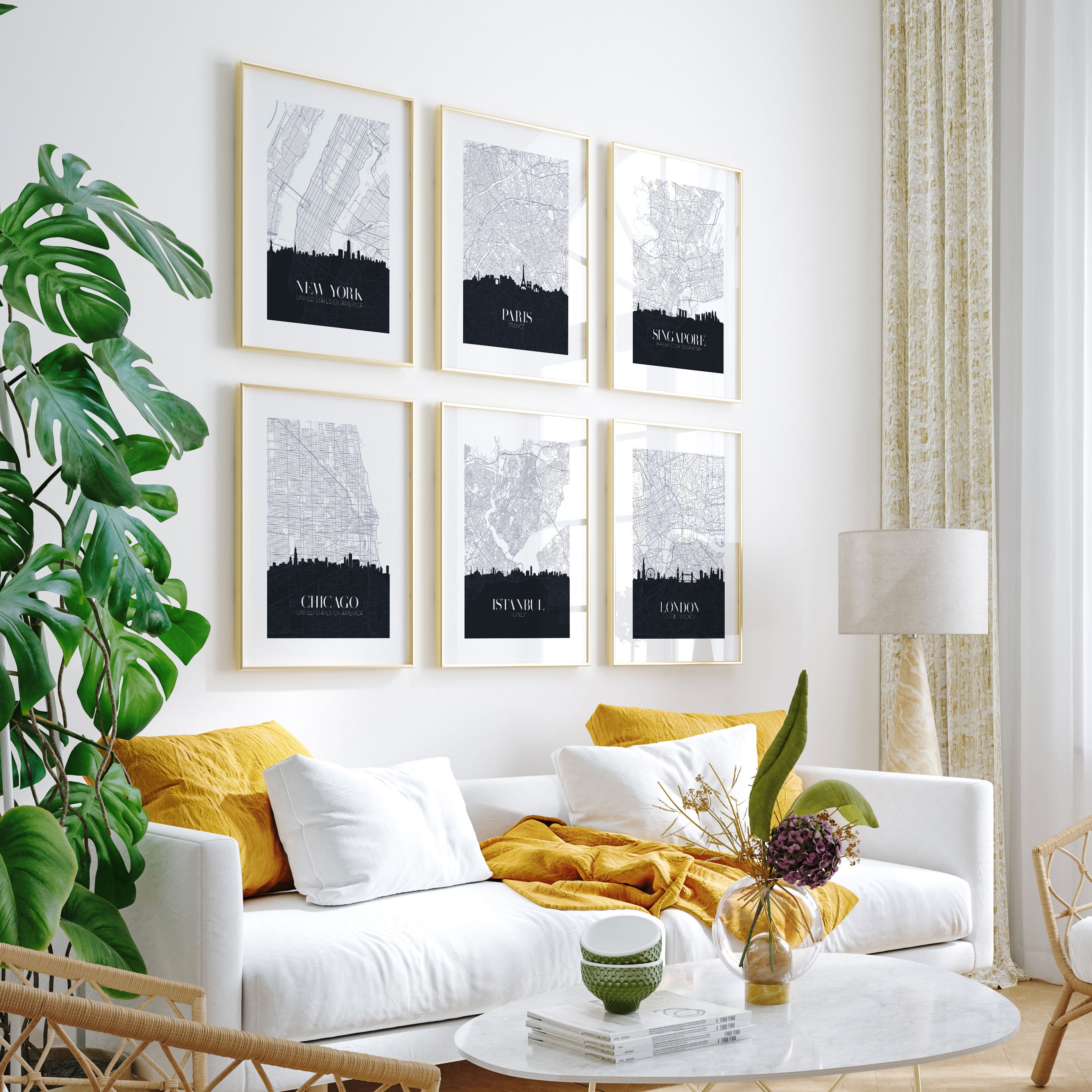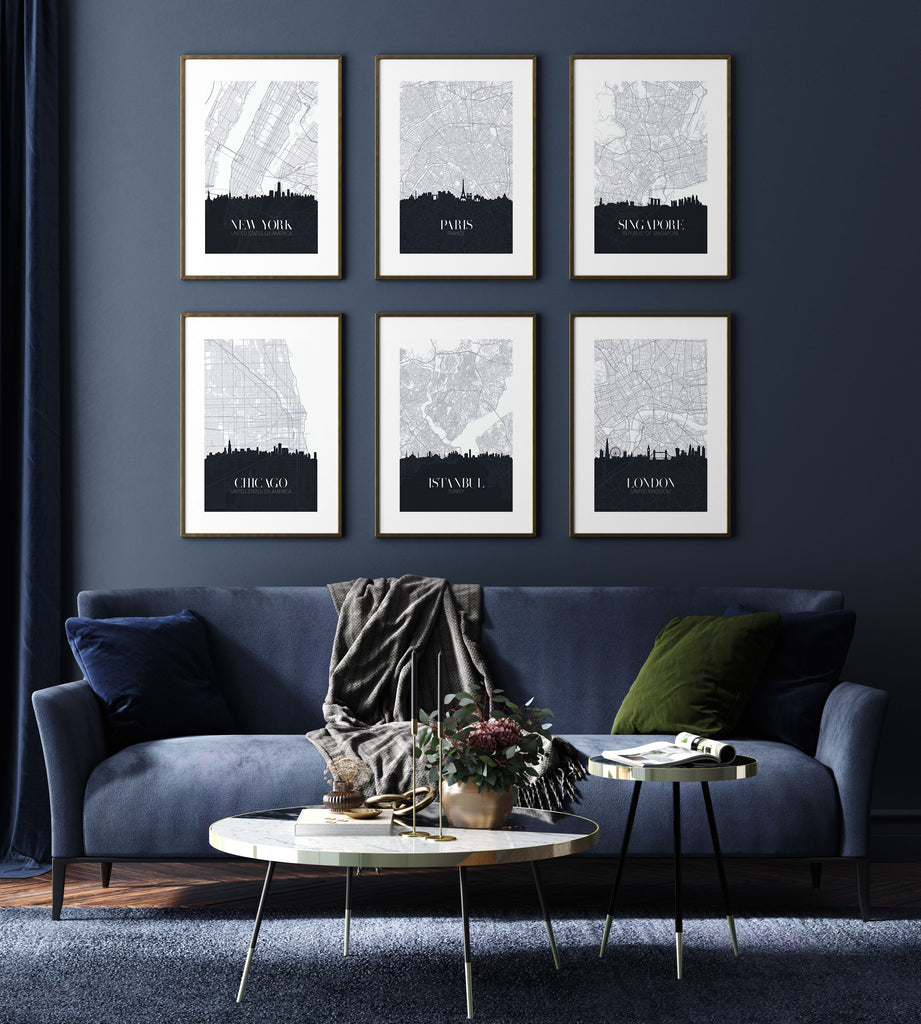 City Street Map Art Set of 6, Skyline Maps of Cities Painting. from Gallery Wall & Art Sets Collection is produced on Premium Museum Grade Canvas and Hahnemuhle Fine Art Media. This beautiful Gallery Wall art is made with matte finish and premium quality with vibrant colors. These Gallery Wall Art Sets are produced with the most extreme shading precision and using the most advanced giclee printing technique in the world. We use the same standard that the various museums and art galleries use across the globe to recreate the art sets. These Modern Style Gallery Wall Art Sets are perfect for you if you're an Art Lover or if you want to add a Modern Look to your home. The vibrancy of colors and the unique detailing of every artwork makes them the best in so many ways. This Gallery Wall Painting set will add charm to any room in your home. This art set can be the perfect gift to your friends, colleagues or family as they sync in very well in your Bedroom, living room, lobby, Balcony, Bathroom etc.