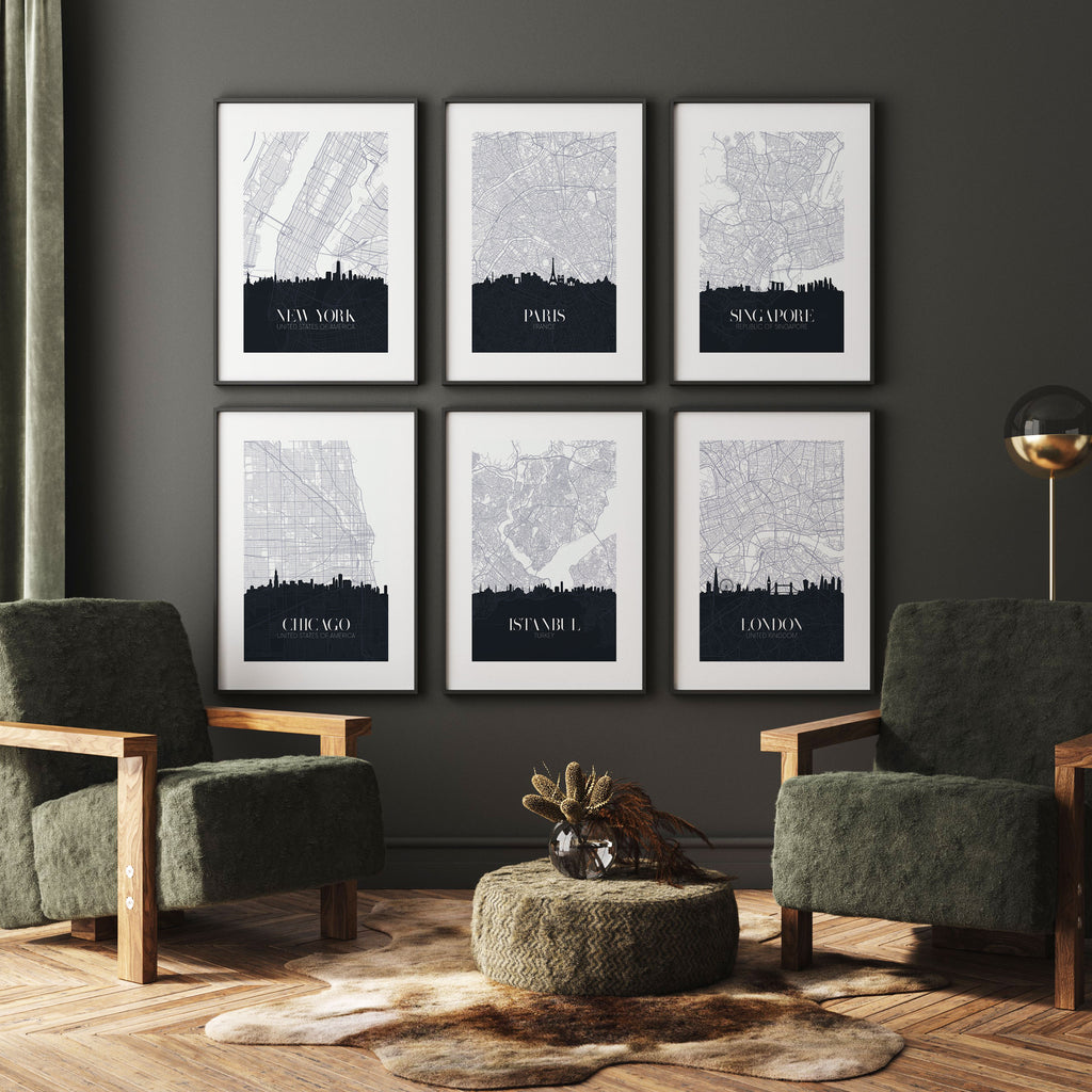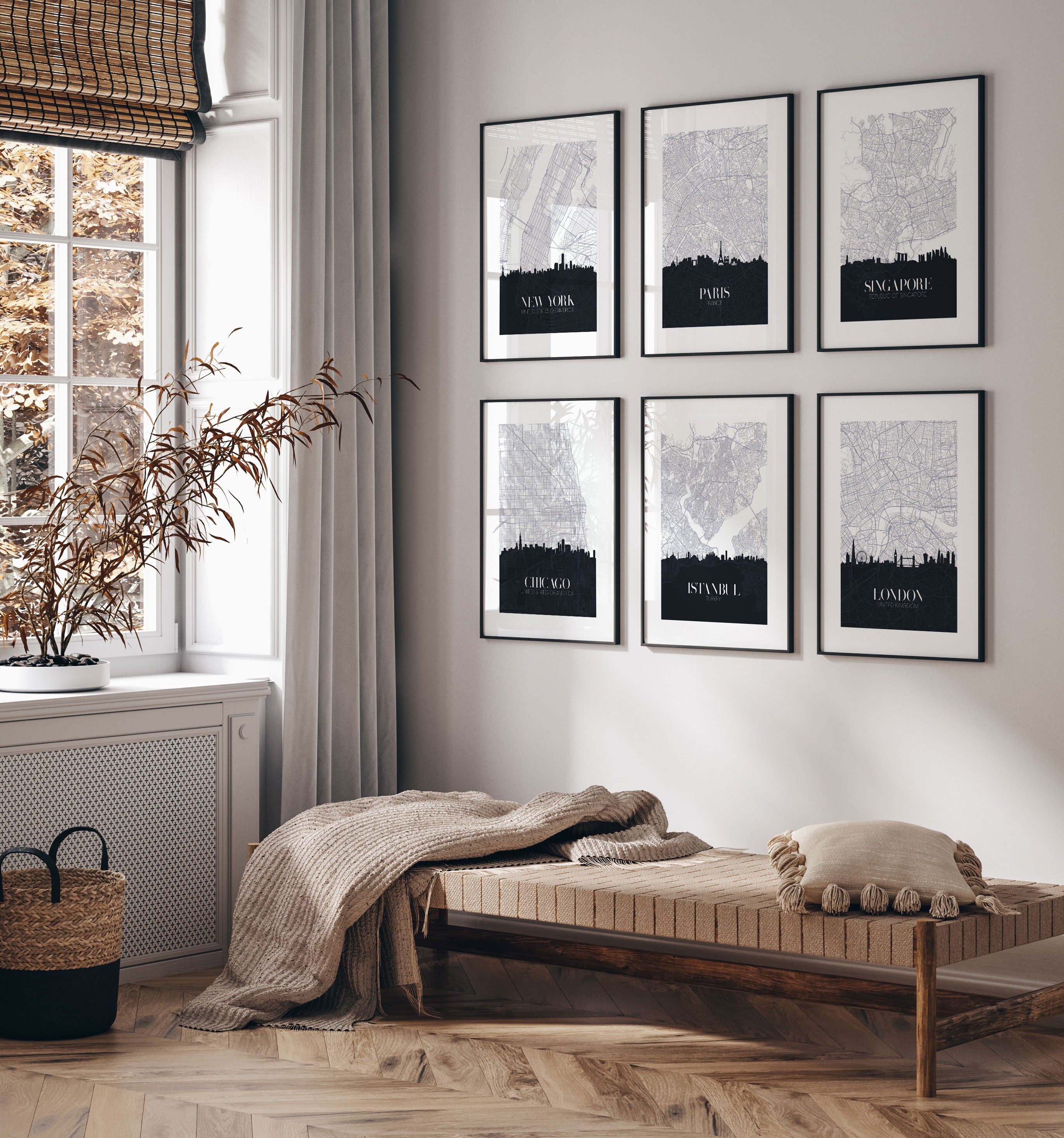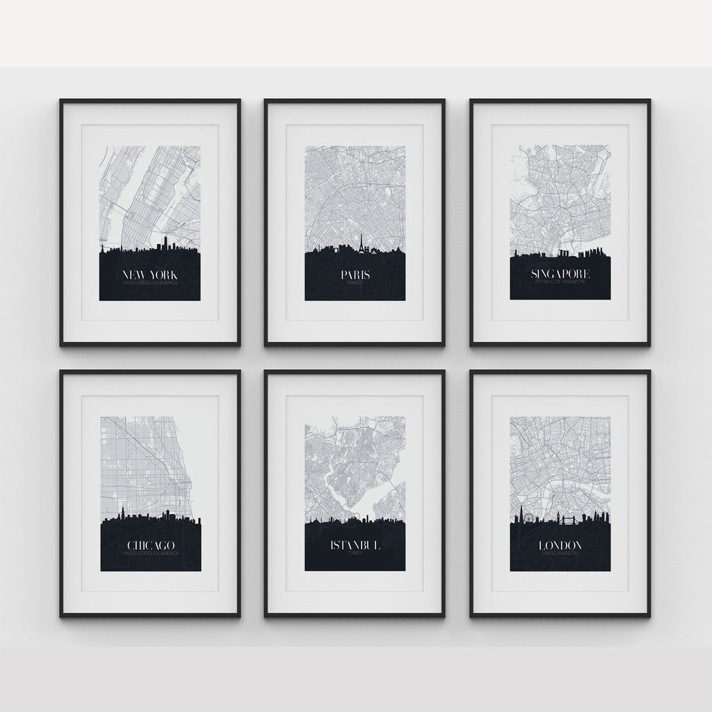 City Street Map Art Set of 6, Skyline Maps of Cities Painting. from Gallery Wall & Art Sets Collection is produced on Premium Museum Grade Canvas and Hahnemuhle Fine Art Media. This beautiful Gallery Wall art is made with matte finish and premium quality with vibrant colors. These Gallery Wall Art Sets are produced with the most extreme shading precision and using the most advanced giclee printing technique in the world. We use the same standard that the various museums and art galleries use across the globe to recreate the art sets. These Modern Style Gallery Wall Art Sets are perfect for you if you're an Art Lover or if you want to add a Modern Look to your home. The vibrancy of colors and the unique detailing of every artwork makes them the best in so many ways. This Gallery Wall Painting set will add charm to any room in your home. This art set can be the perfect gift to your friends, colleagues or family as they sync in very well in your Bedroom, living room, lobby, Balcony, Bathroom etc.