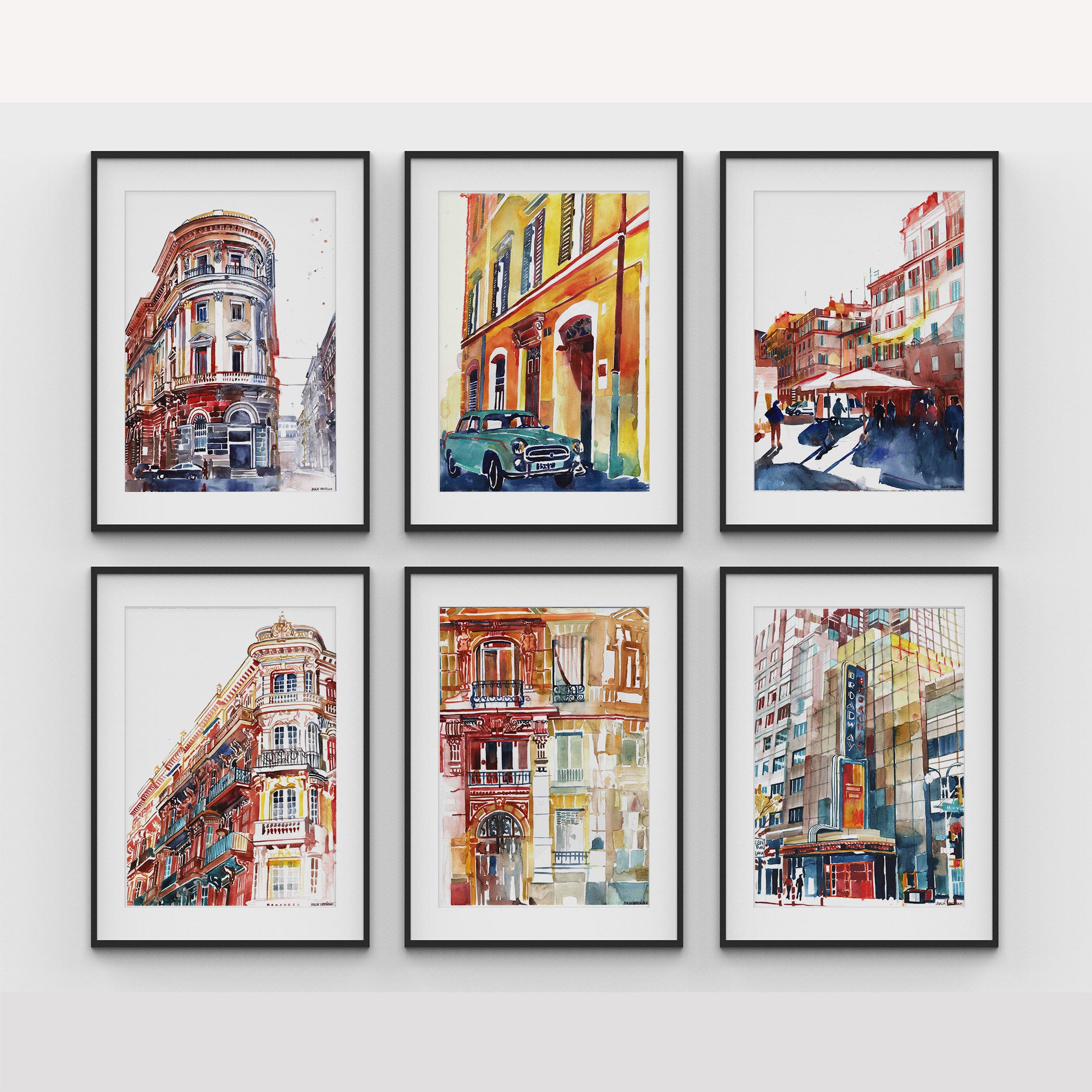 City View Art Set of 6, New York, Rome, Spain and Portugal City Painting.