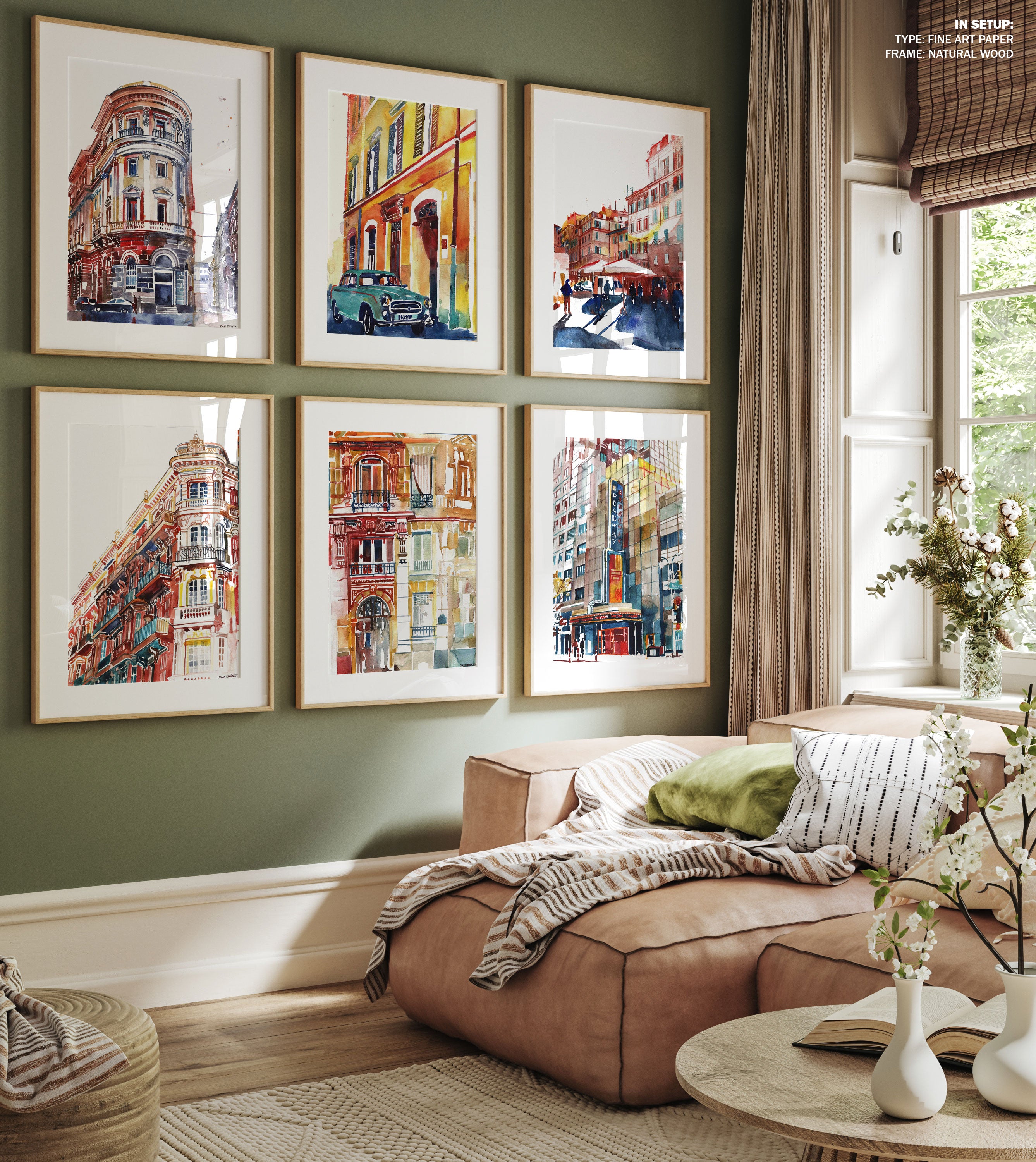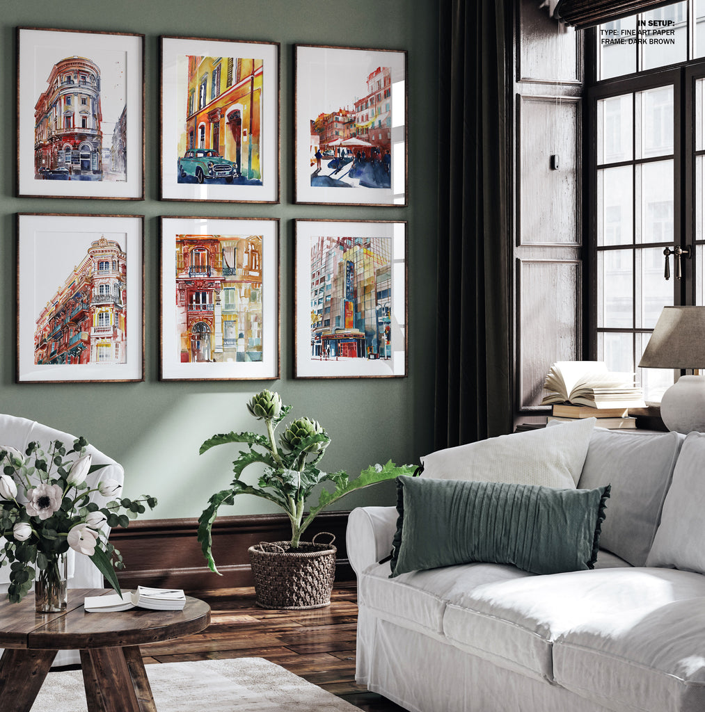 City View Art Set of 6, New York, Rome, Spain and Portugal City Painting. from Gallery Wall & Art Sets Collection is produced on Premium Museum Grade Canvas and Hahnemuhle Fine Art Media. This beautiful Gallery Wall art is made with matte finish and premium quality with vibrant colors. These Gallery Wall Art Sets are produced with the most extreme shading precision and using the most advanced giclee printing technique in the world. We use the same standard that the various museums and art galleries use across the globe to recreate the art sets. These Modern Style Gallery Wall Art Sets are perfect for you if you're an Art Lover or if you want to add a Modern Look to your home. The vibrancy of colors and the unique detailing of every artwork makes them the best in so many ways. This Gallery Wall Painting set will add charm to any room in your home. This art set can be the perfect gift to your friends, colleagues or family as they sync in very well in your Bedroom, living room, lobby, Balcony, Bathroom etc.