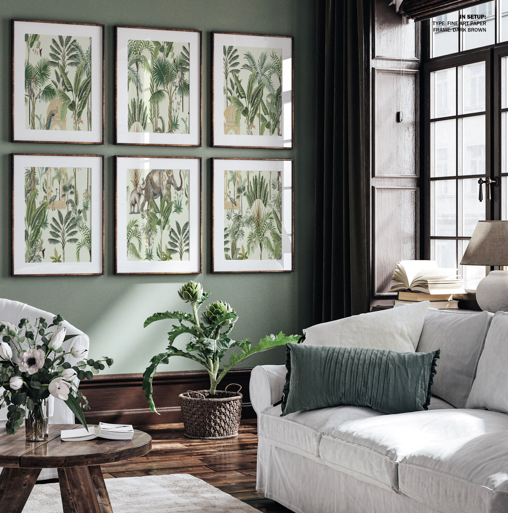 Green Trees Art Set of 6, Tropical Forest Jungle Painting. from Gallery Wall & Art Sets Collection is produced on Premium Museum Grade Canvas and Hahnemuhle Fine Art Media. This beautiful Gallery Wall art is made with matte finish and premium quality with vibrant colors. These Gallery Wall Art Sets are produced with the most extreme shading precision and using the most advanced giclee printing technique in the world. We use the same standard that the various museums and art galleries use across the globe to recreate the art sets. These Modern Style Gallery Wall Art Sets are perfect for you if you're an Art Lover or if you want to add a Modern Look to your home. The vibrancy of colors and the unique detailing of every artwork makes them the best in so many ways. This Gallery Wall Painting set will add charm to any room in your home. This art set can be the perfect gift to your friends, colleagues or family as they sync in very well in your Bedroom, living room, lobby, Balcony, Bathroom etc.