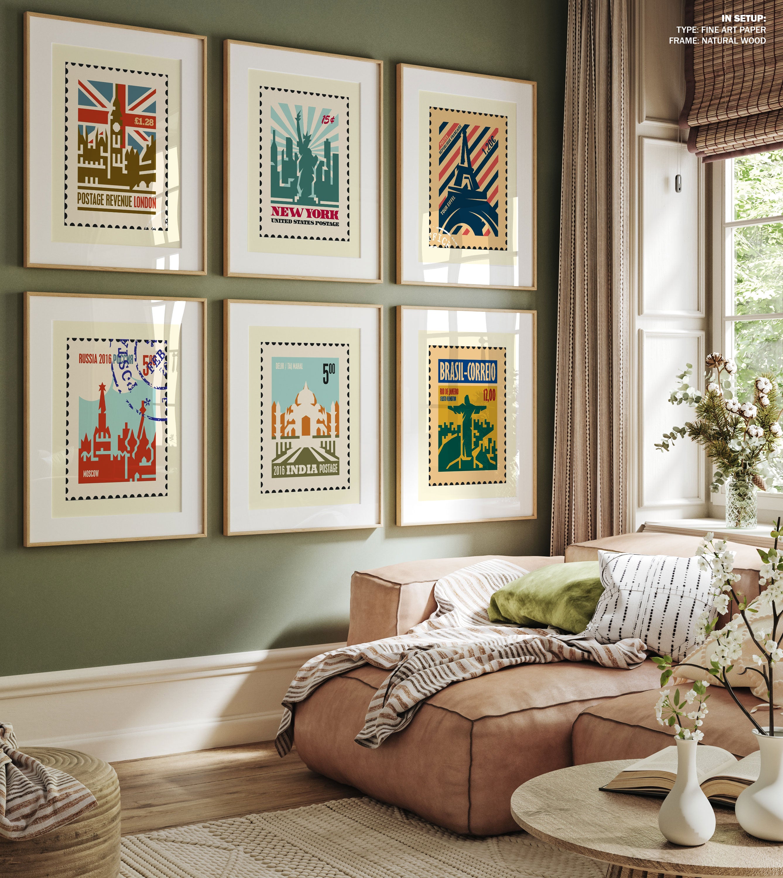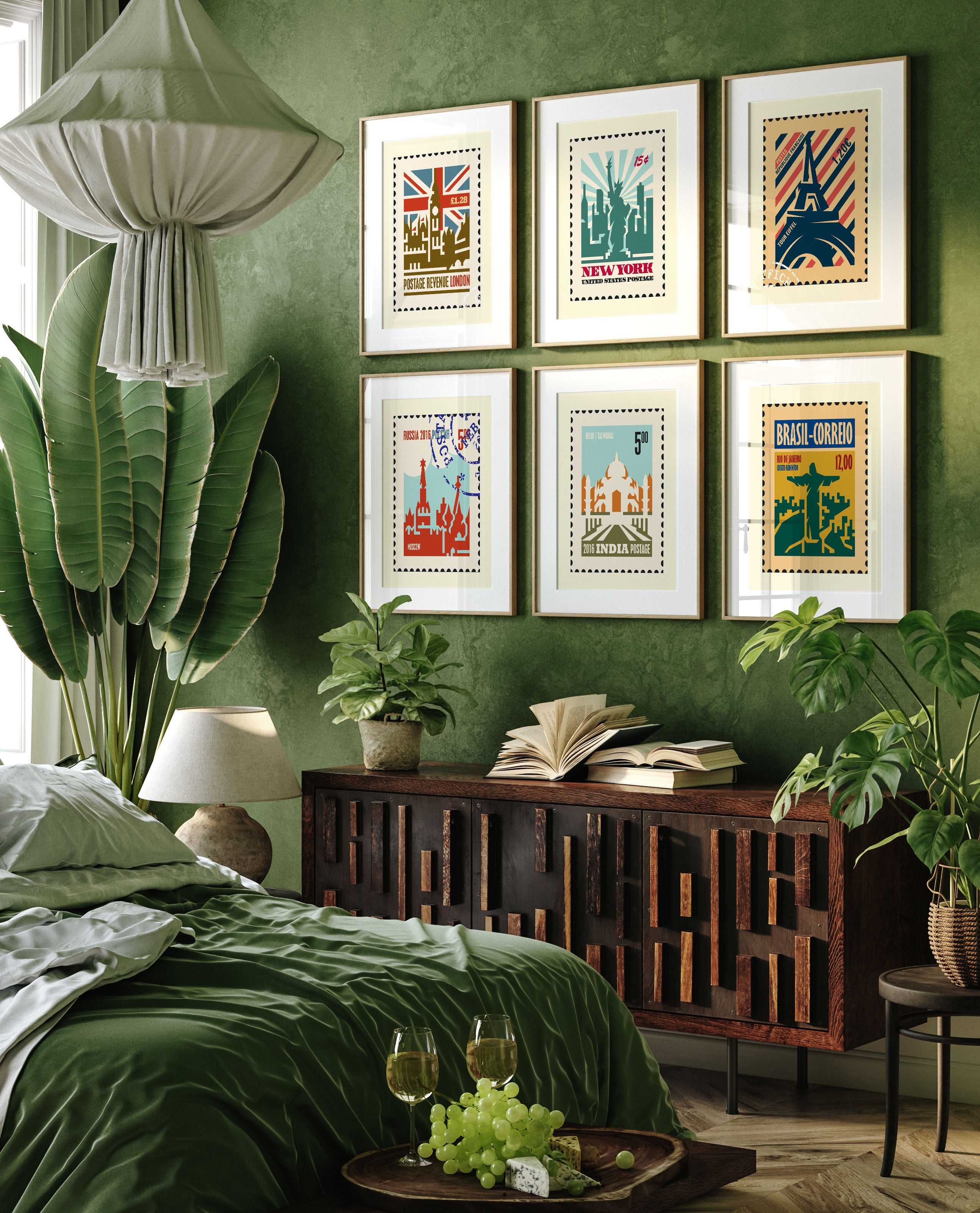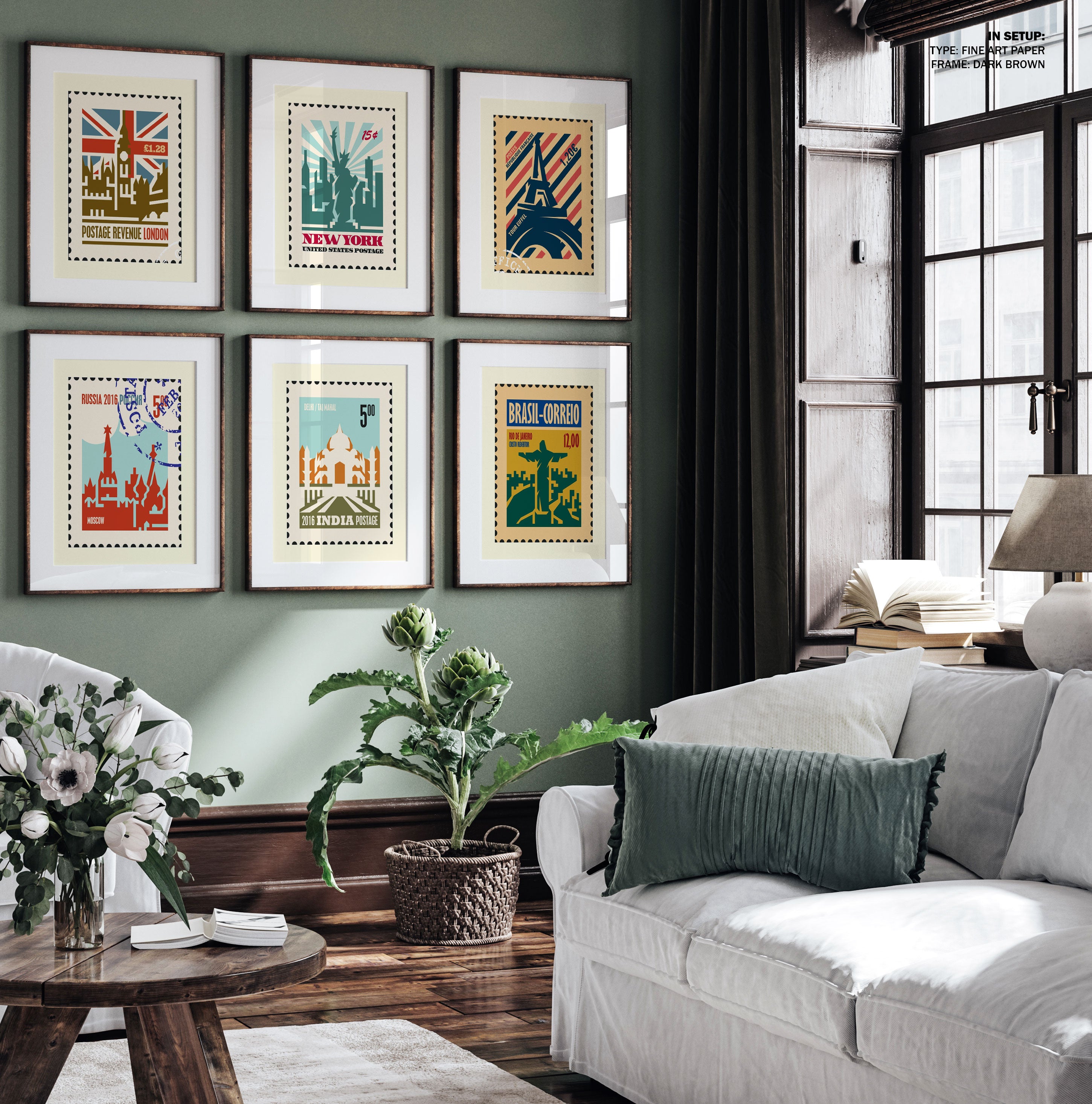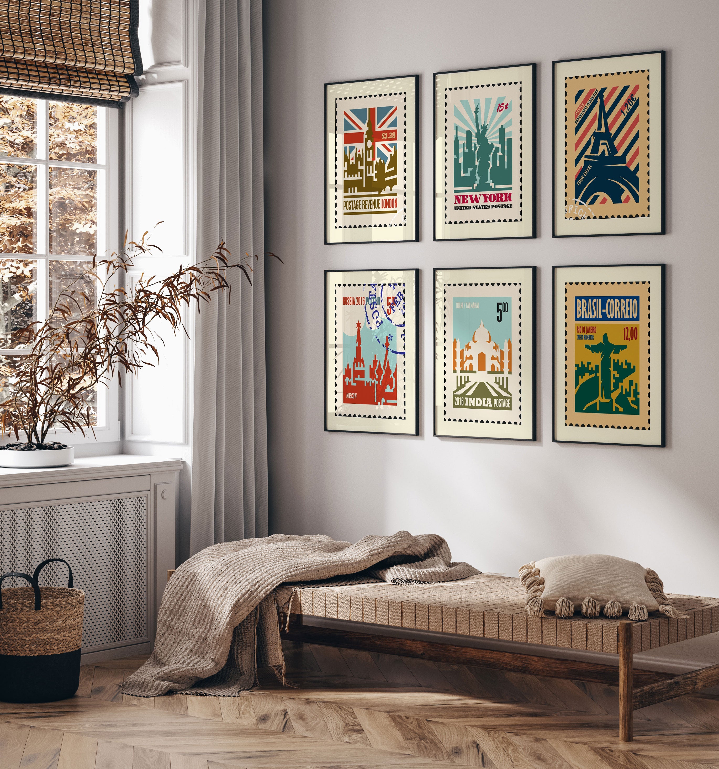 Travel Stamp Art Set of 6, Stamp Travel Posters Painting.