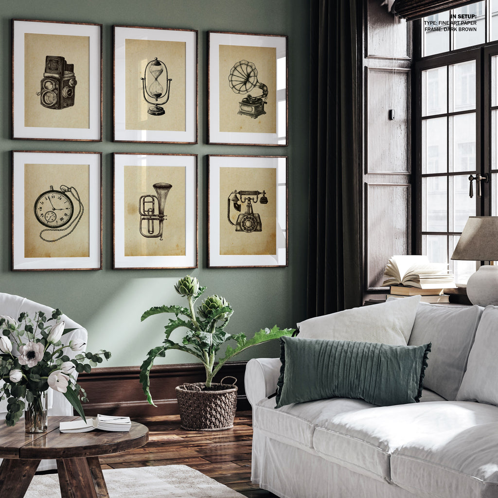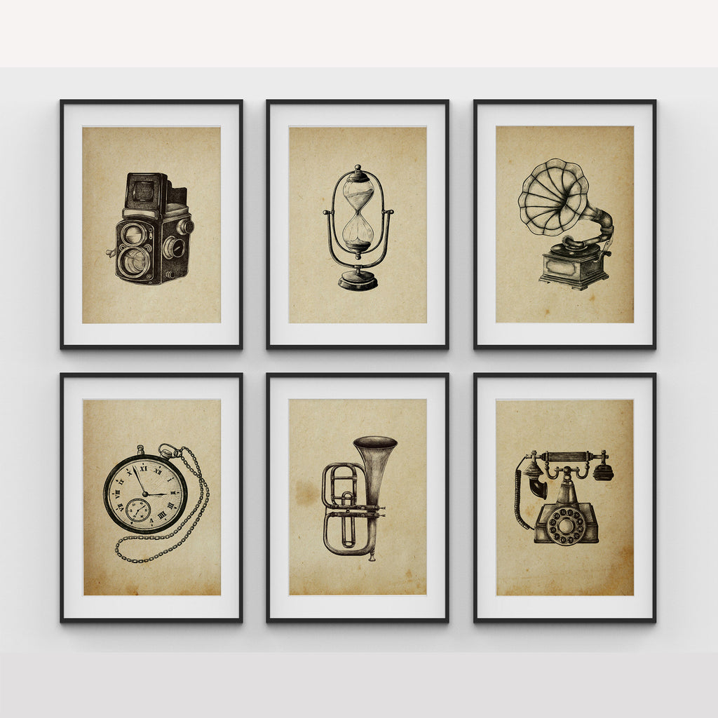 Wall Art Set of 6, Vintage Insturments Monochrome II Painting. from Gallery Wall & Art Sets Collection is produced on Premium Museum Grade Canvas and Hahnemuhle Fine Art Media. This beautiful Gallery Wall art is made with matte finish and premium quality with vibrant colors. These Gallery Wall Art Sets are produced with the most extreme shading precision and using the most advanced giclee printing technique in the world. We use the same standard that the various museums and art galleries use across the globe to recreate the art sets. These Modern Style Gallery Wall Art Sets are perfect for you if you're an Art Lover or if you want to add a Modern Look to your home. The vibrancy of colors and the unique detailing of every artwork makes them the best in so many ways. This Gallery Wall Painting set will add charm to any room in your home. This art set can be the perfect gift to your friends, colleagues or family as they sync in very well in your Bedroom, living room, lobby, Balcony, Bathroom etc.