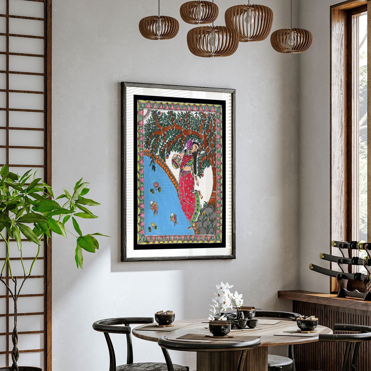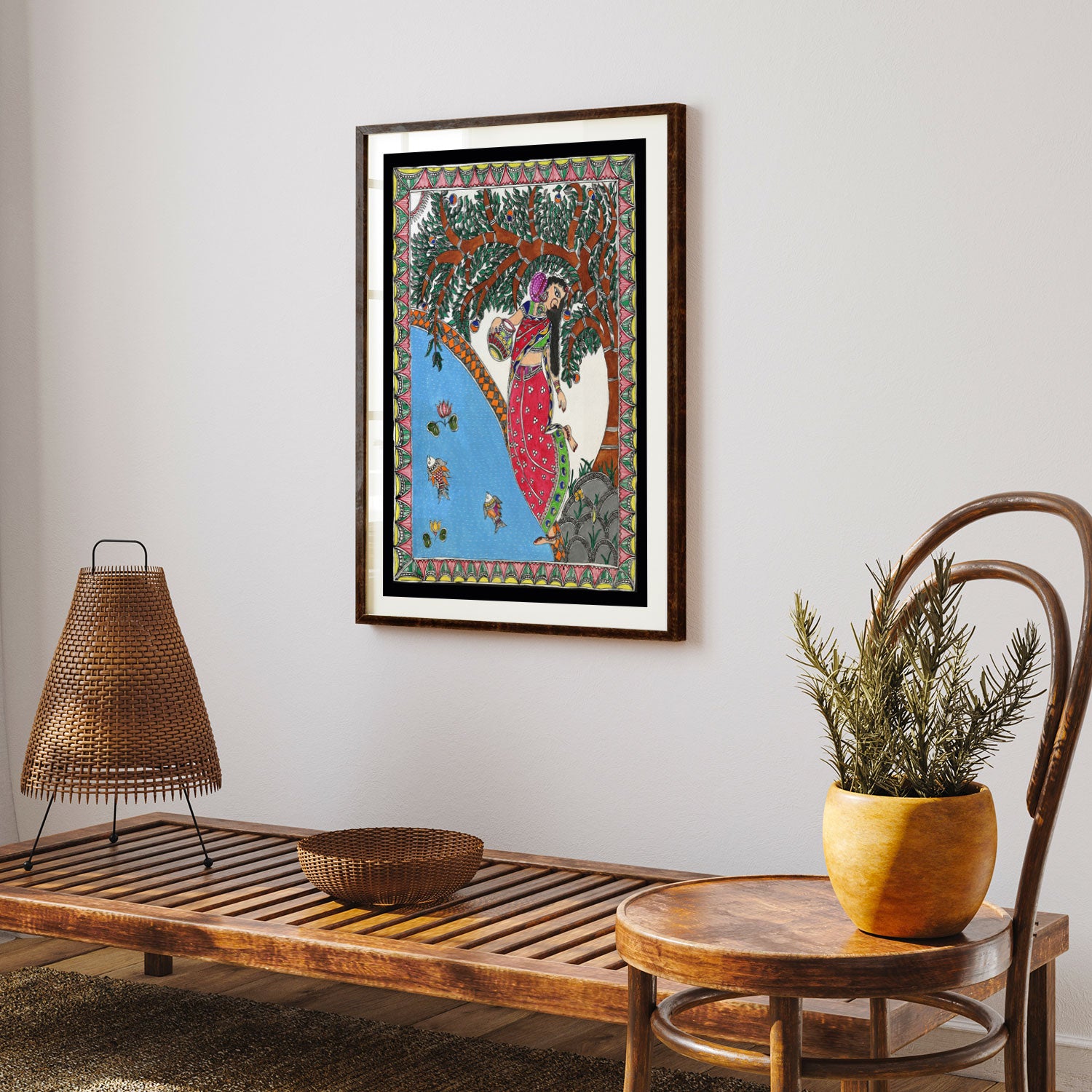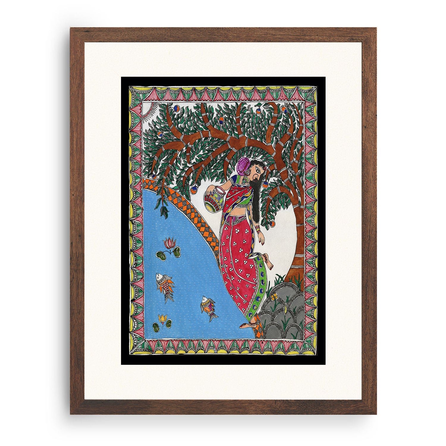 Bagiya - Madhubani Art from the Madhubani Paintings Collection is produced on Premium Museum Grade Canvas and Hahnemuhle Fine Art Media. This beautiful Madhubani Painting Art Print product is made with a matte finish and premium quality with vibrant colors. These Madhubani Miniature Paintings Art Prints are produced with the most extreme shading precision and using the most advanced giclee printing technique in the world. We use the same standard that the various museums and art galleries use across the globe to recreate the Madhubani Miniature Paintings Art Prints. These Madhubani Paintings are perfect for you if you're a Madhubani or Indian Culture Lover or if you want to add a Traditional Look to your space. The vibrancy of colors and the unique detailing of every Madhubani Painting Art Print makes them the best in so many ways. This Madhubani Art Print will add charm to any room in your home. These Madhubani Painting Art Prints can be the perfect gift to your friends, colleagues, or family as they sync in very well in your Bedroom, living room, lobby, Balcony, Bathroom, etc.