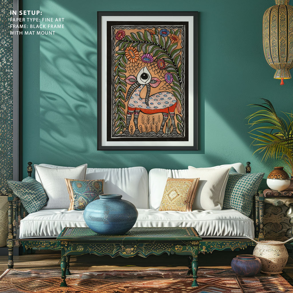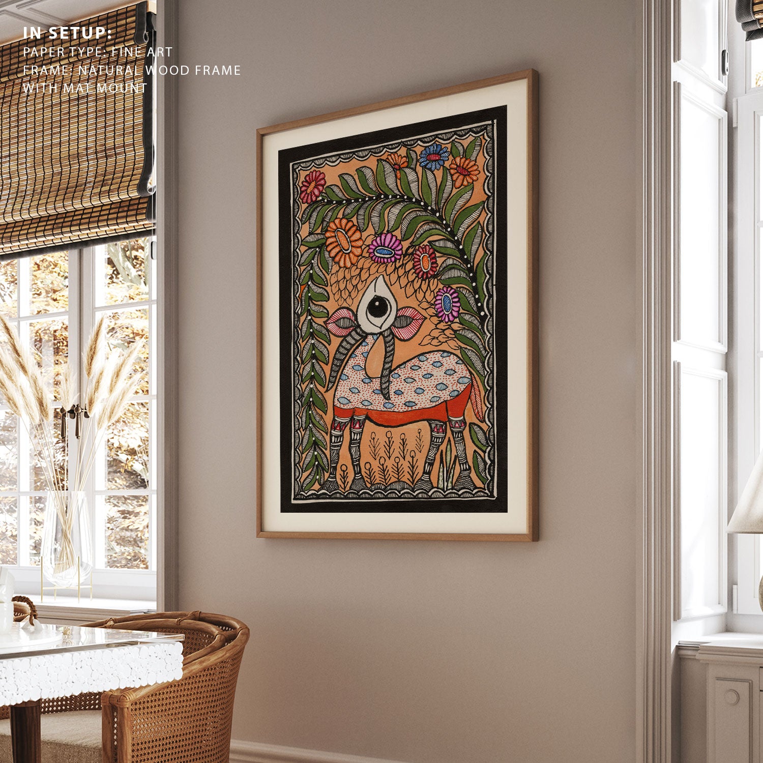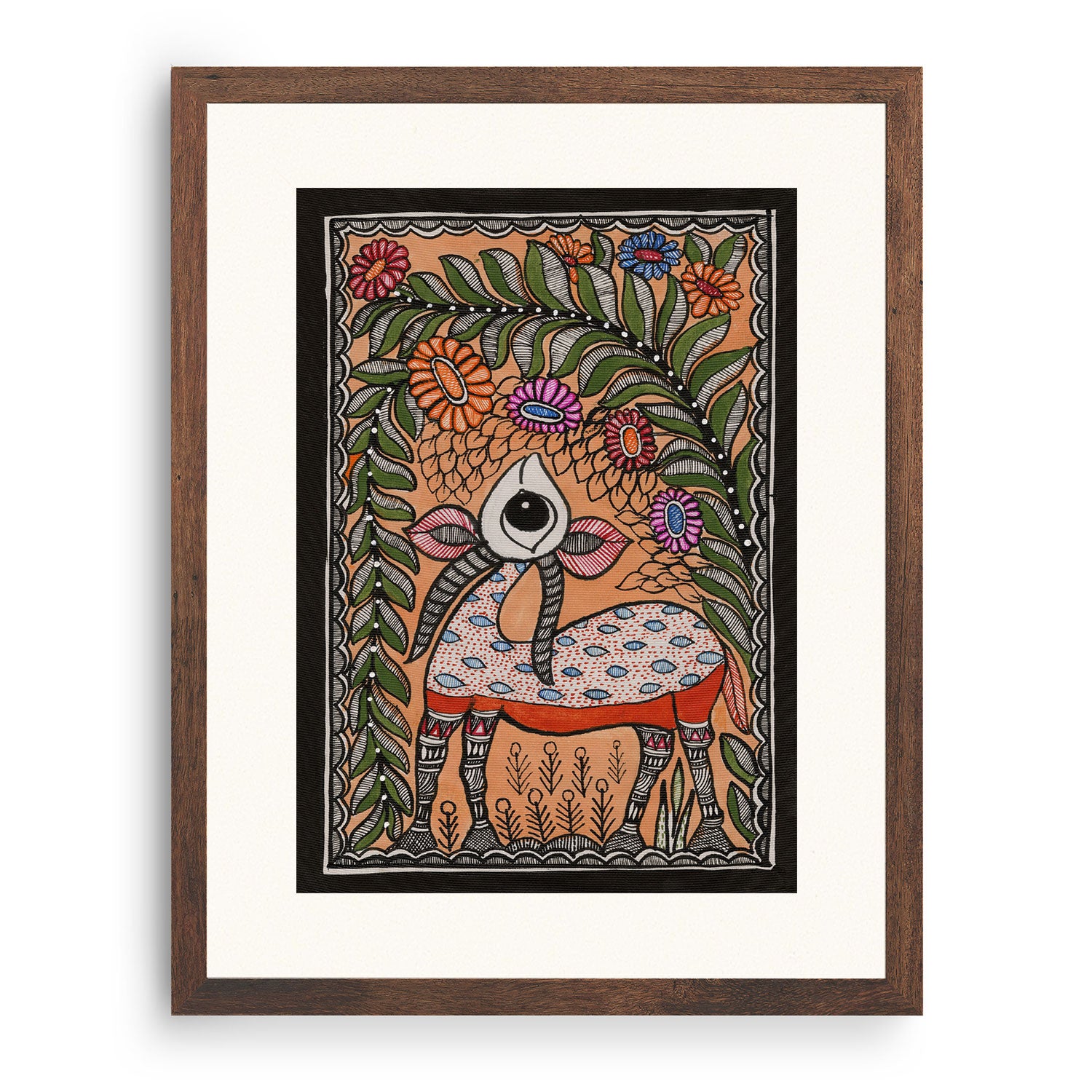 Deer from the Madhubani Paintings Collection is produced on Premium Museum Grade Canvas and Hahnemuhle Fine Art Media. This beautiful Madhubani Painting Art Print product is made with a matte finish and premium quality with vibrant colors. These Madhubani Miniature Paintings Art Prints are produced with the most extreme shading precision and using the most advanced giclee printing technique in the world. We use the same standard that the various museums and art galleries use across the globe to recreate the Madhubani Miniature Paintings Art Prints. These Madhubani Paintings are perfect for you if you're a Madhubani or Indian Culture Lover or if you want to add a Traditional Look to your space. The vibrancy of colors and the unique detailing of every Madhubani Painting Art Print makes them the best in so many ways. This Madhubani Art Print will add charm to any room in your home. These Madhubani Painting Art Prints can be the perfect gift to your friends, colleagues, or family as they sync in very well in your Bedroom, living room, lobby, Balcony, Bathroom, etc.