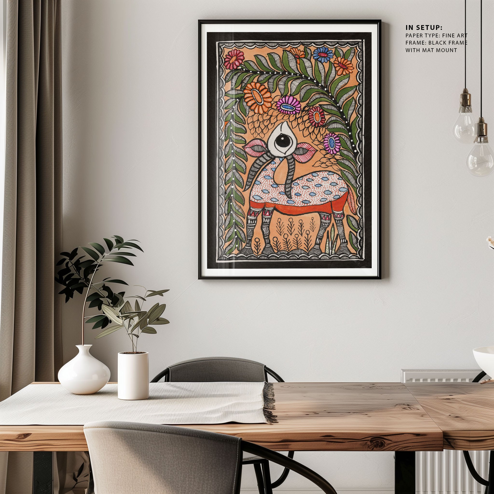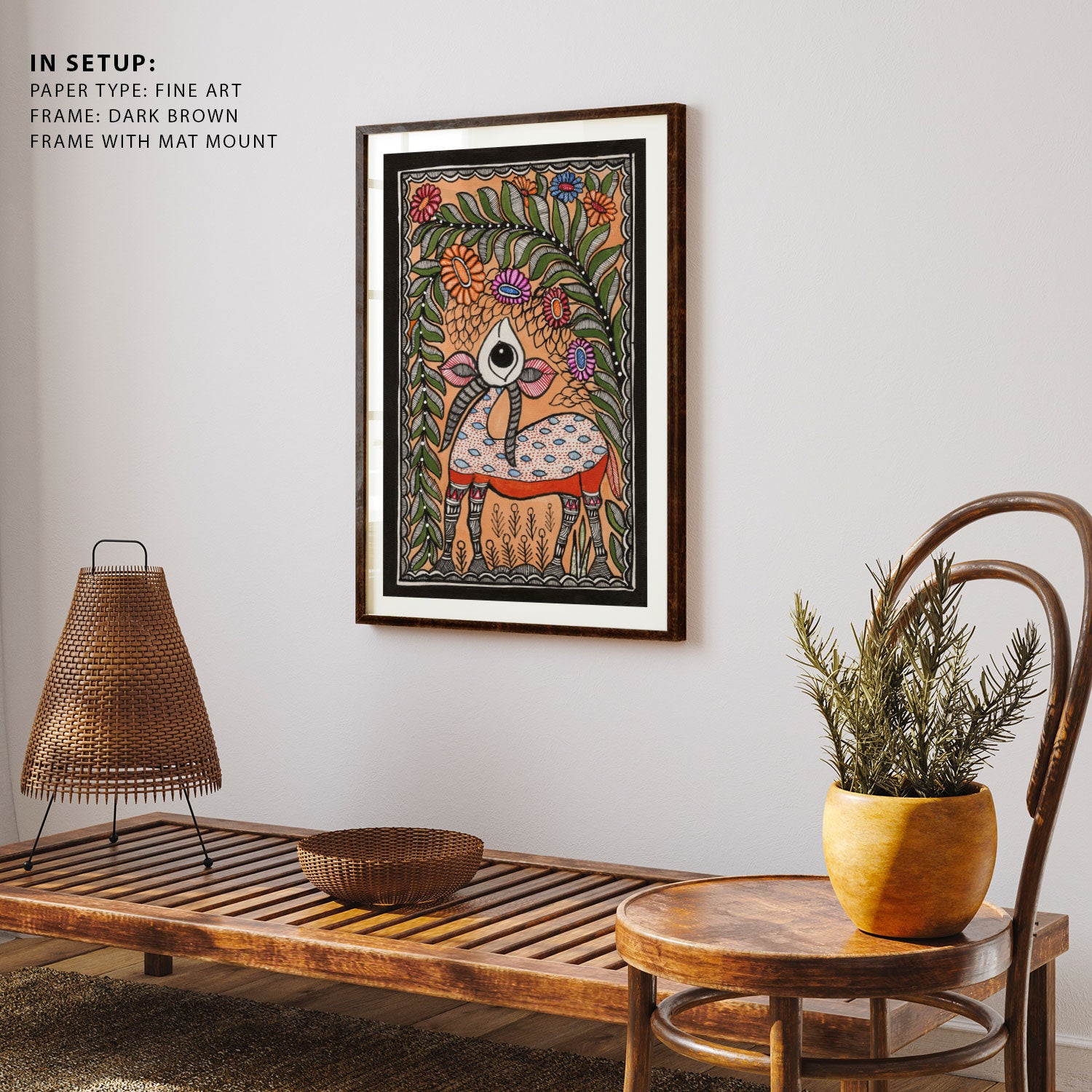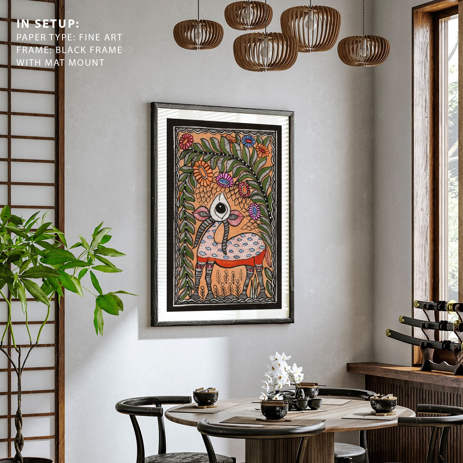 Deer from the Madhubani Paintings Collection is produced on Premium Museum Grade Canvas and Hahnemuhle Fine Art Media. This beautiful Madhubani Painting Art Print product is made with a matte finish and premium quality with vibrant colors. These Madhubani Miniature Paintings Art Prints are produced with the most extreme shading precision and using the most advanced giclee printing technique in the world. We use the same standard that the various museums and art galleries use across the globe to recreate the Madhubani Miniature Paintings Art Prints. These Madhubani Paintings are perfect for you if you're a Madhubani or Indian Culture Lover or if you want to add a Traditional Look to your space. The vibrancy of colors and the unique detailing of every Madhubani Painting Art Print makes them the best in so many ways. This Madhubani Art Print will add charm to any room in your home. These Madhubani Painting Art Prints can be the perfect gift to your friends, colleagues, or family as they sync in very well in your Bedroom, living room, lobby, Balcony, Bathroom, etc.