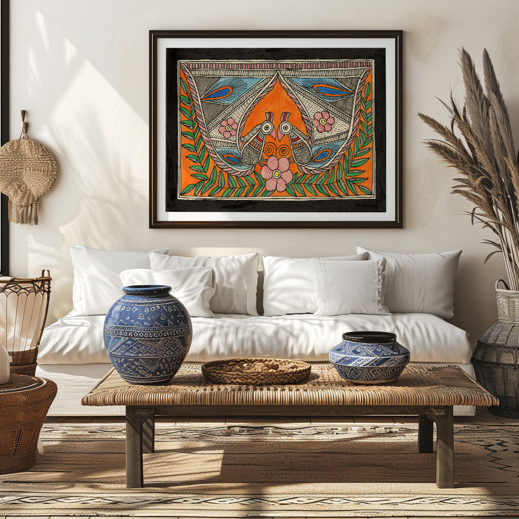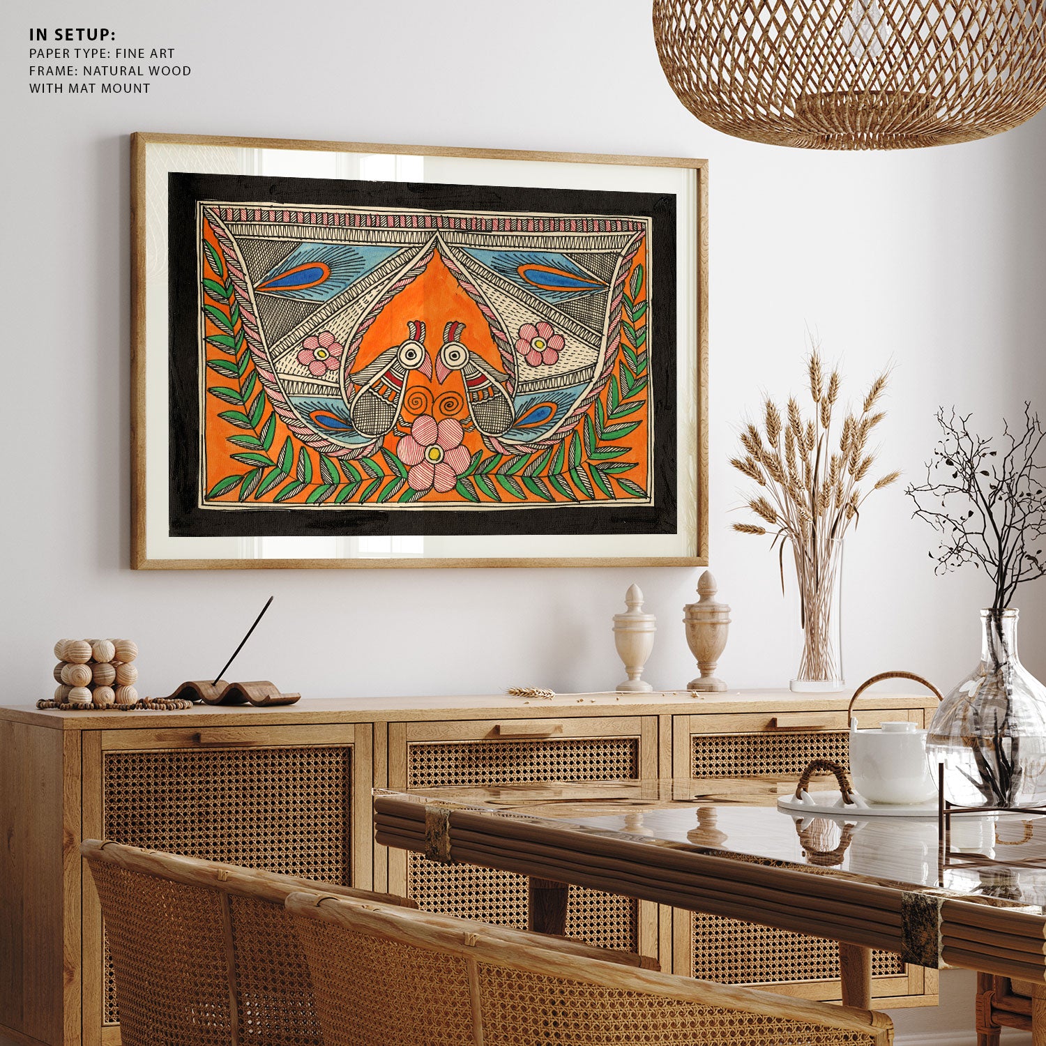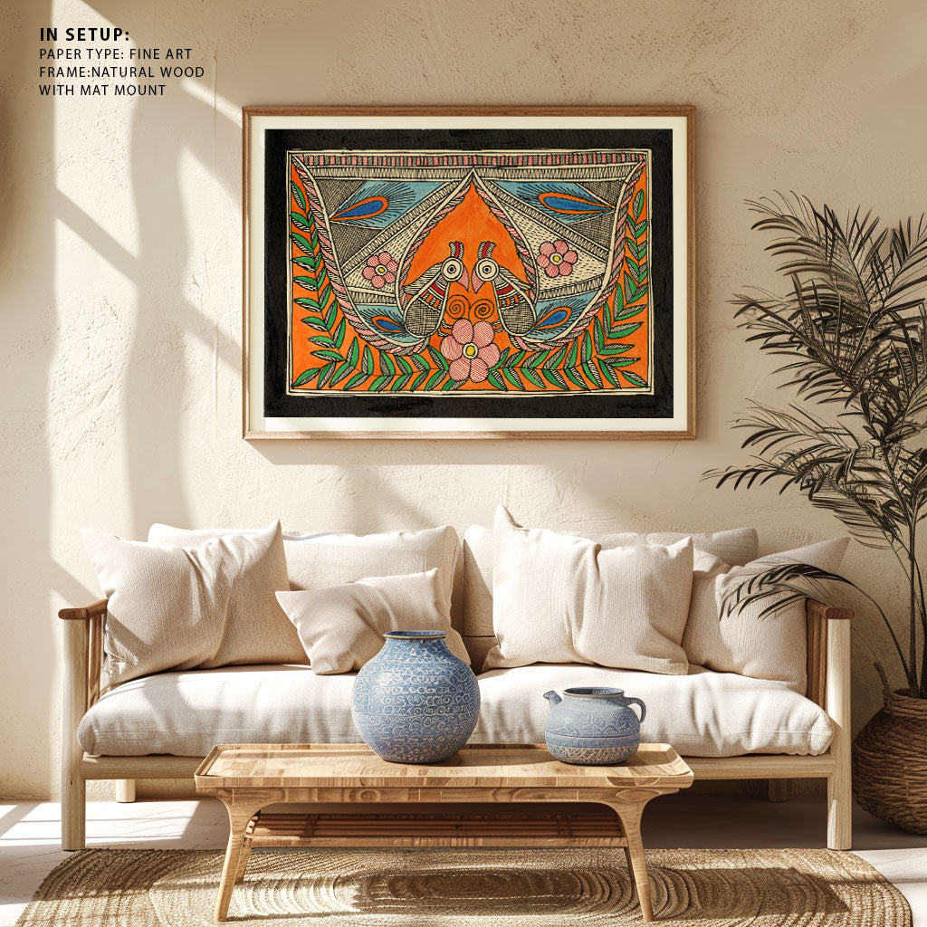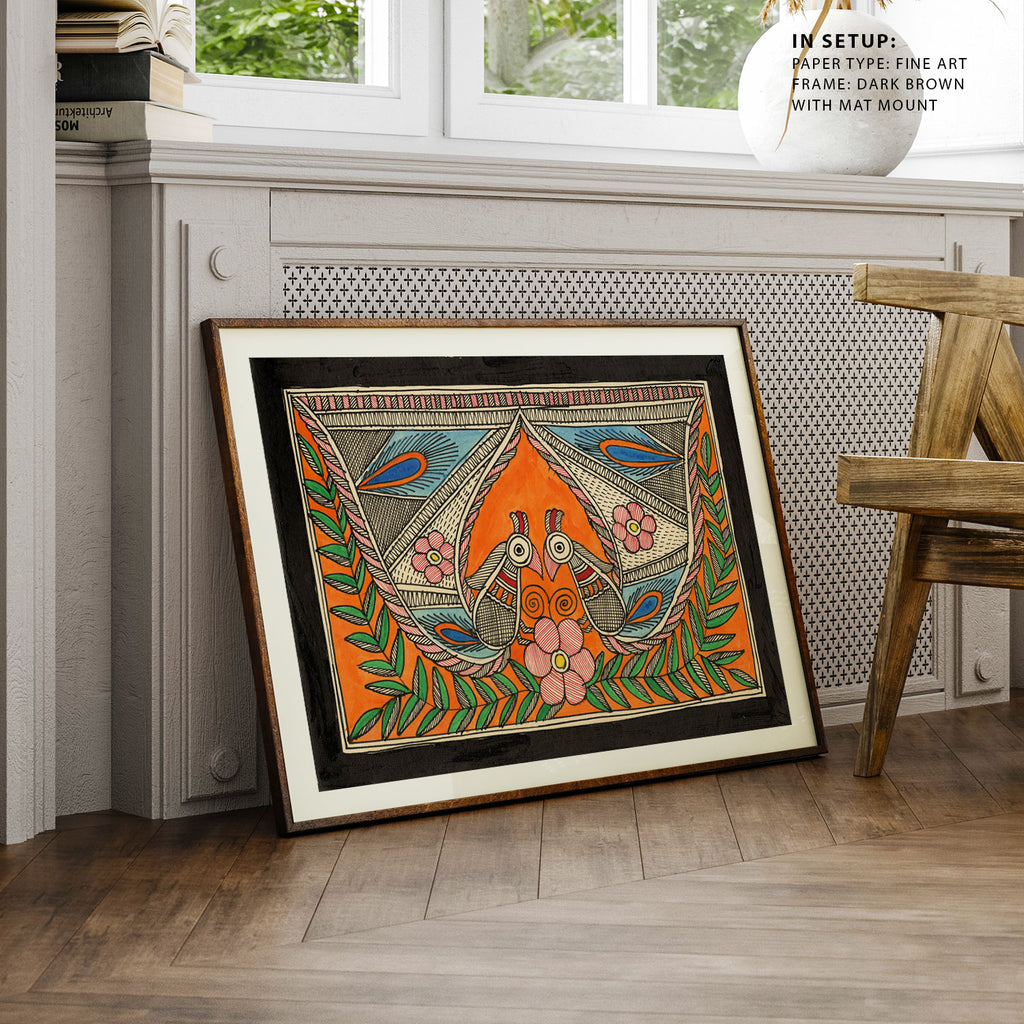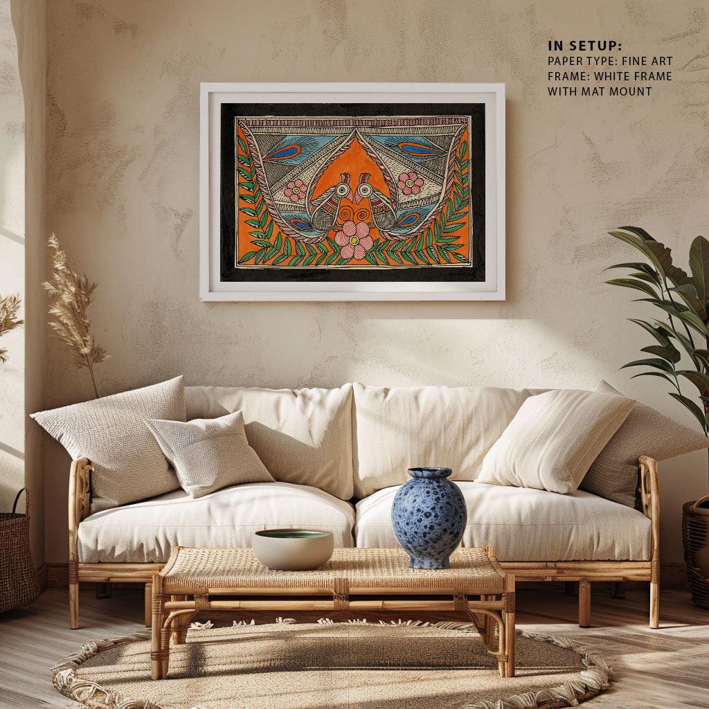 Madhubani Art Peacock Painting from the Madhubani Paintings Collection is produced on Premium Museum Grade Canvas and Hahnemuhle Fine Art Media. This beautiful Madhubani Painting Art Print product is made with a matte finish and premium quality with vibrant colors. These Madhubani Miniature Paintings Art Prints are produced with the most extreme shading precision and using the most advanced giclee printing technique in the world. We use the same standard that the various museums and art galleries use across the globe to recreate the Madhubani Miniature Paintings Art Prints. These Madhubani Paintings are perfect for you if you're a Madhubani or Indian Culture Lover or if you want to add a Traditional Look to your space. The vibrancy of colors and the unique detailing of every Madhubani Painting Art Print makes them the best in so many ways. This Madhubani Art Print will add charm to any room in your home. These Madhubani Painting Art Prints can be the perfect gift to your friends, colleagues, or family as they sync in very well in your Bedroom, living room, lobby, Balcony, Bathroom, etc.