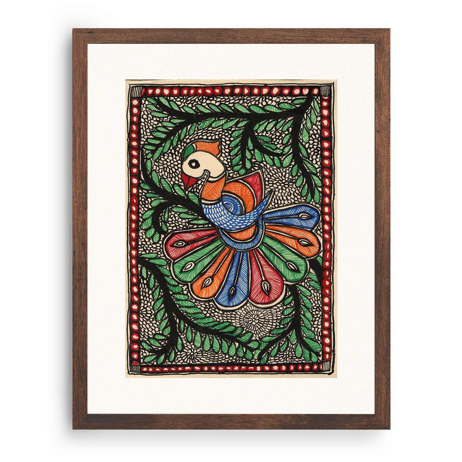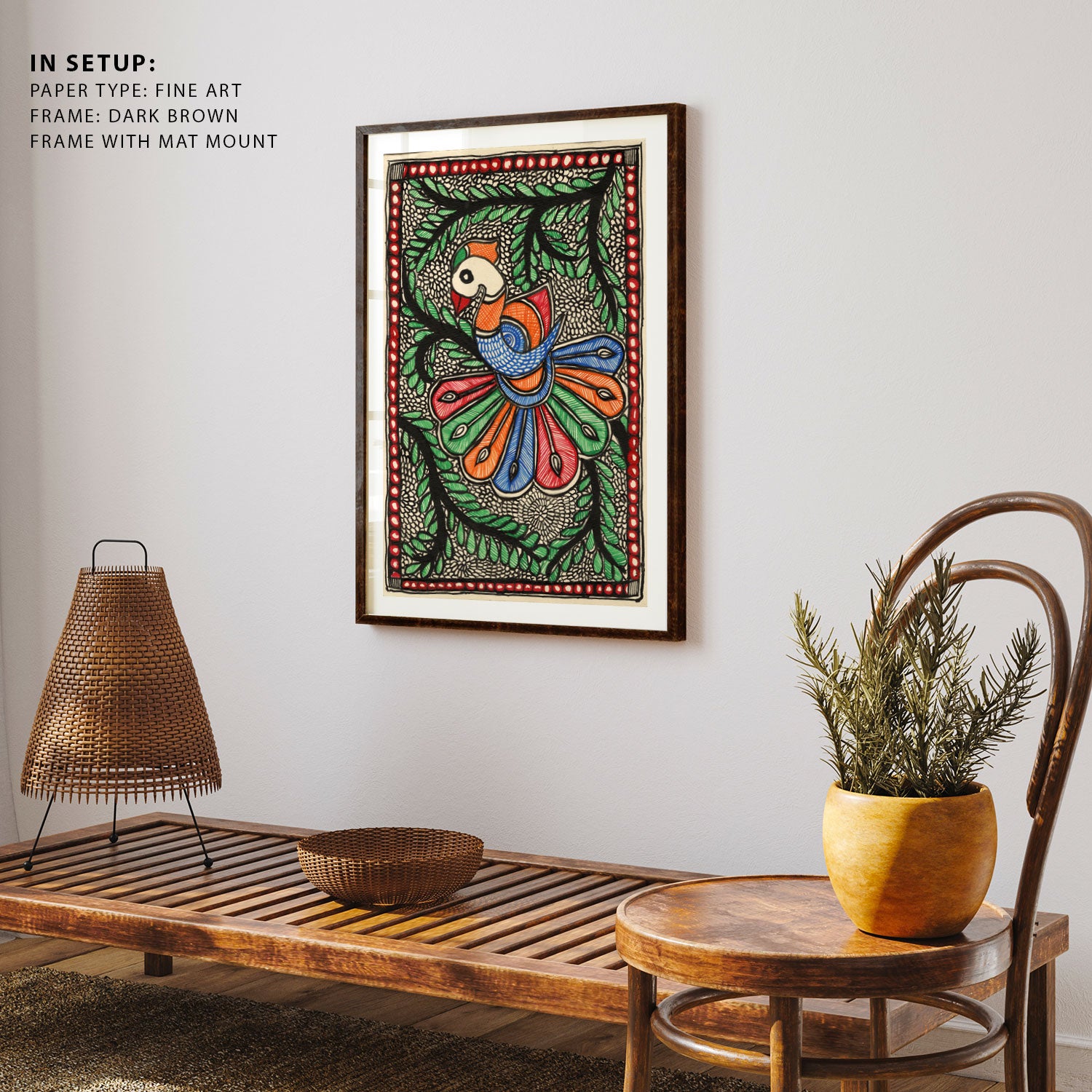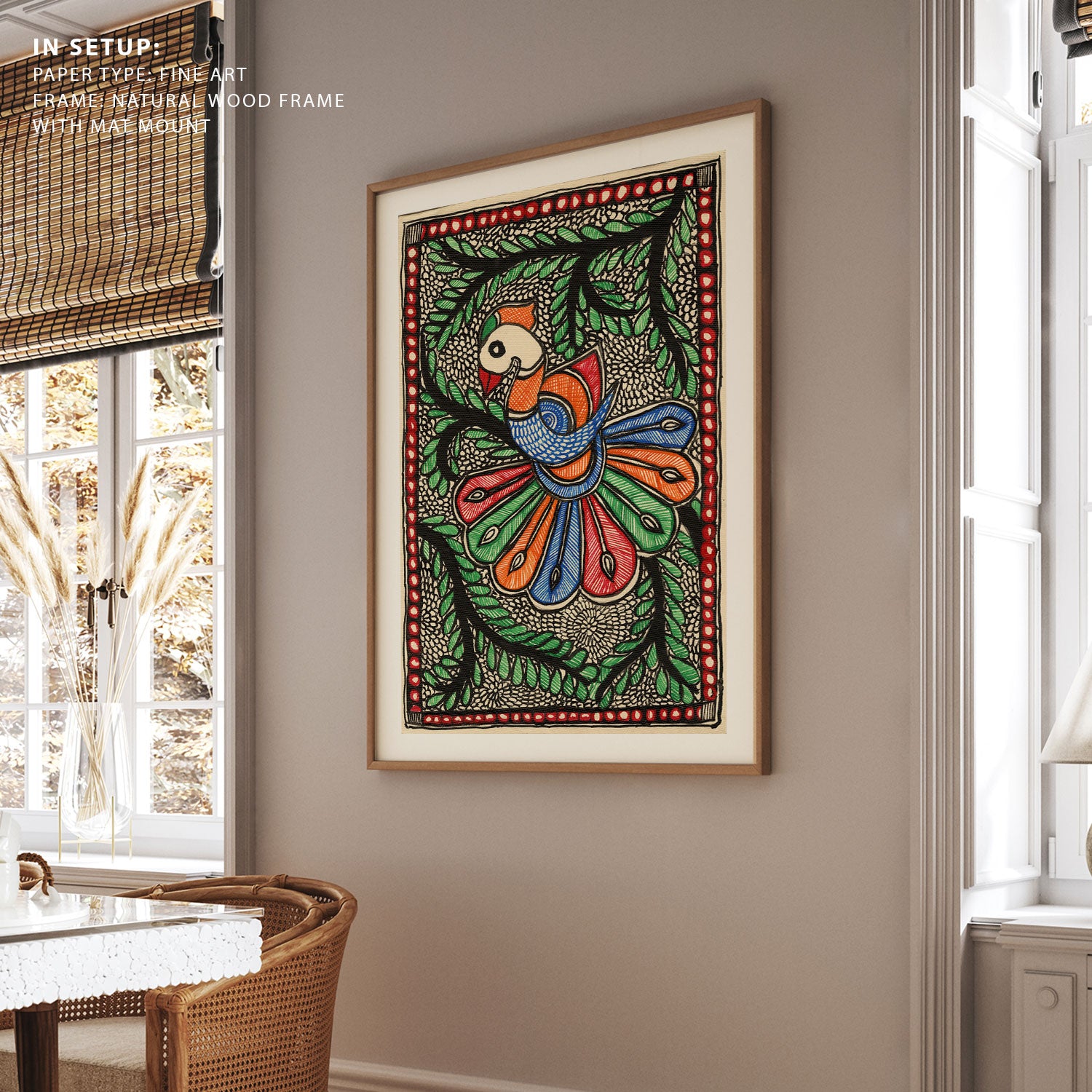 Madhubani Art Traditional Peacock from the Madhubani Paintings Collection is produced on Premium Museum Grade Canvas and Hahnemuhle Fine Art Media. This beautiful Madhubani Painting Art Print product is made with a matte finish and premium quality with vibrant colors. These Madhubani Miniature Paintings Art Prints are produced with the most extreme shading precision and using the most advanced giclee printing technique in the world. We use the same standard that the various museums and art galleries use across the globe to recreate the Madhubani Miniature Paintings Art Prints. These Madhubani Paintings are perfect for you if you're a Madhubani or Indian Culture Lover or if you want to add a Traditional Look to your space. The vibrancy of colors and the unique detailing of every Madhubani Painting Art Print makes them the best in so many ways. This Madhubani Art Print will add charm to any room in your home. These Madhubani Painting Art Prints can be the perfect gift to your friends, colleagues, or family as they sync in very well in your Bedroom, living room, lobby, Balcony, Bathroom, etc.