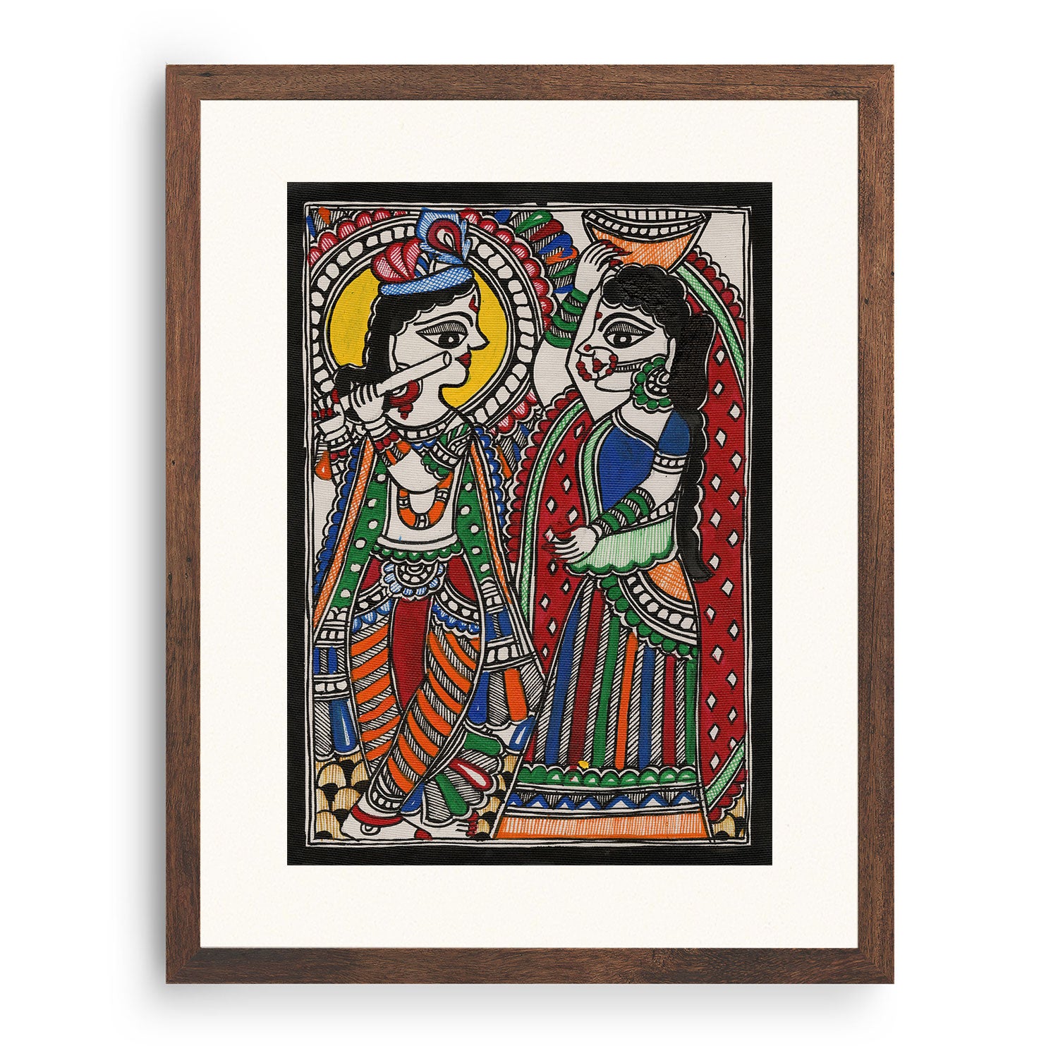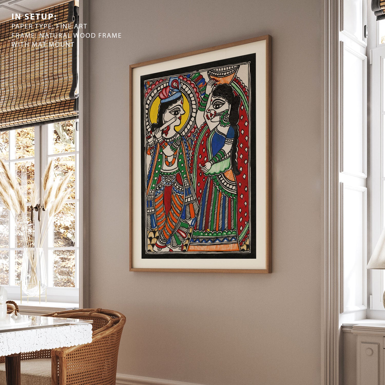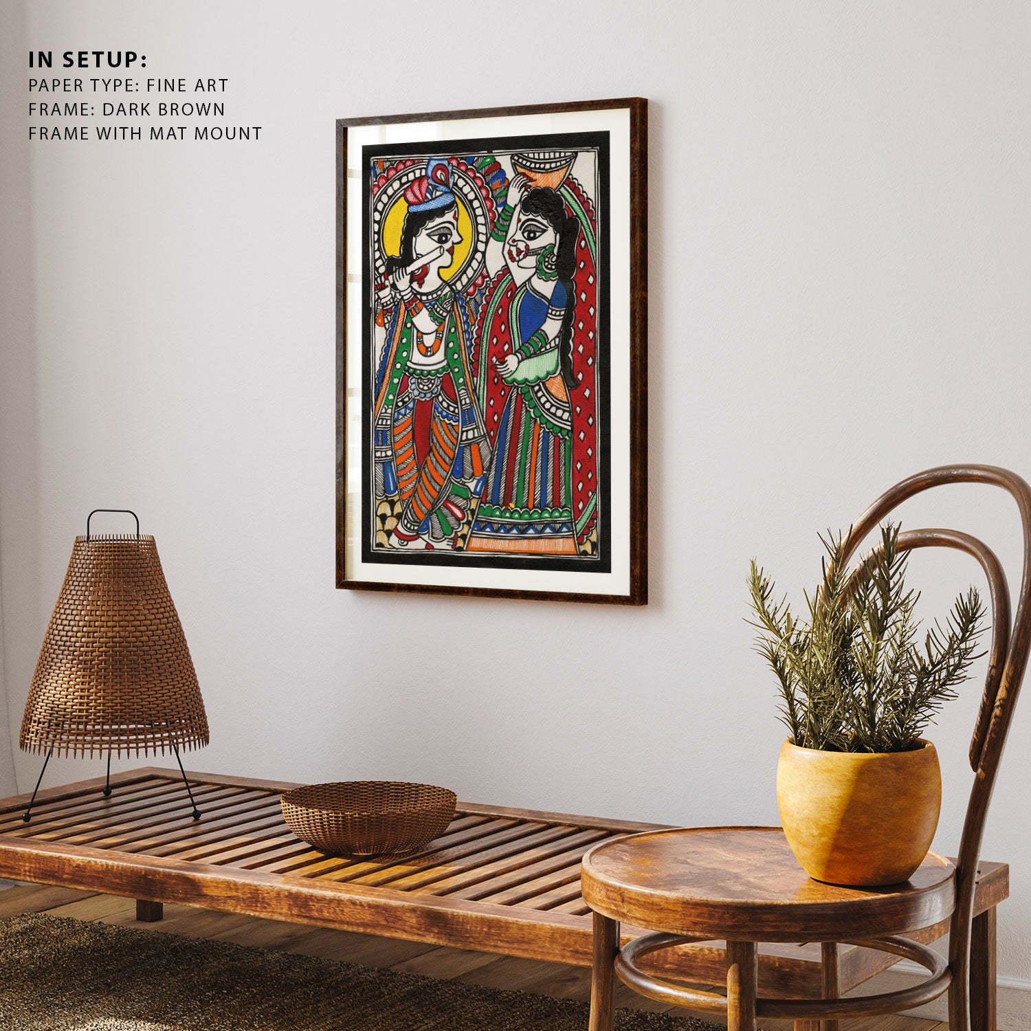 Madhubani Art Traditional Radha Krishna from the Madhubani Paintings Collection is produced on Premium Museum Grade Canvas and Hahnemuhle Fine Art Media. This beautiful Madhubani Painting Art Print product is made with a matte finish and premium quality with vibrant colors. These Madhubani Miniature Paintings Art Prints are produced with the most extreme shading precision and using the most advanced giclee printing technique in the world. We use the same standard that the various museums and art galleries use across the globe to recreate the Madhubani Miniature Paintings Art Prints. These Madhubani Paintings are perfect for you if you're a Madhubani or Indian Culture Lover or if you want to add a Traditional Look to your space. The vibrancy of colors and the unique detailing of every Madhubani Painting Art Print makes them the best in so many ways. This Madhubani Art Print will add charm to any room in your home. These Madhubani Painting Art Prints can be the perfect gift to your friends, colleagues, or family as they sync in very well in your Bedroom, living room, lobby, Balcony, Bathroom, etc.