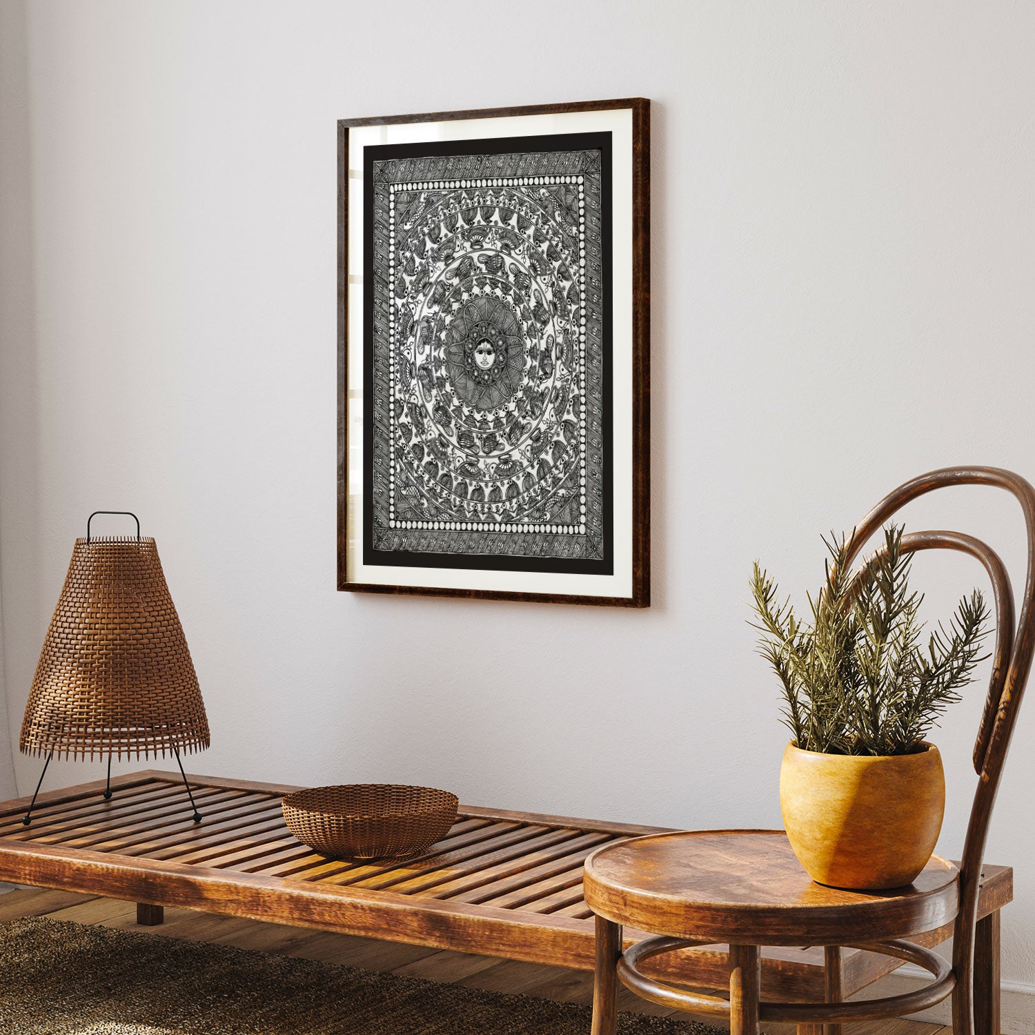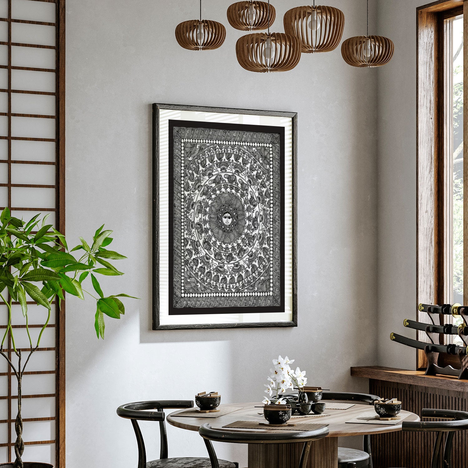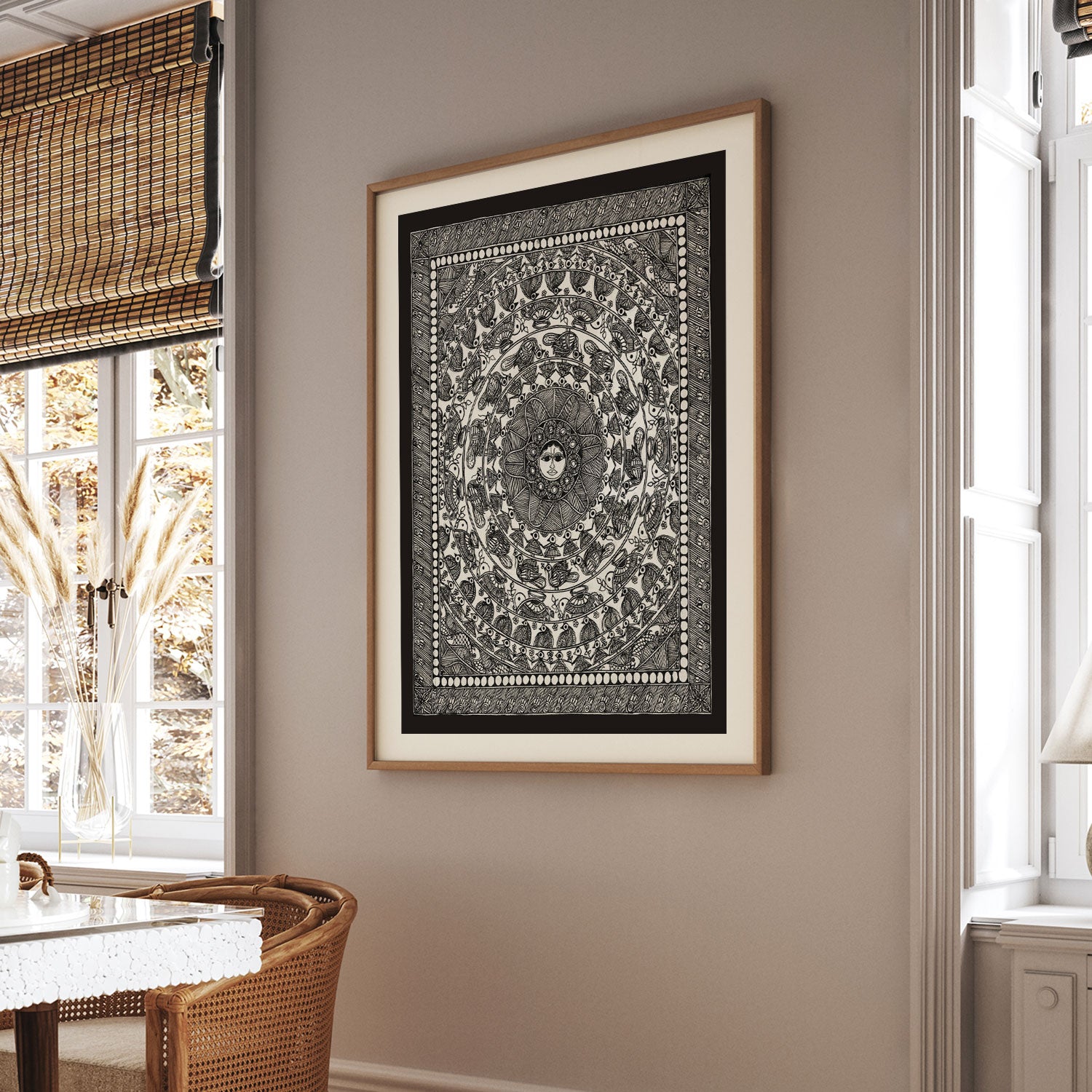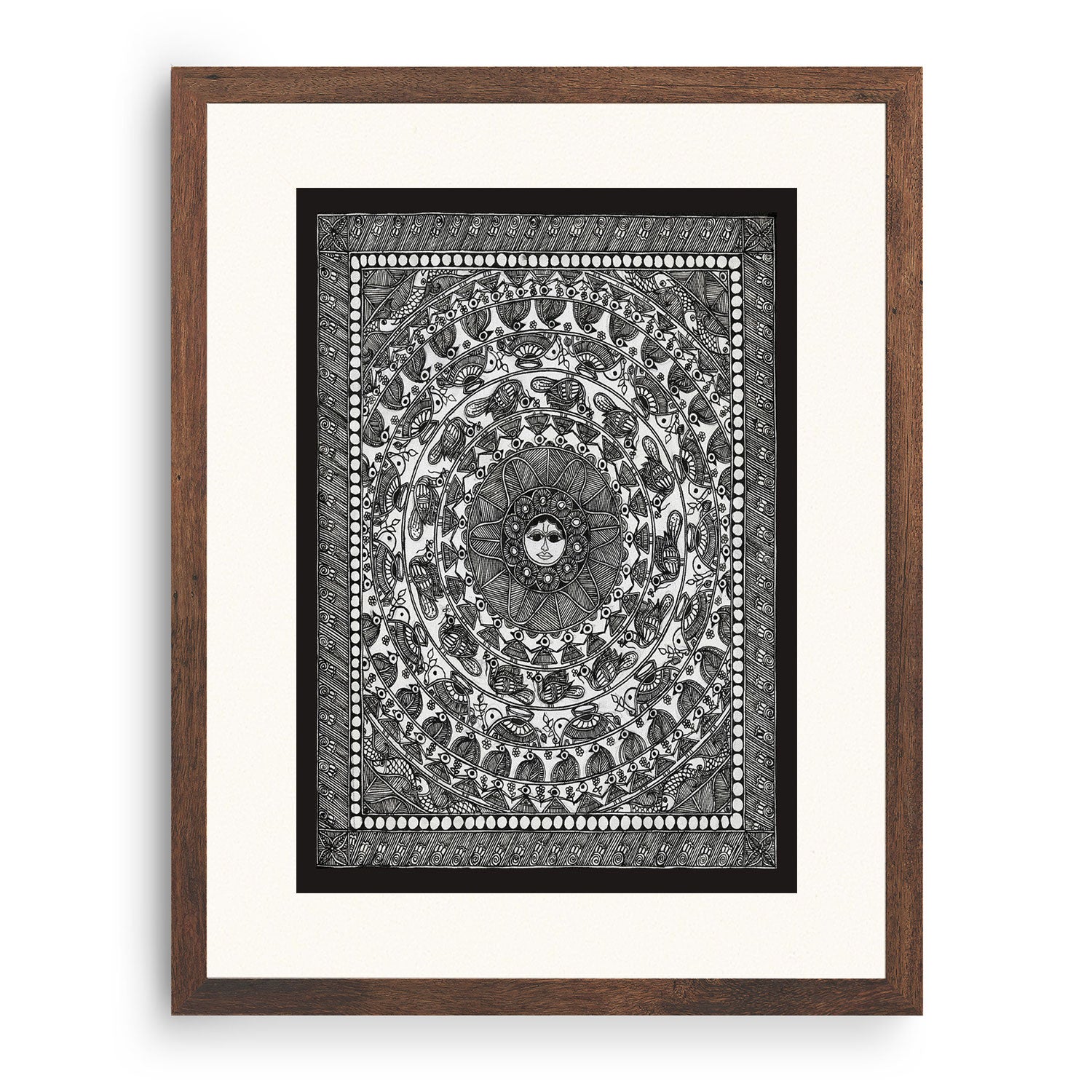 Surya Mandala - Madhubani Art from the Madhubani Paintings Collection is produced on Premium Museum Grade Canvas and Hahnemuhle Fine Art Media. This beautiful Madhubani Painting Art Print product is made with a matte finish and premium quality with vibrant colors. These Madhubani Miniature Paintings Art Prints are produced with the most extreme shading precision and using the most advanced giclee printing technique in the world. We use the same standard that the various museums and art galleries use across the globe to recreate the Madhubani Miniature Paintings Art Prints. These Madhubani Paintings are perfect for you if you're a Madhubani or Indian Culture Lover or if you want to add a Traditional Look to your space. The vibrancy of colors and the unique detailing of every Madhubani Painting Art Print makes them the best in so many ways. This Madhubani Art Print will add charm to any room in your home. These Madhubani Painting Art Prints can be the perfect gift to your friends, colleagues, or family as they sync in very well in your Bedroom, living room, lobby, Balcony, Bathroom, etc.