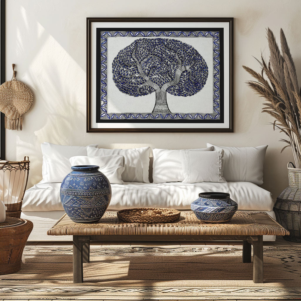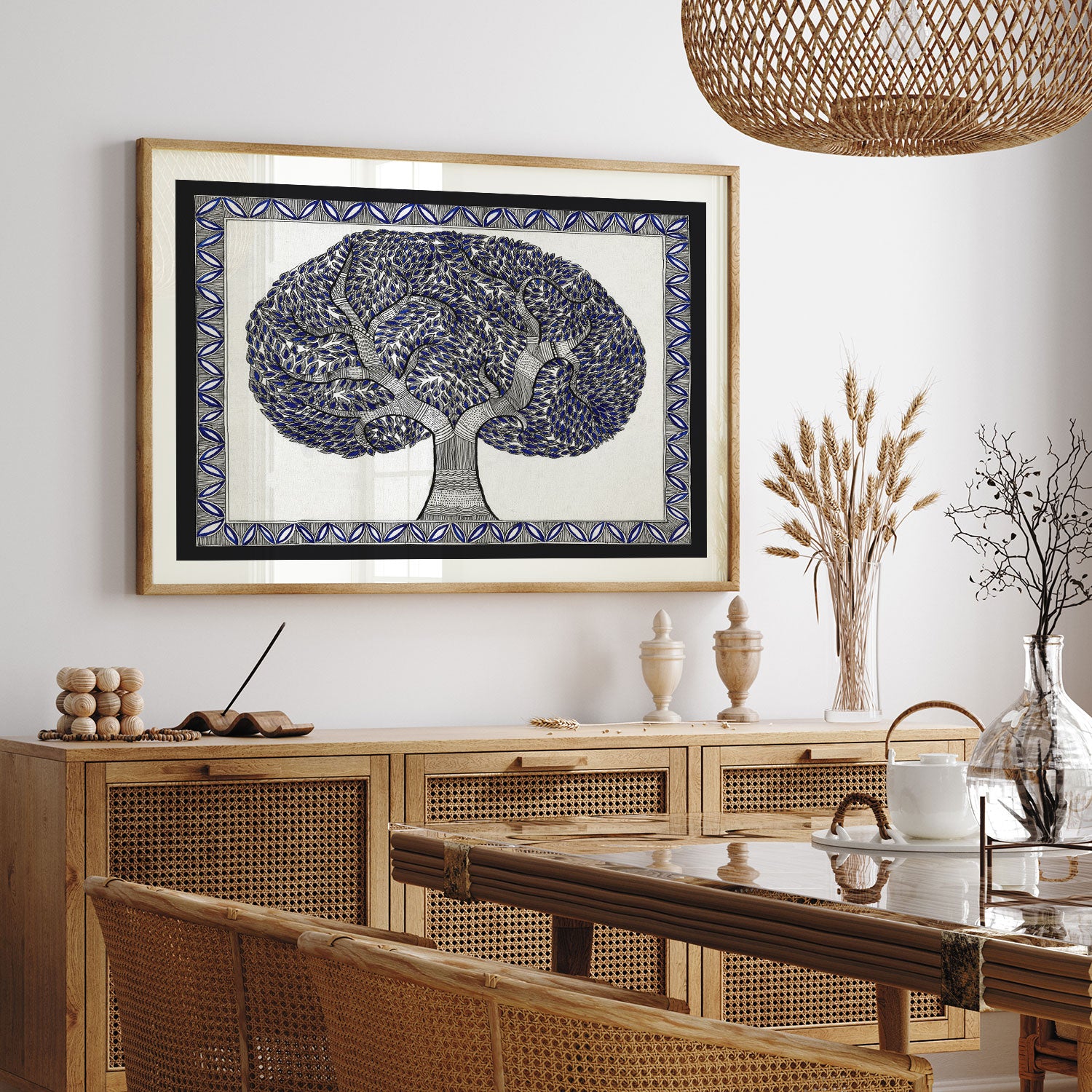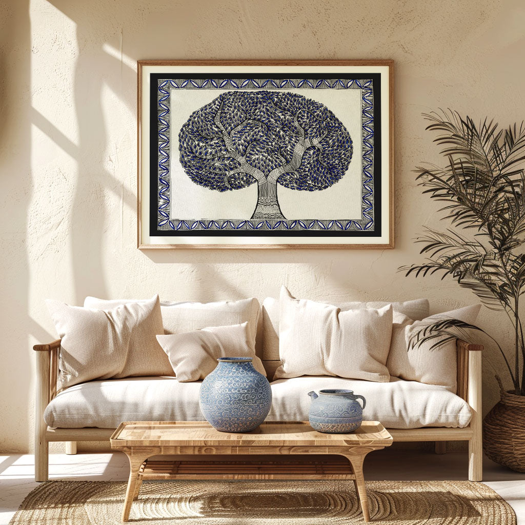 Tree of Life - Mithila Madhubani Art from the Madhubani Paintings Collection is produced on Premium Museum Grade Canvas and Hahnemuhle Fine Art Media. This beautiful Madhubani Painting Art Print product is made with a matte finish and premium quality with vibrant colors. These Madhubani Miniature Paintings Art Prints are produced with the most extreme shading precision and using the most advanced giclee printing technique in the world. We use the same standard that the various museums and art galleries use across the globe to recreate the Madhubani Miniature Paintings Art Prints. These Madhubani Paintings are perfect for you if you're a Madhubani or Indian Culture Lover or if you want to add a Traditional Look to your space. The vibrancy of colors and the unique detailing of every Madhubani Painting Art Print makes them the best in so many ways. This Madhubani Art Print will add charm to any room in your home. These Madhubani Painting Art Prints can be the perfect gift to your friends, colleagues, or family as they sync in very well in your Bedroom, living room, lobby, Balcony, Bathroom, etc.