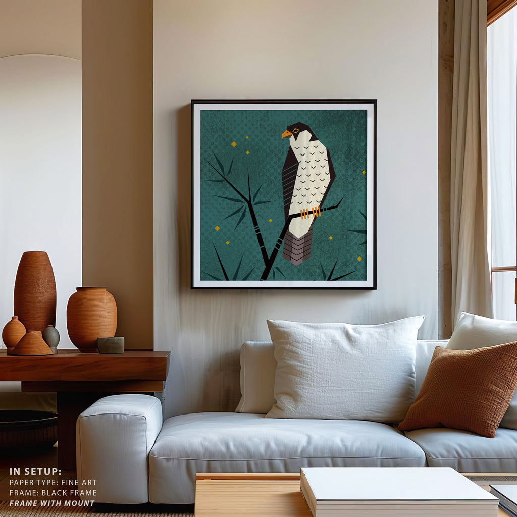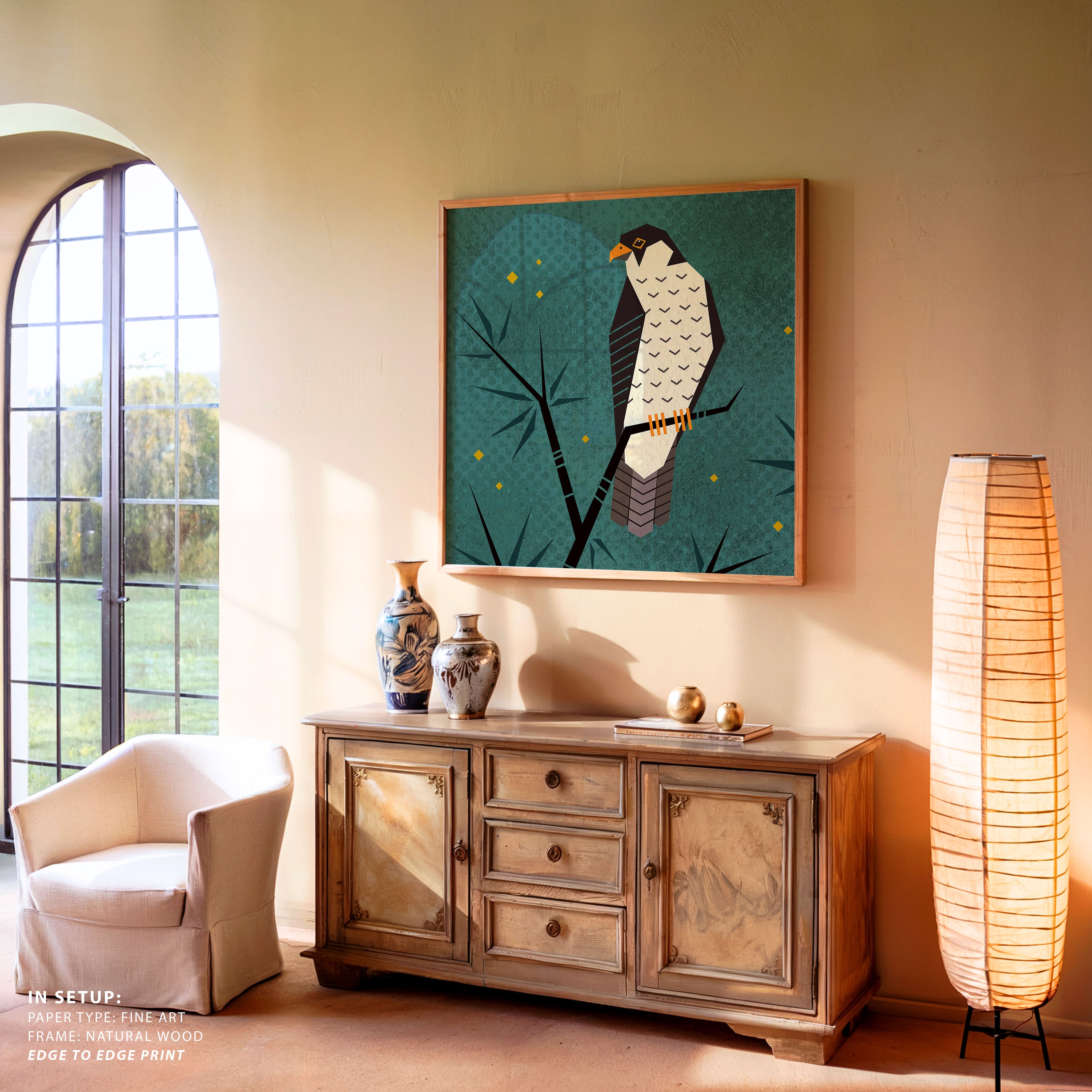 Bird Series - Geometry Falcon from the Fine Art Paintings Collection is produced on Premium Museum Grade Canvas and Hahnemuhle Fine Art Media. This beautiful Fine Art Painting product is made with matte finish and premium quality with vibrant colors. This Art Painting is created by leading contemporary artist, Rohan Dahotre and is reproduced with the most extreme shading precision using the world’s most advanced giclée printing technique. We use the same standard that the various museums and art galleries use across the globe to recreate the Paintings. These Wall Art Paintings are perfect for you if you're a Modern, Minimalist, and Contemporary Art Lover or if you want to add an artistic look to your space. The vibrancy of colors and the unique brushstroke detailing of every Painting makes them stand out in so many ways. This Wall Art Painting will add charm to any room in your home. This Beautiful Artwork can also be the perfect gift to your friends, colleagues or family as they sync in very well in your Bedroom, Living Room, Lobby, Balcony, Bathroom etc.