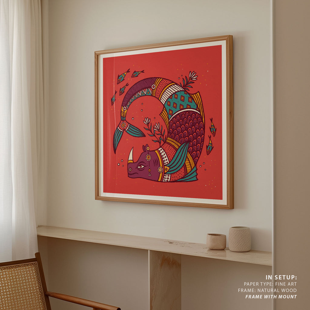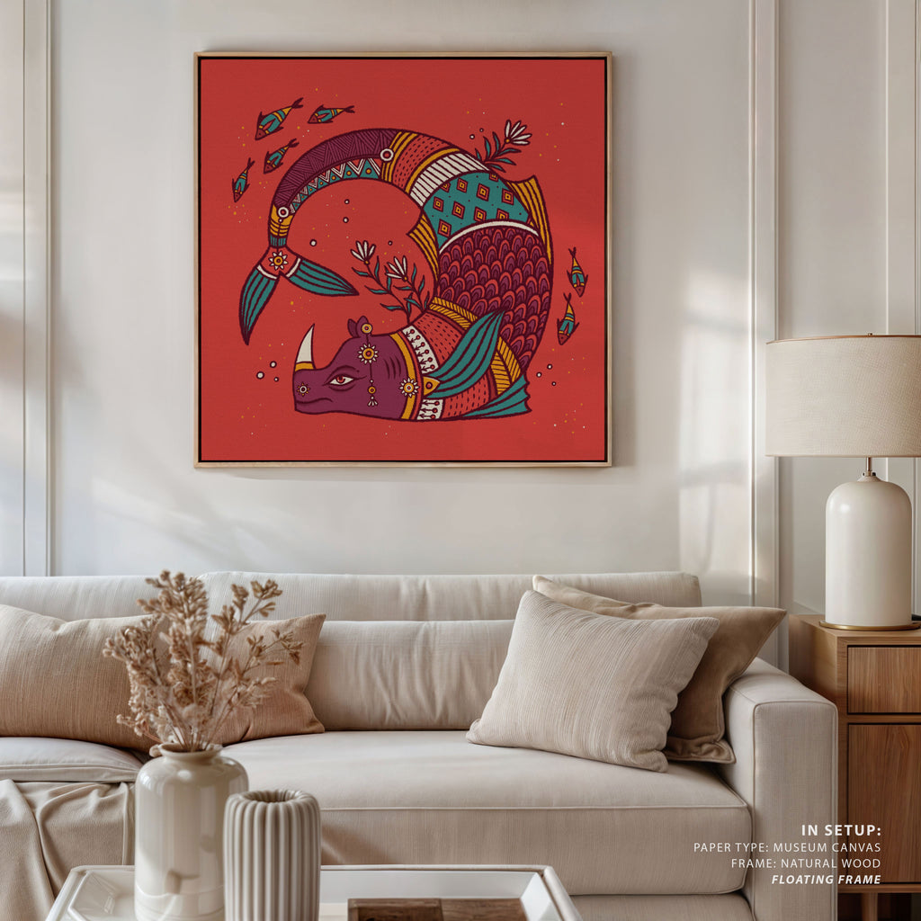 Mermaid - Rhino from the Fine Art Paintings Collection is produced on Premium Museum Grade Canvas and Hahnemuhle Fine Art Media. This beautiful Fine Art Painting product is made with matte finish and premium quality with vibrant colors. This Art Painting is created by leading contemporary artist, Rohan Dahotre and is reproduced with the most extreme shading precision using the world’s most advanced giclée printing technique. We use the same standard that the various museums and art galleries use across the globe to recreate the Paintings. These Wall Art Paintings are perfect for you if you're a Modern, Minimalist, and Contemporary Art Lover or if you want to add an artistic look to your space. The vibrancy of colors and the unique brushstroke detailing of every Painting makes them stand out in so many ways. This Wall Art Painting will add charm to any room in your home. This Beautiful Artwork can also be the perfect gift to your friends, colleagues or family as they sync in very well in your Bedroom, Living Room, Lobby, Balcony, Bathroom etc.
