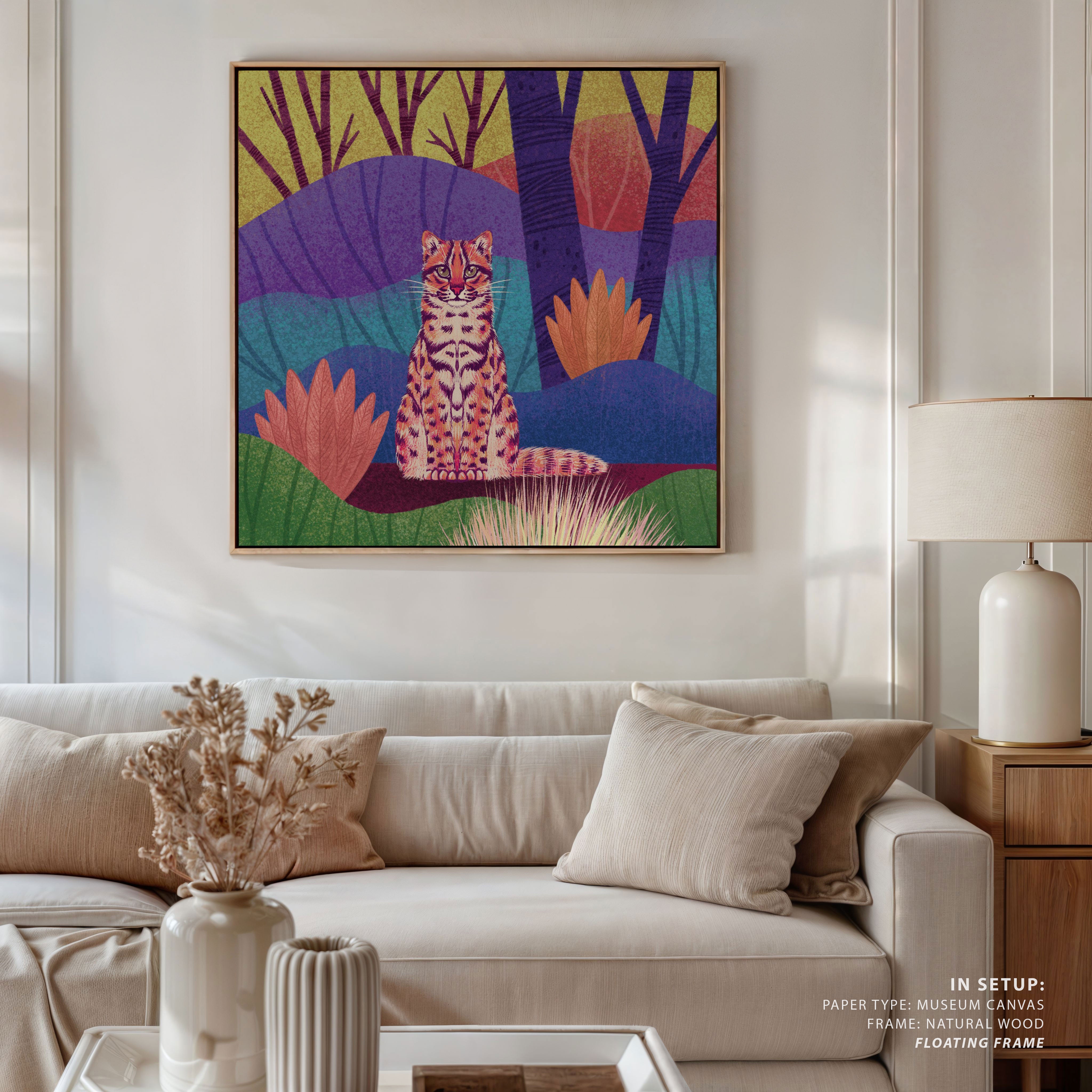 Wild Cat - Leopard Cat from the Fine Art Paintings Collection is produced on Premium Museum Grade Canvas and Hahnemuhle Fine Art Media. This beautiful Fine Art Painting product is made with matte finish and premium quality with vibrant colors. This Art Painting is created by leading contemporary artist, Rohan Dahotre and is reproduced with the most extreme shading precision using the world’s most advanced giclée printing technique. We use the same standard that the various museums and art galleries use across the globe to recreate the Paintings. These Wall Art Paintings are perfect for you if you're a Modern, Minimalist, and Contemporary Art Lover or if you want to add an artistic look to your space. The vibrancy of colors and the unique brushstroke detailing of every Painting makes them stand out in so many ways. This Wall Art Painting will add charm to any room in your home. This Beautiful Artwork can also be the perfect gift to your friends, colleagues or family as they sync in very well in your Bedroom, Living Room, Lobby, Balcony, Bathroom etc.