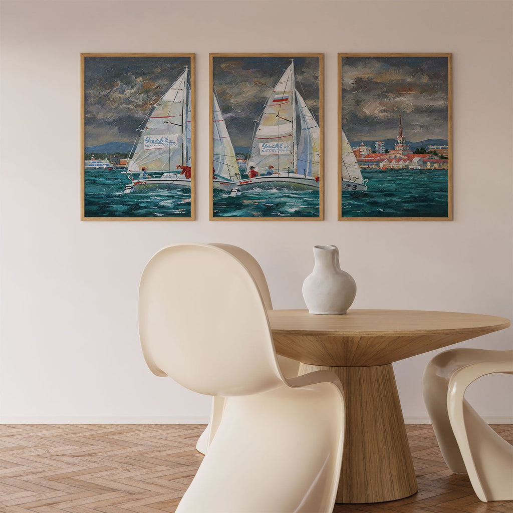 Racing yachts in the Black Sea, Set of 3, Set of Three Paintings