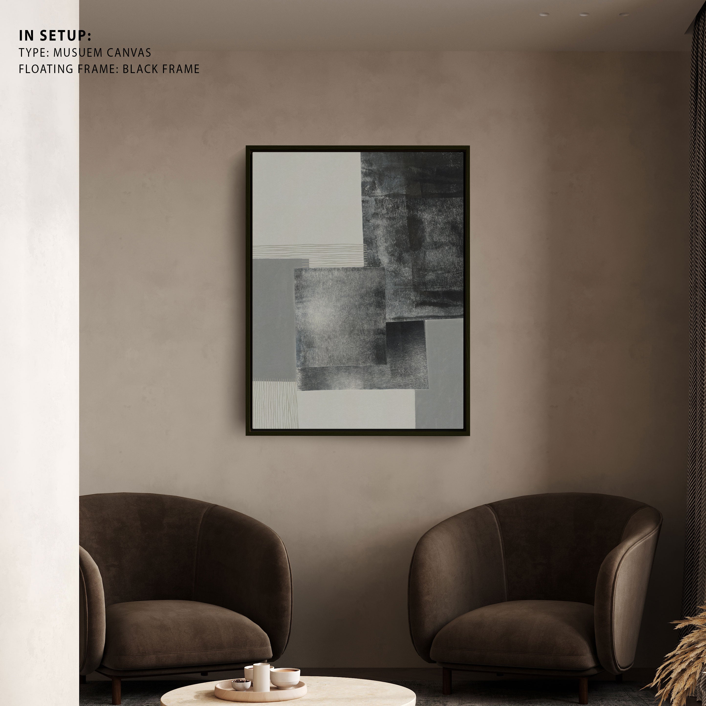Whereas, there is no mat mount in canvas. And also in Minimalist Art, Set of 3 Collection. There is no Mat Mount.