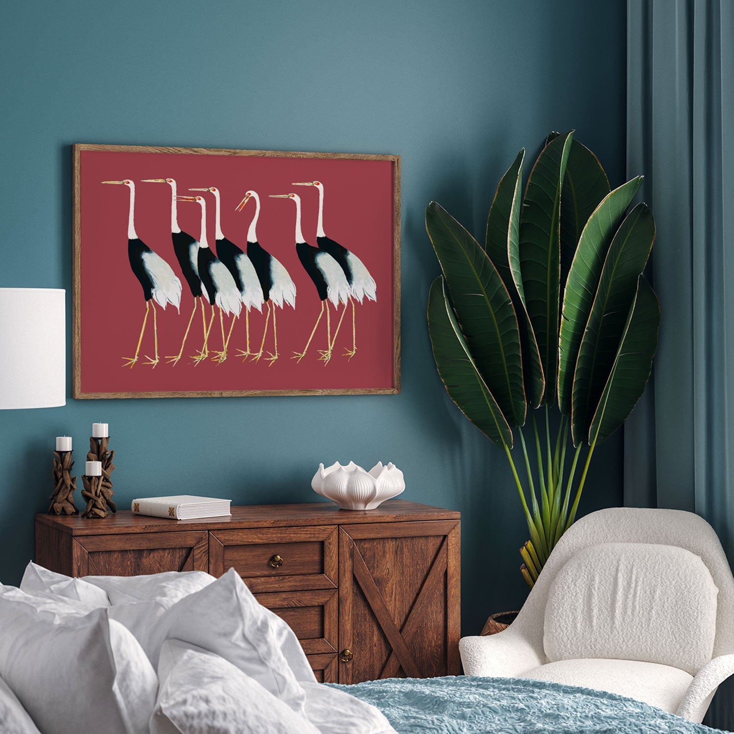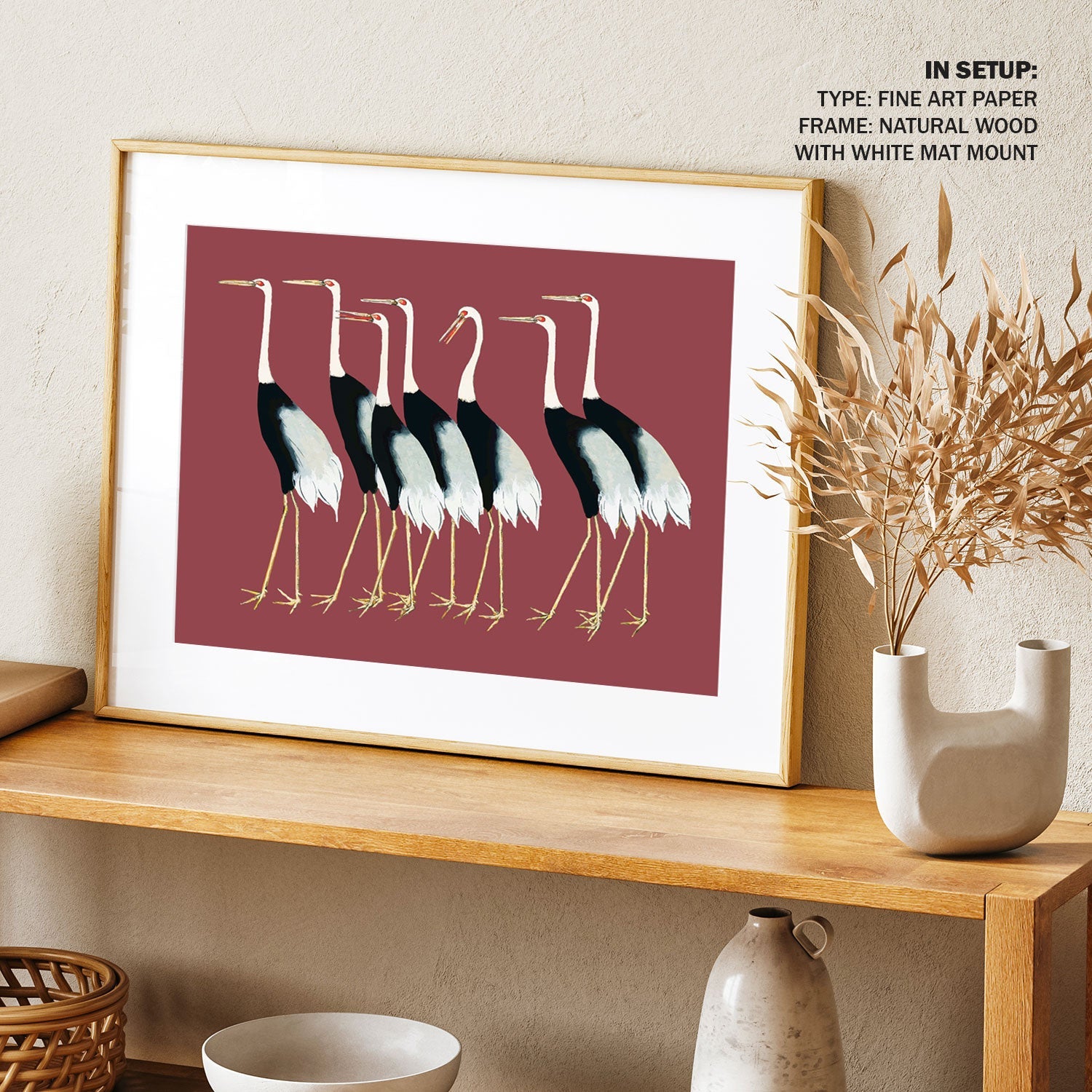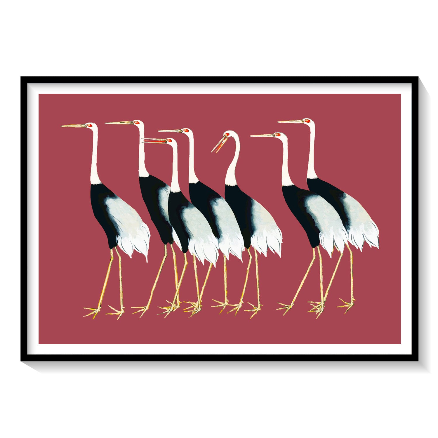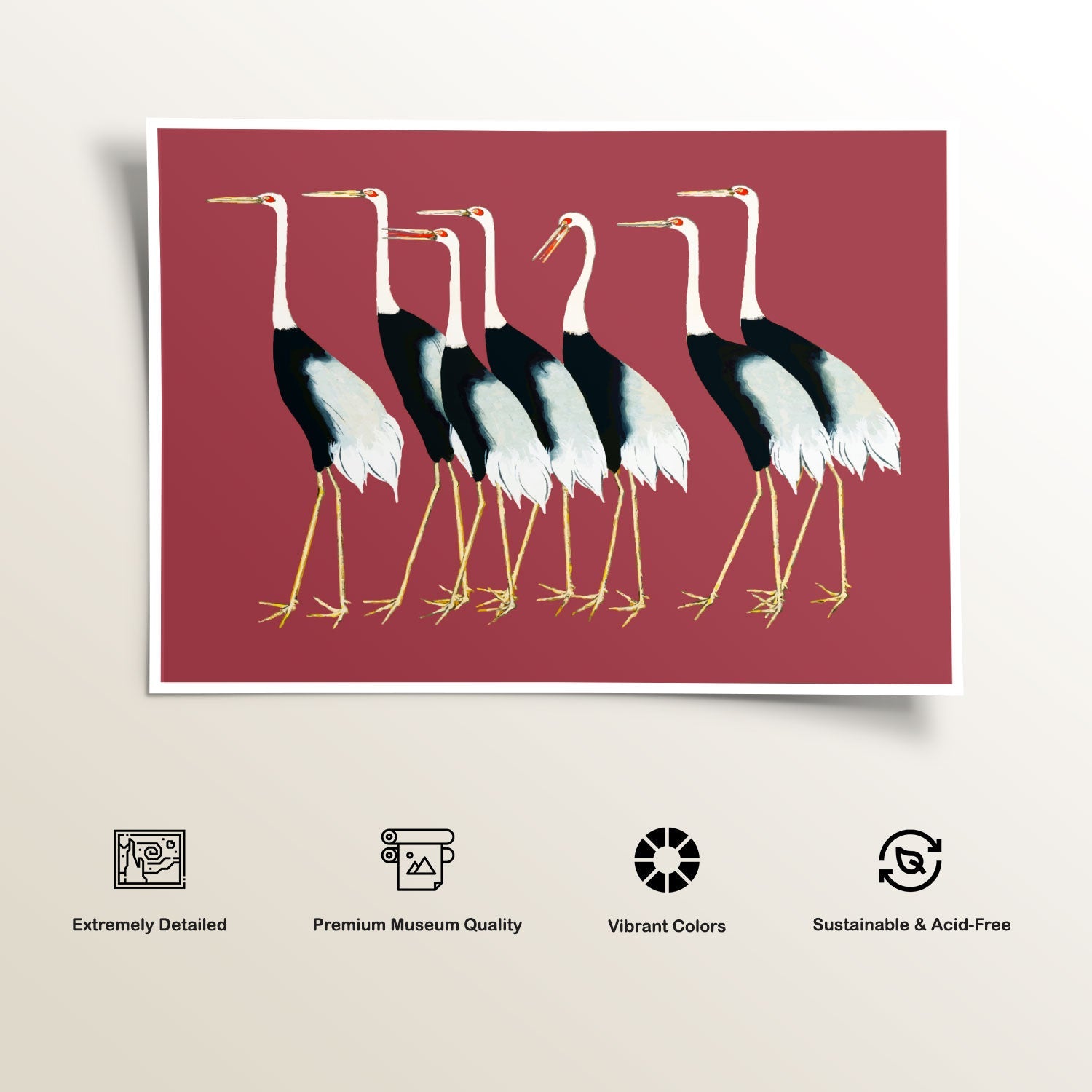 A Flock of beautiful Japanese red crown crane II, Japanese Art Painting