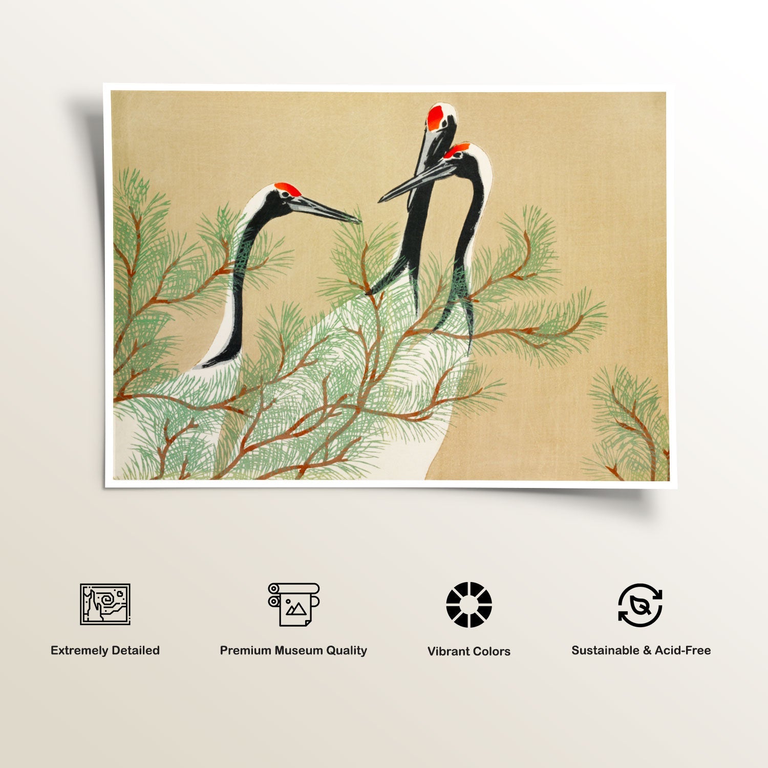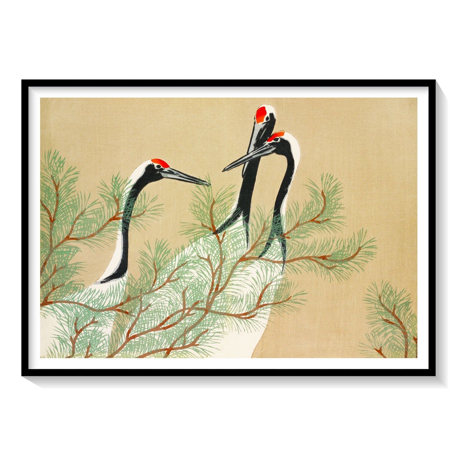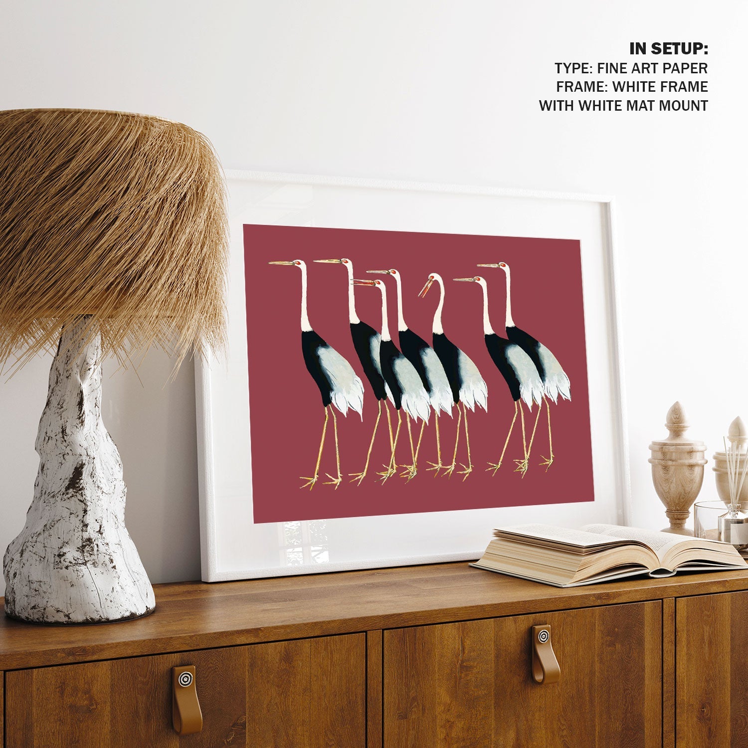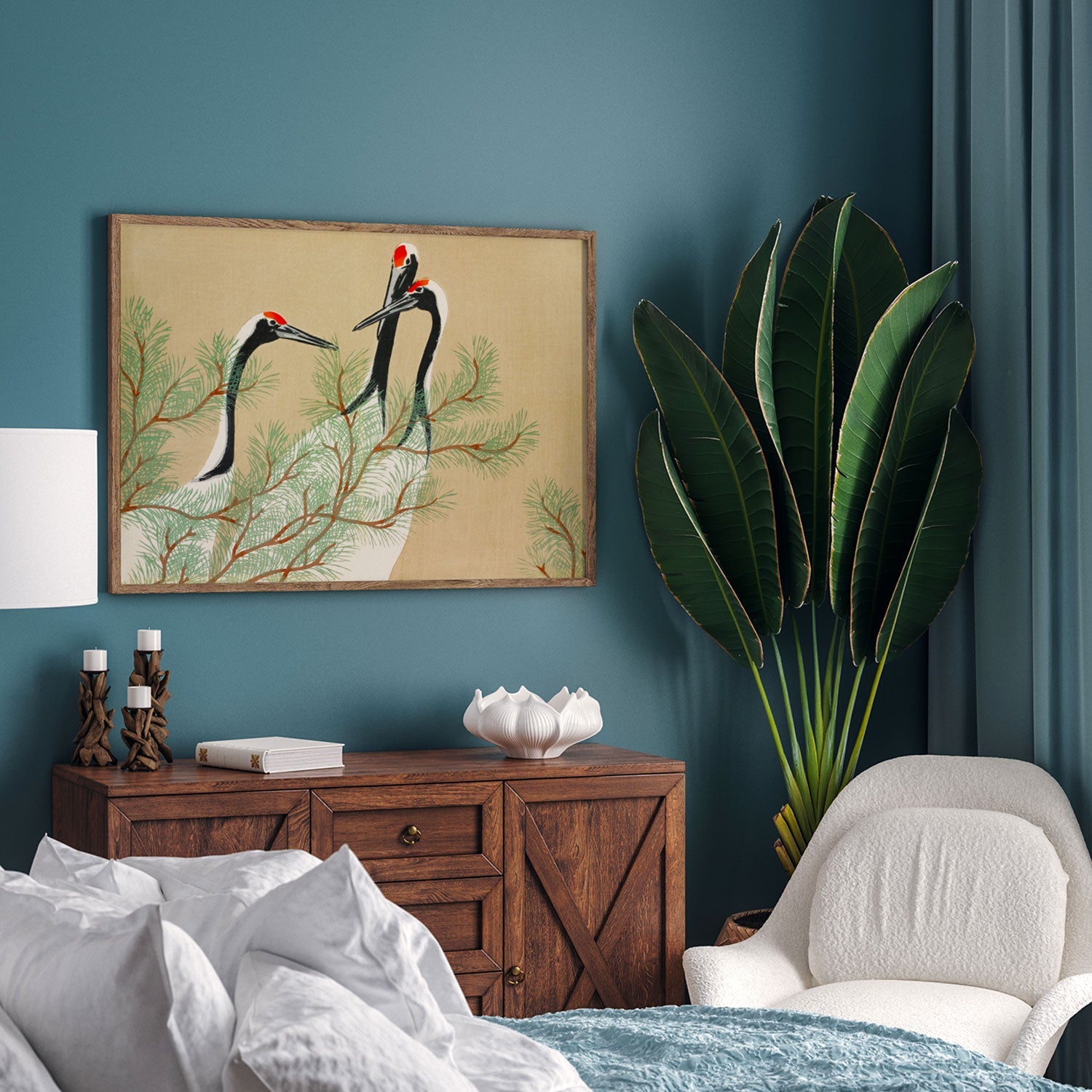 A Flock of beautiful Japanese red crown crane II, Japanese Art Painting