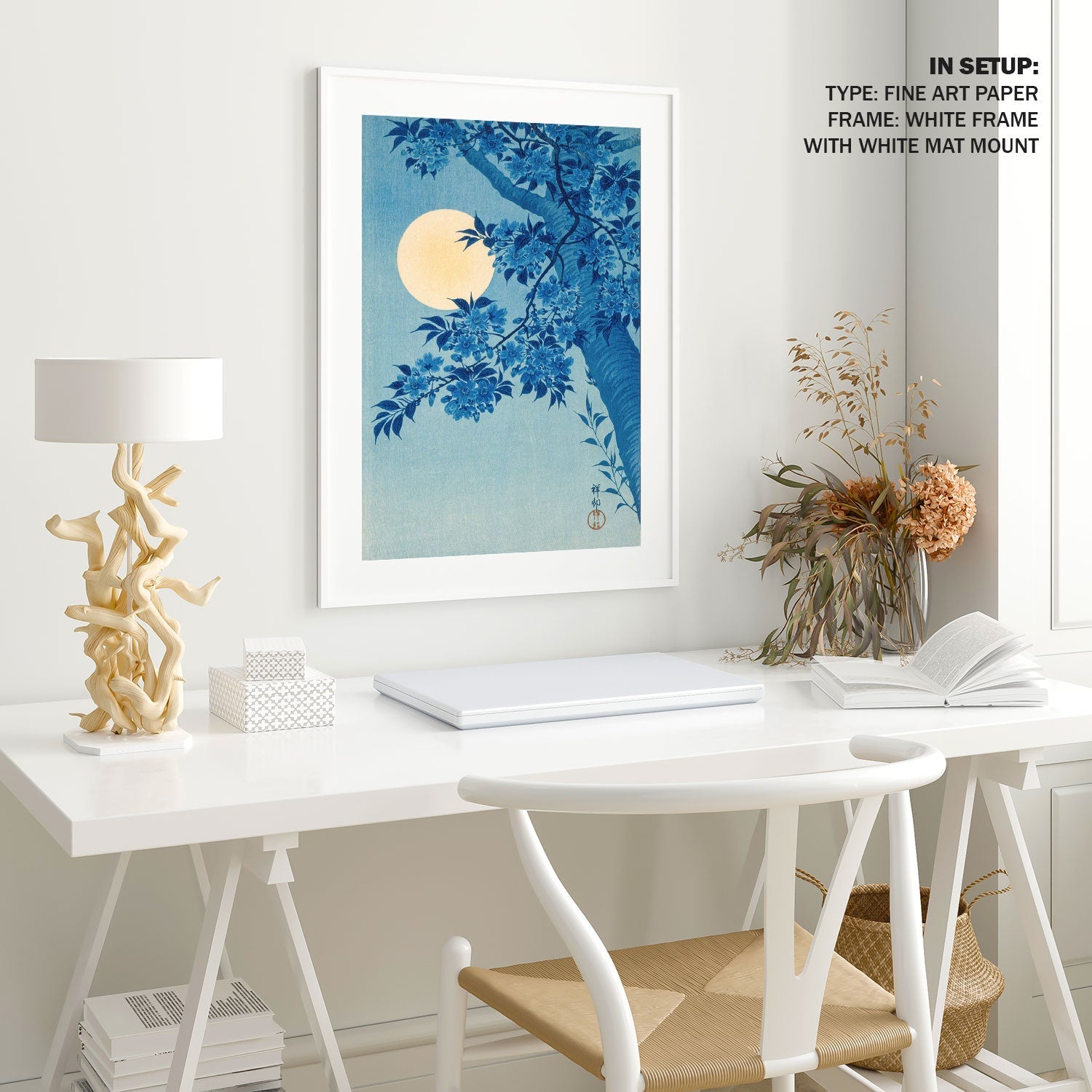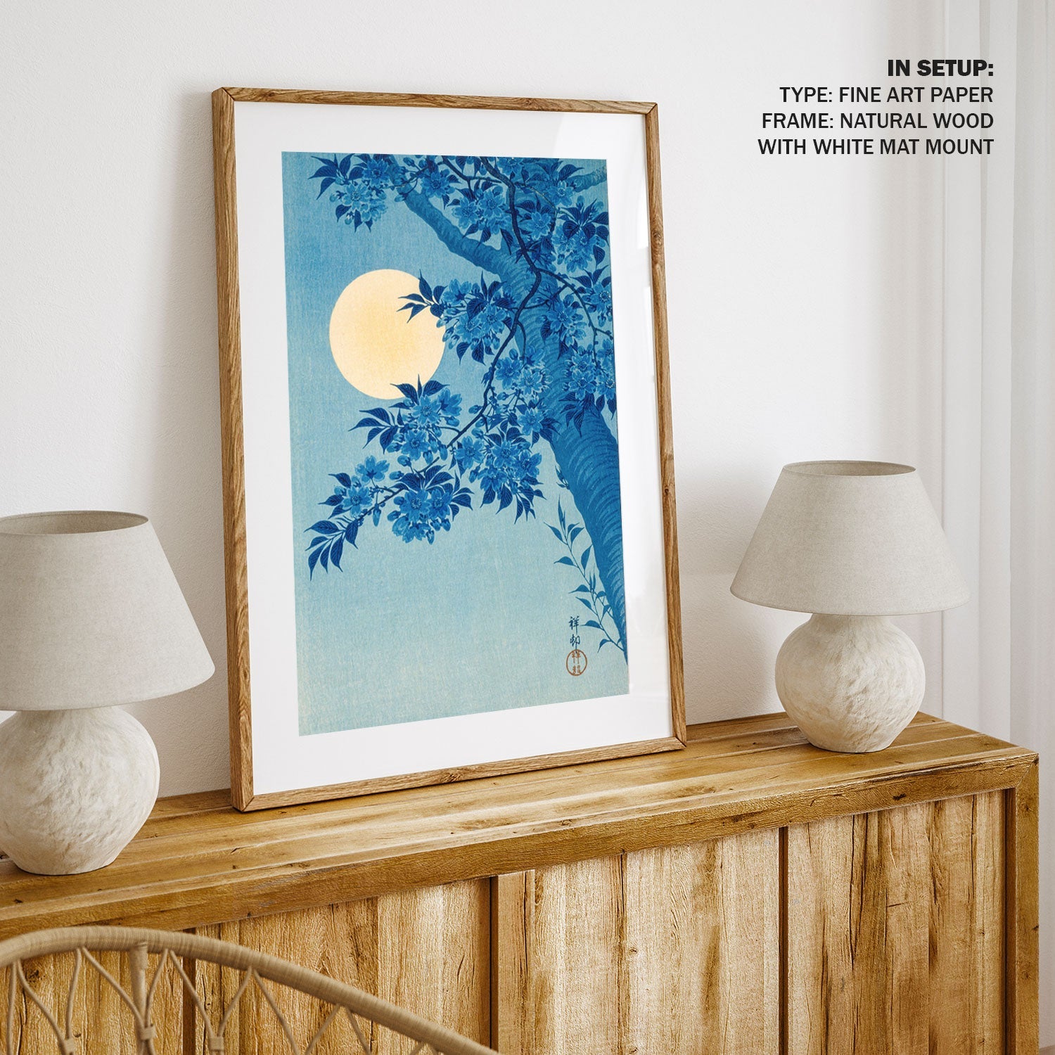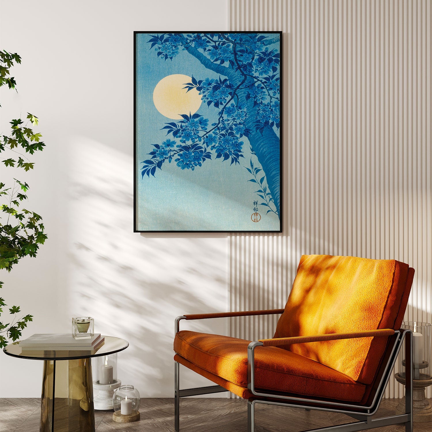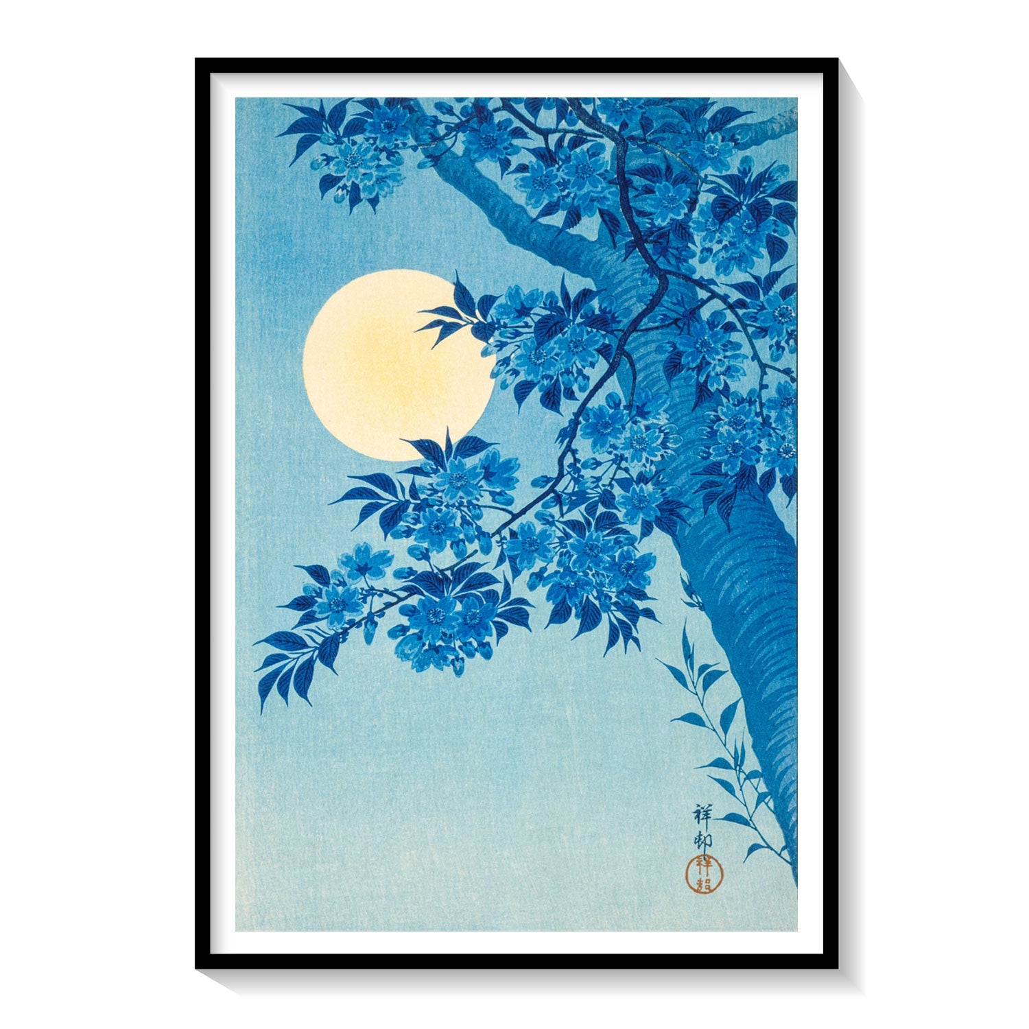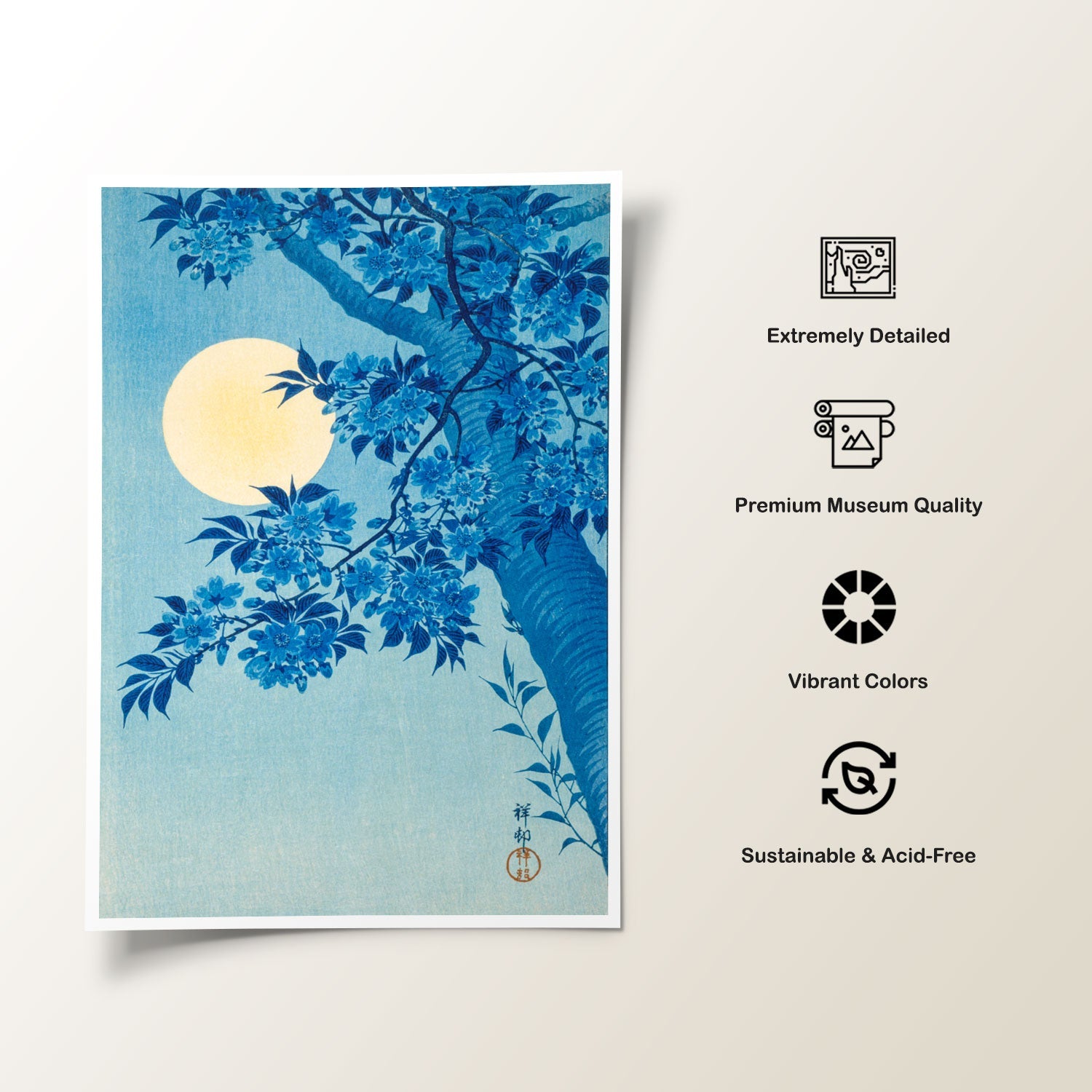 Blossoming Cherry on a Moonlit, Japanese Art Painting