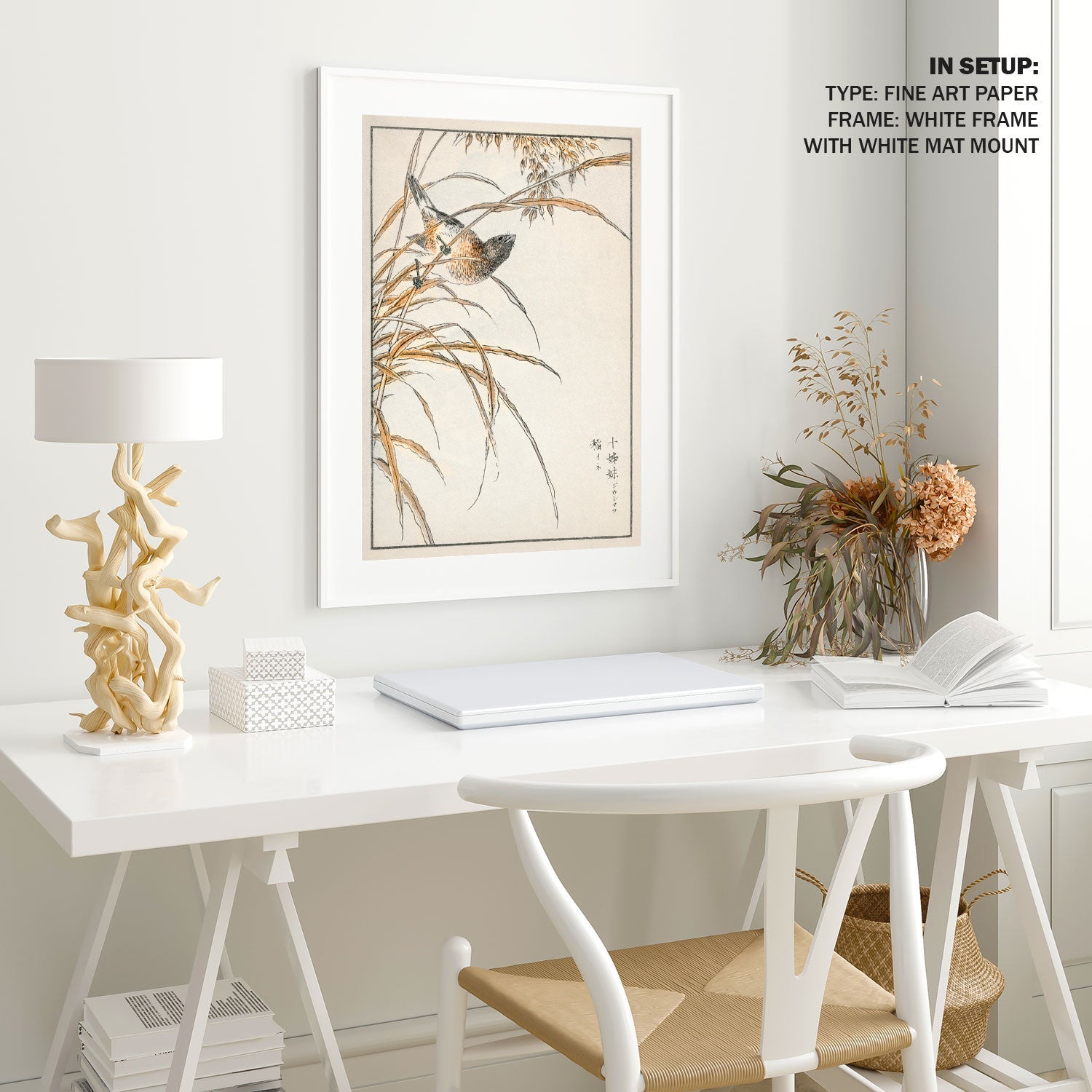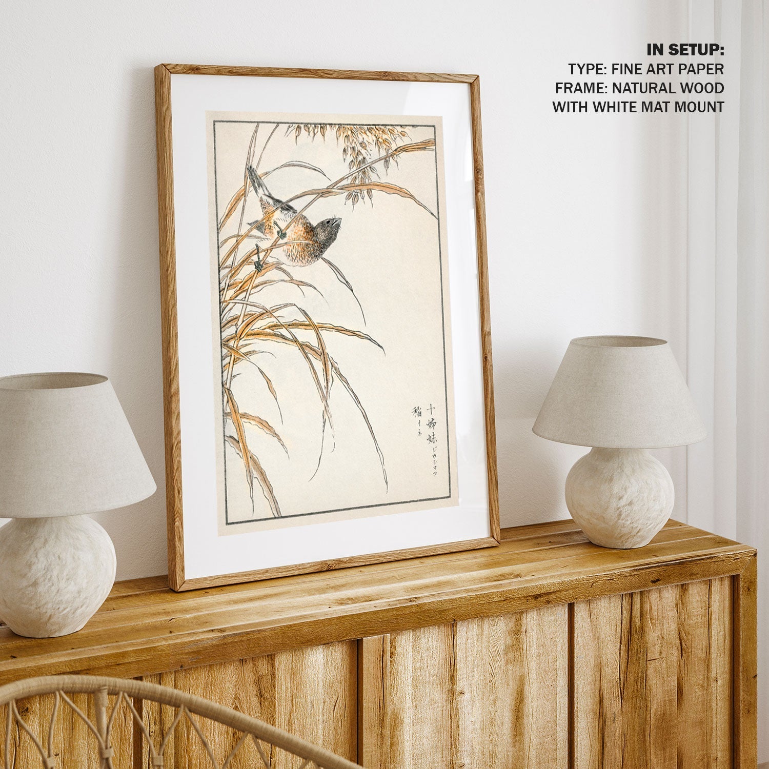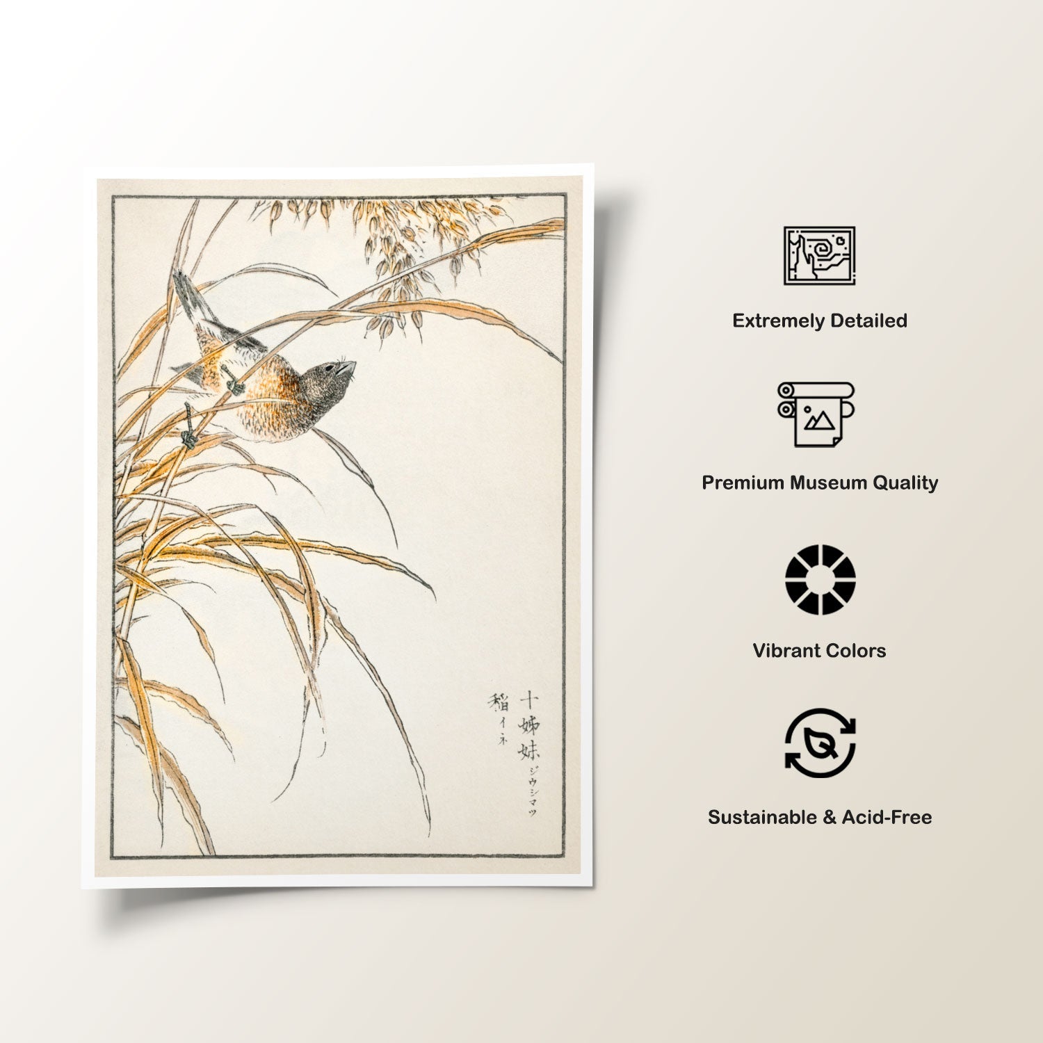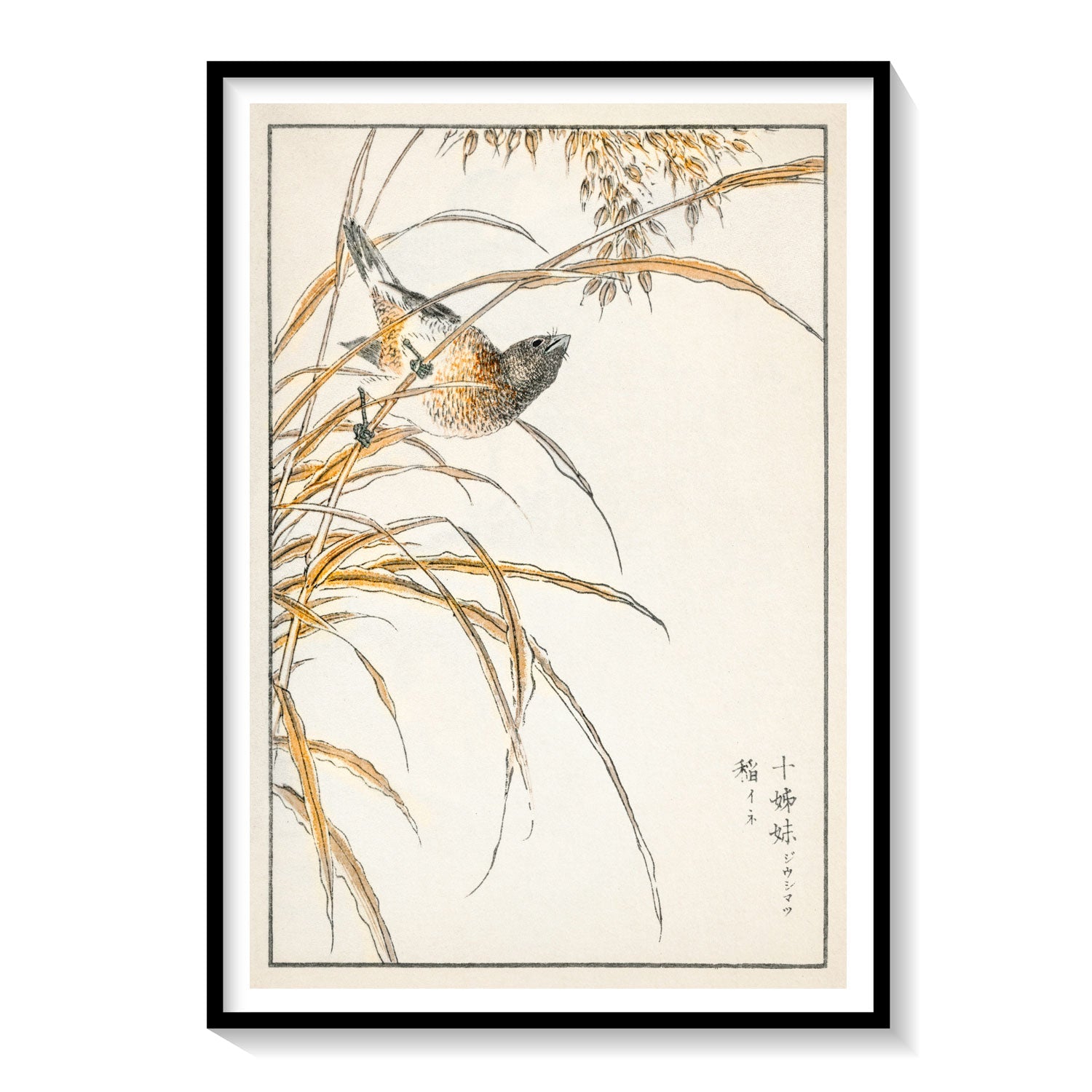Japanese Grey Bunting and Rise Plant, Japanese Art Painting