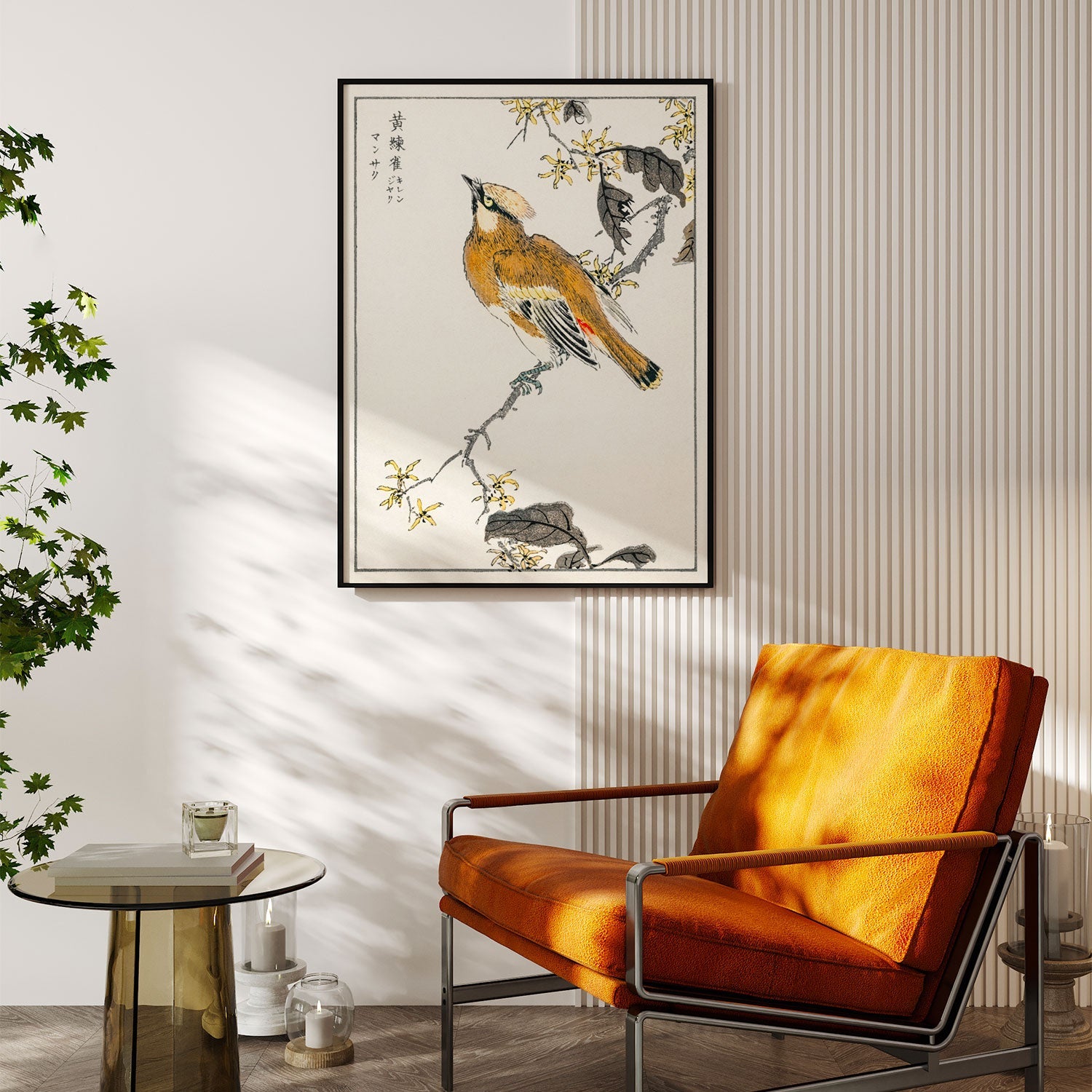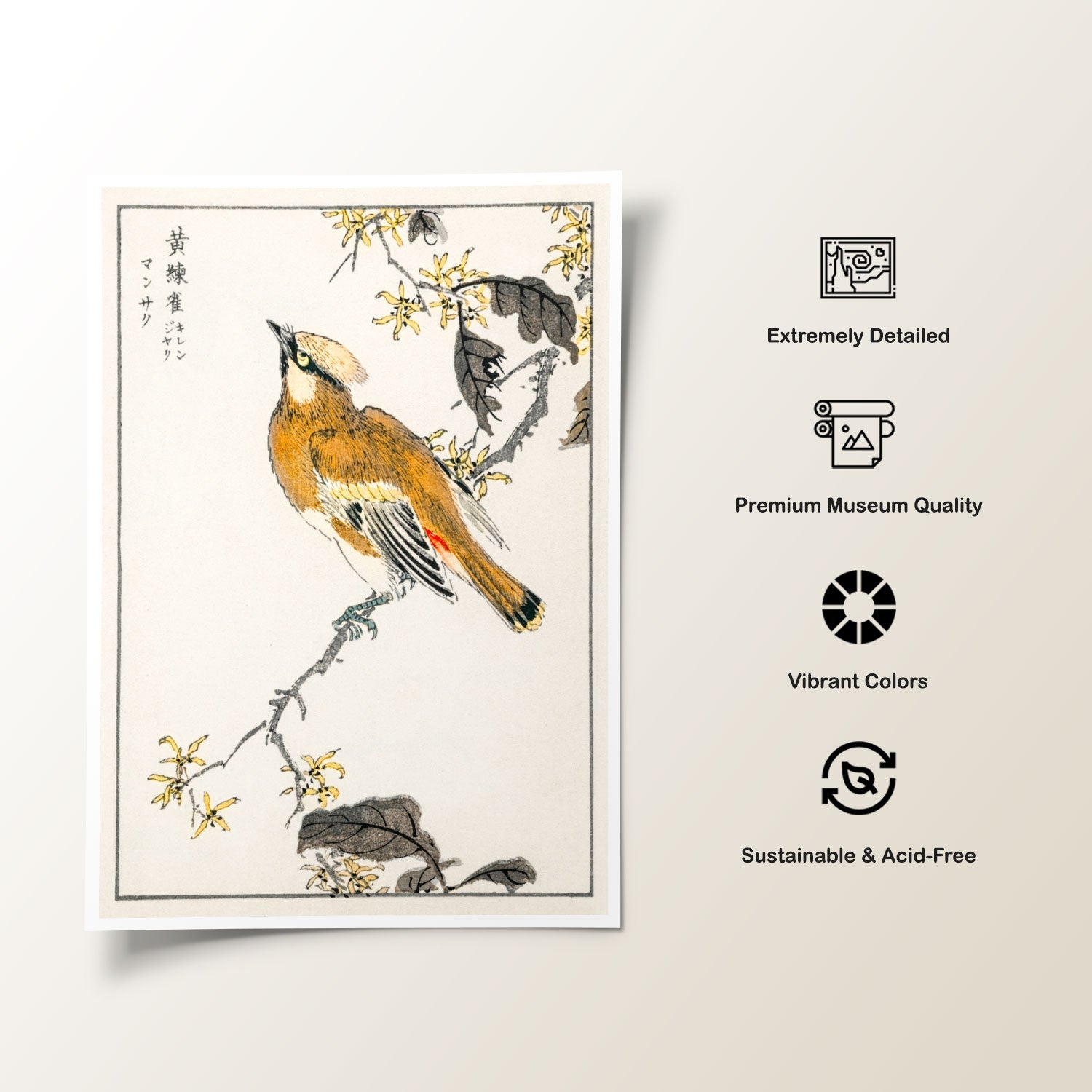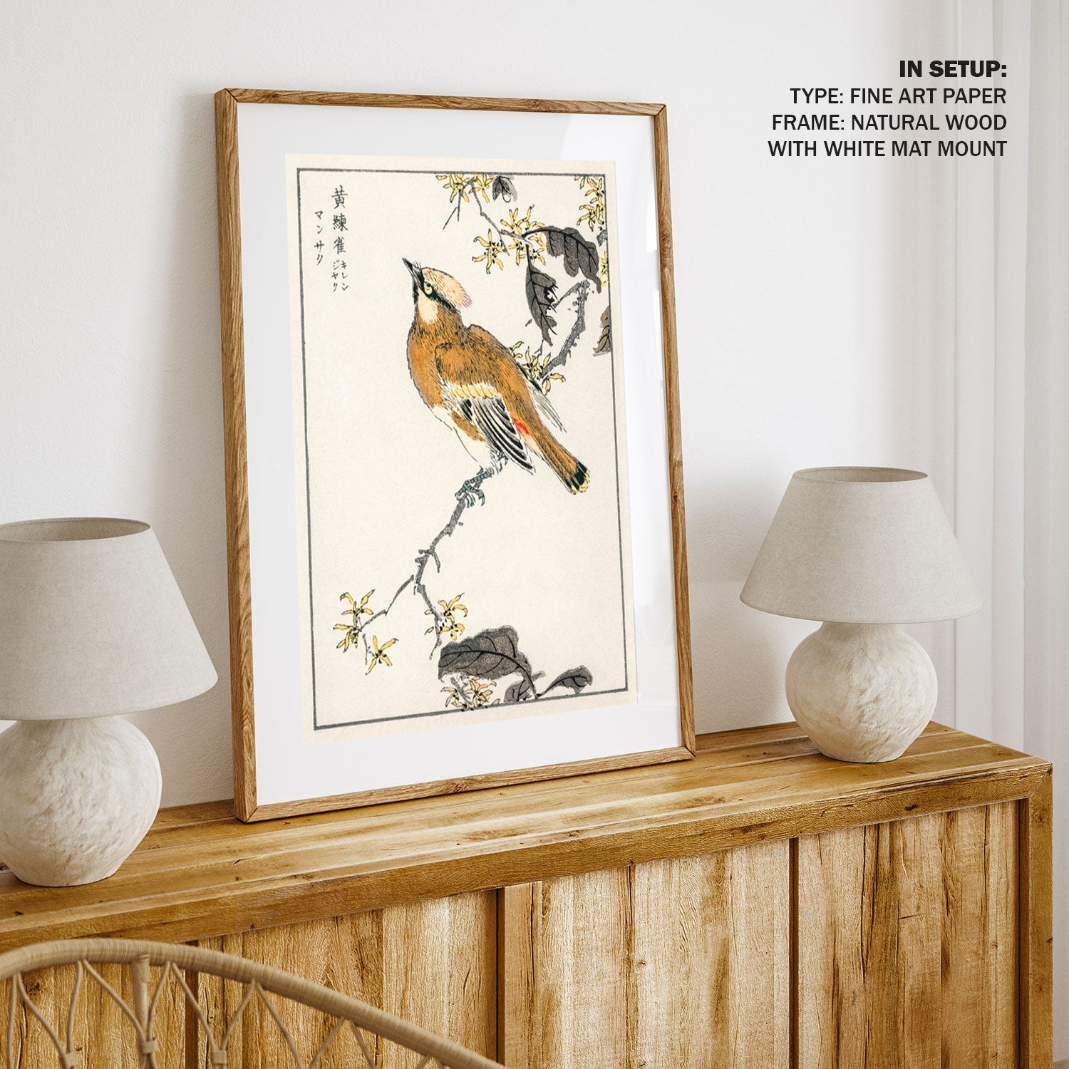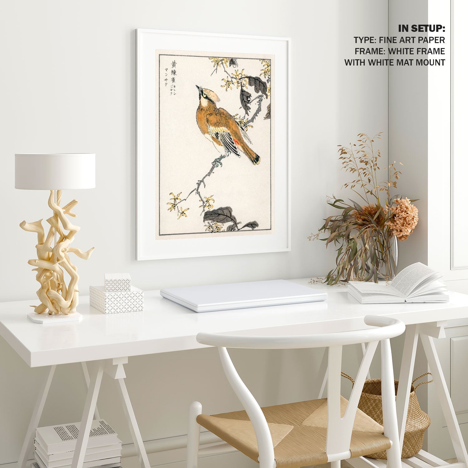 Japanese Grey Bunting and Rise Plant, Japanese Art Painting