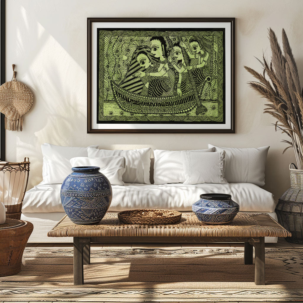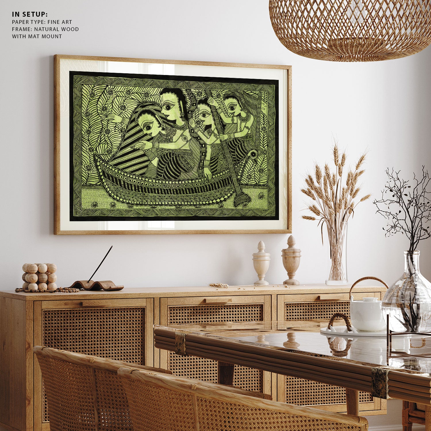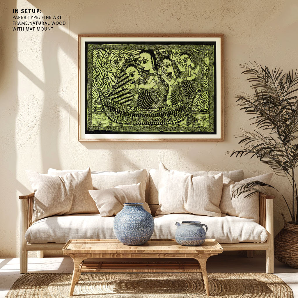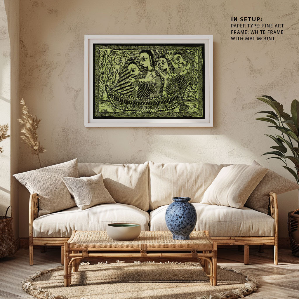 Traditional Mithila Painting Madhubani Art from the Madhubani Paintings Collection is produced on Premium Museum Grade Canvas and Hahnemuhle Fine Art Media. This beautiful Madhubani Painting Art Print product is made with a matte finish and premium quality with vibrant colors. These Madhubani Miniature Paintings Art Prints are produced with the most extreme shading precision and using the most advanced giclee printing technique in the world. We use the same standard that the various museums and art galleries use across the globe to recreate the Madhubani Miniature Paintings Art Prints. These Madhubani Paintings are perfect for you if you're a Madhubani or Indian Culture Lover or if you want to add a Traditional Look to your space. The vibrancy of colors and the unique detailing of every Madhubani Painting Art Print makes them the best in so many ways. This Madhubani Art Print will add charm to any room in your home. These Madhubani Painting Art Prints can be the perfect gift to your friends, colleagues, or family as they sync in very well in your Bedroom, living room, lobby, Balcony, Bathroom, etc.