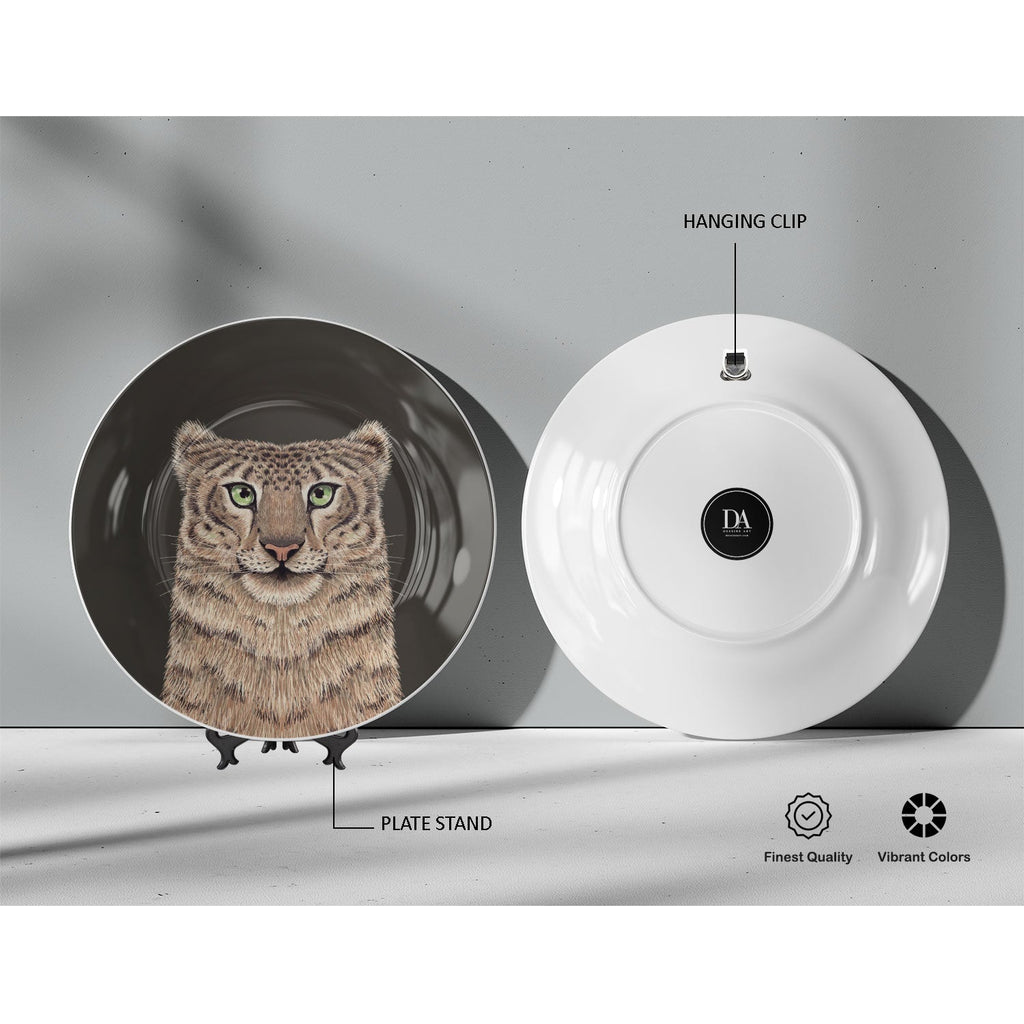Dahotre Snow Leopard from the Decorative Art Plates Collection is produced on Finest Bone China Plate with Premium and Luxury Finish. This beauiful Decor Plate product is made with gloss finish and premium quality with vibrant colors. These Decorative Fine Bone China Plates are produced with the most extreme shading precision and using the most advanced printing technique in the world. Each Bone China decor plate has a unique design created by leading artists. Every Decorative Plate purchased on Dessine Art pays an artist. These Uniquely Designed Decor Art Plates are perfect for you if you're an Art Lover or if you want to add an artistic look to your space. The vibrancy of colors and the unique detailing of every Decorative Plate makes them the best in so many ways. This Decor Art Plate will add charm to any wall in your house. This Art Plate can be the perfect gift to your friends, colleagues or family as they sync in very well in your living room, lobby, etc. These decorative art plates can also be used for corporate gifting.